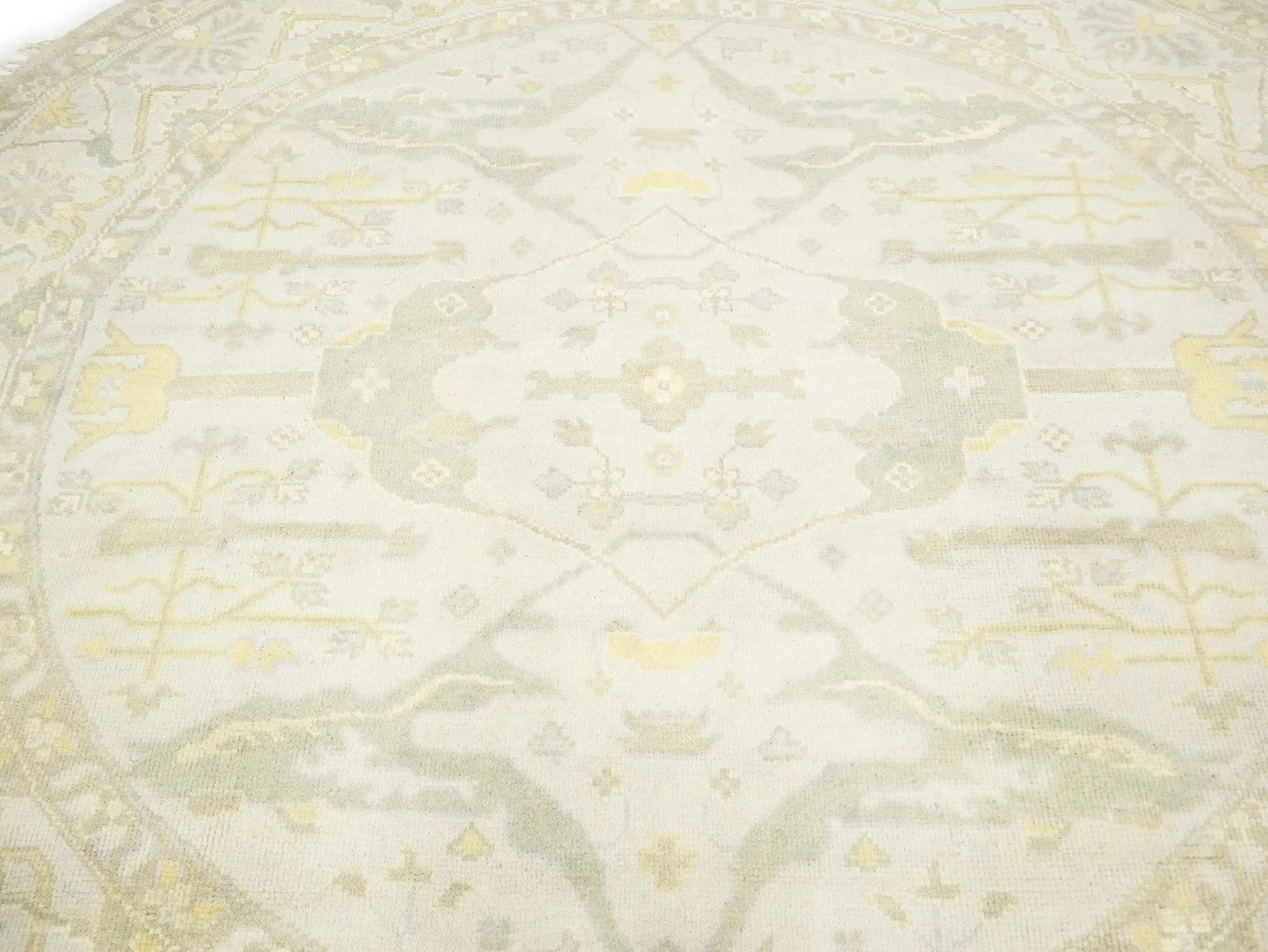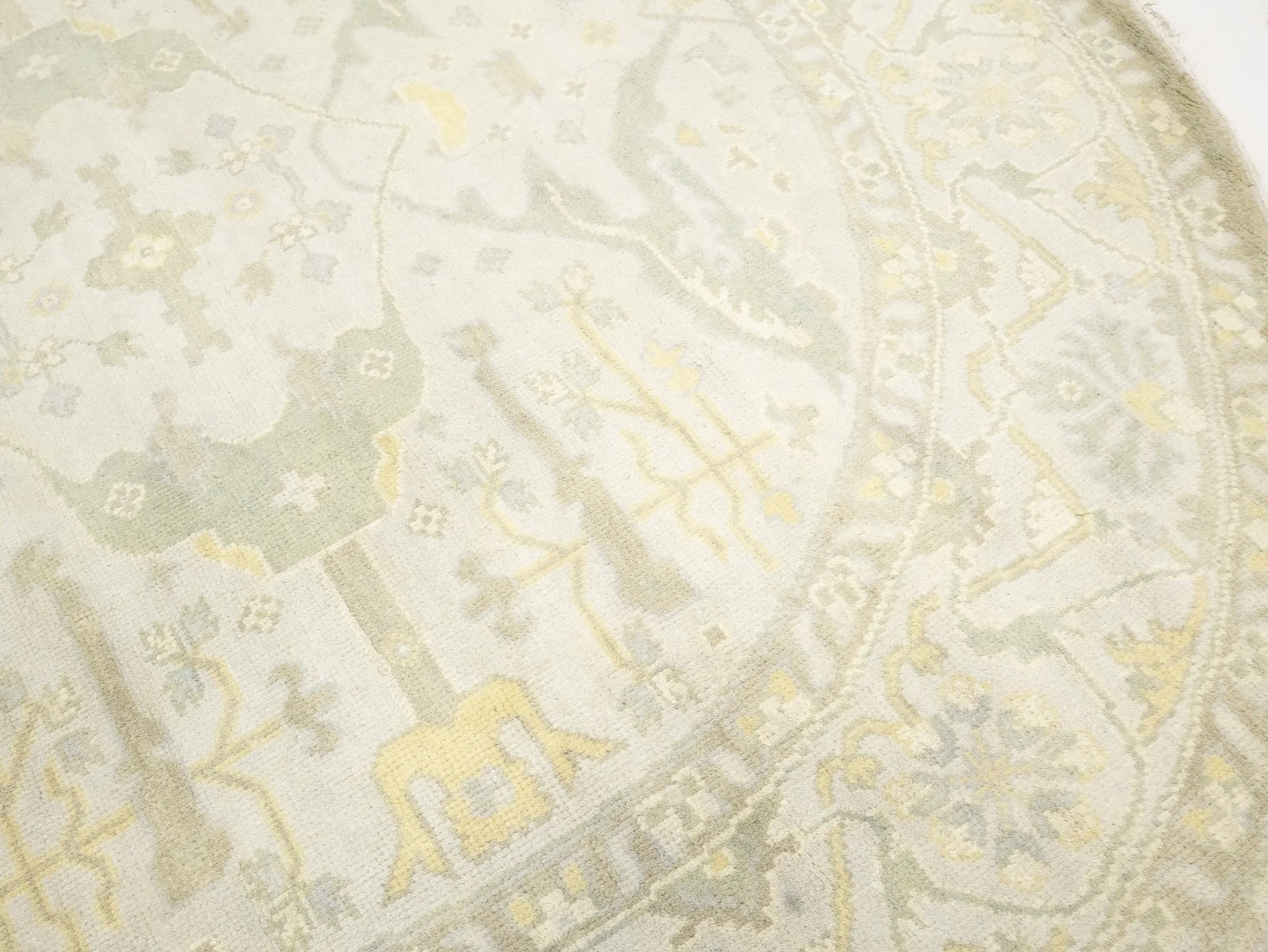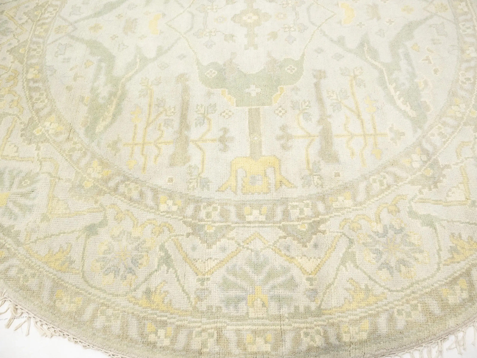 Hand-Knotted Cream Round Oushak Chobi Oriental