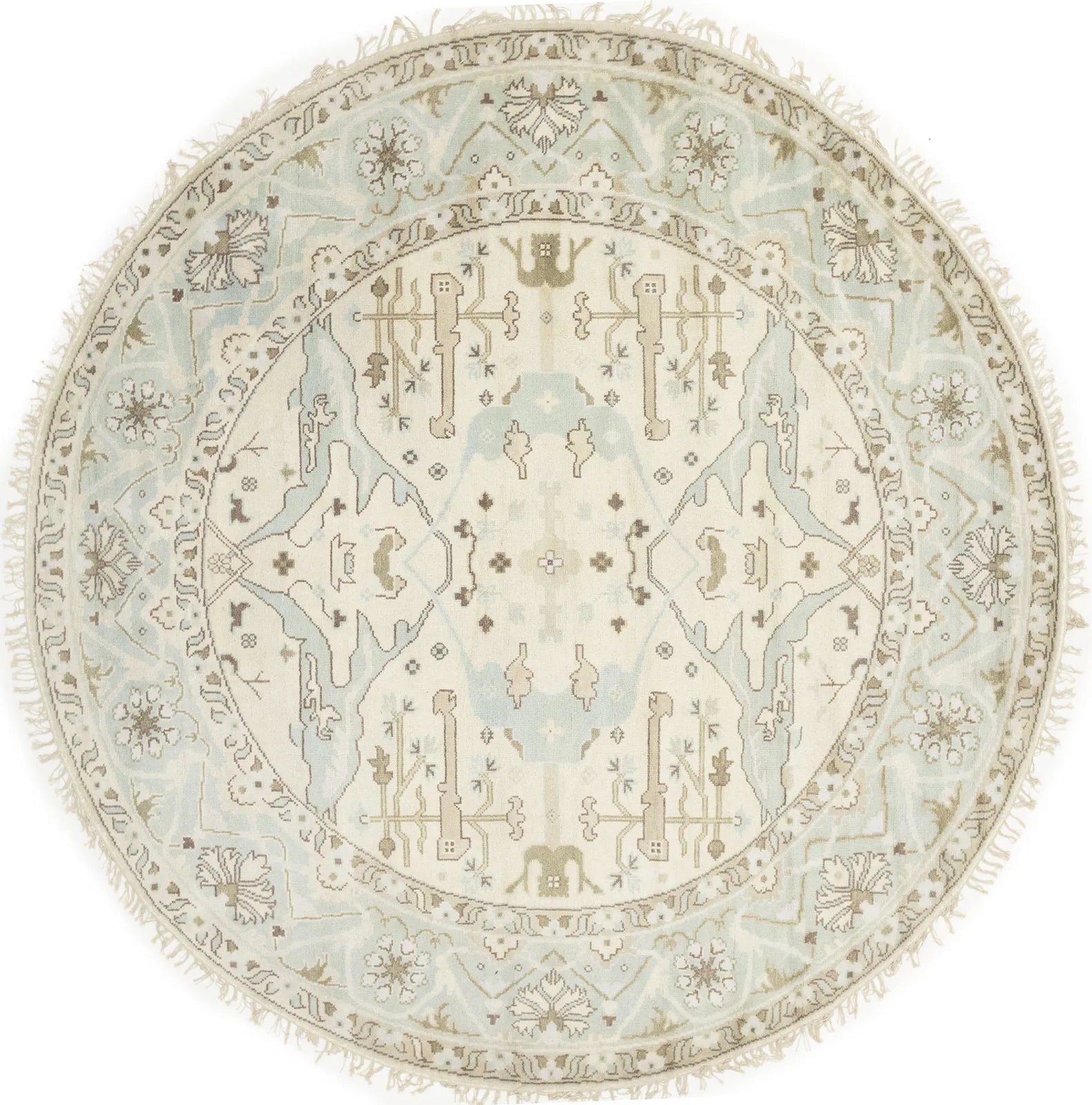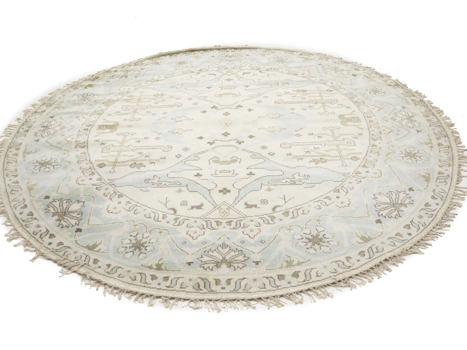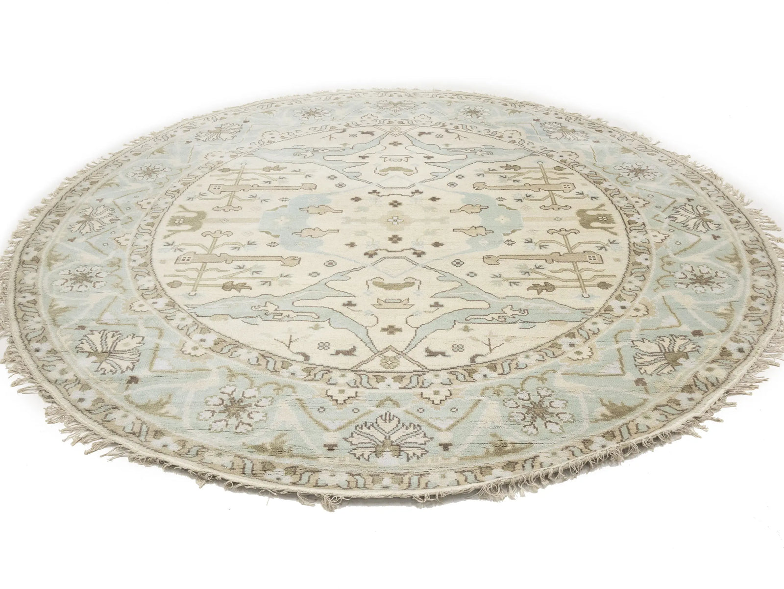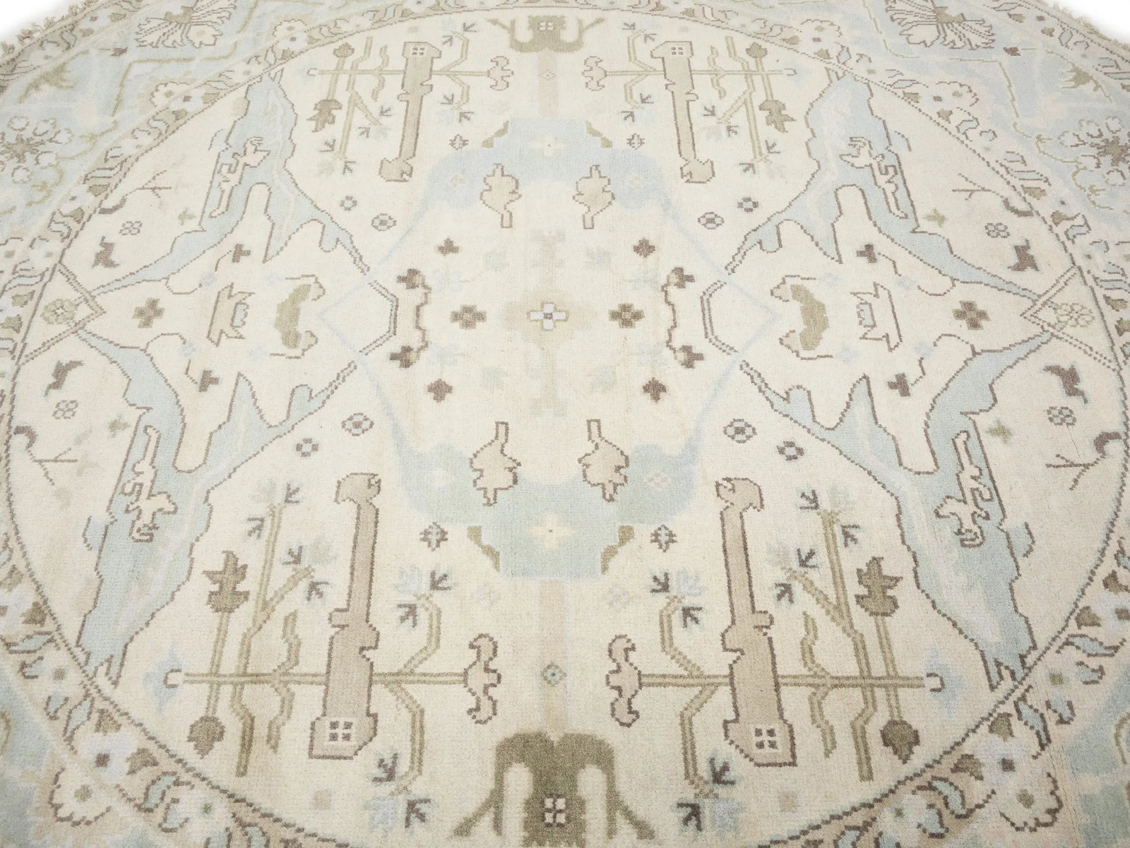 Hand-Knotted Cream Round Oushak Oriental Rug