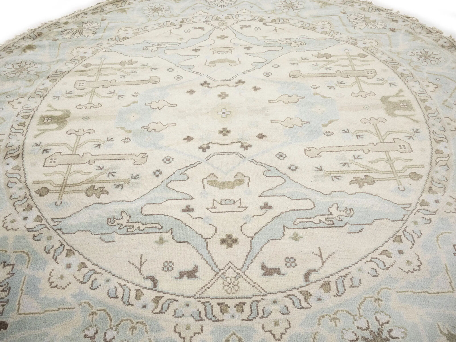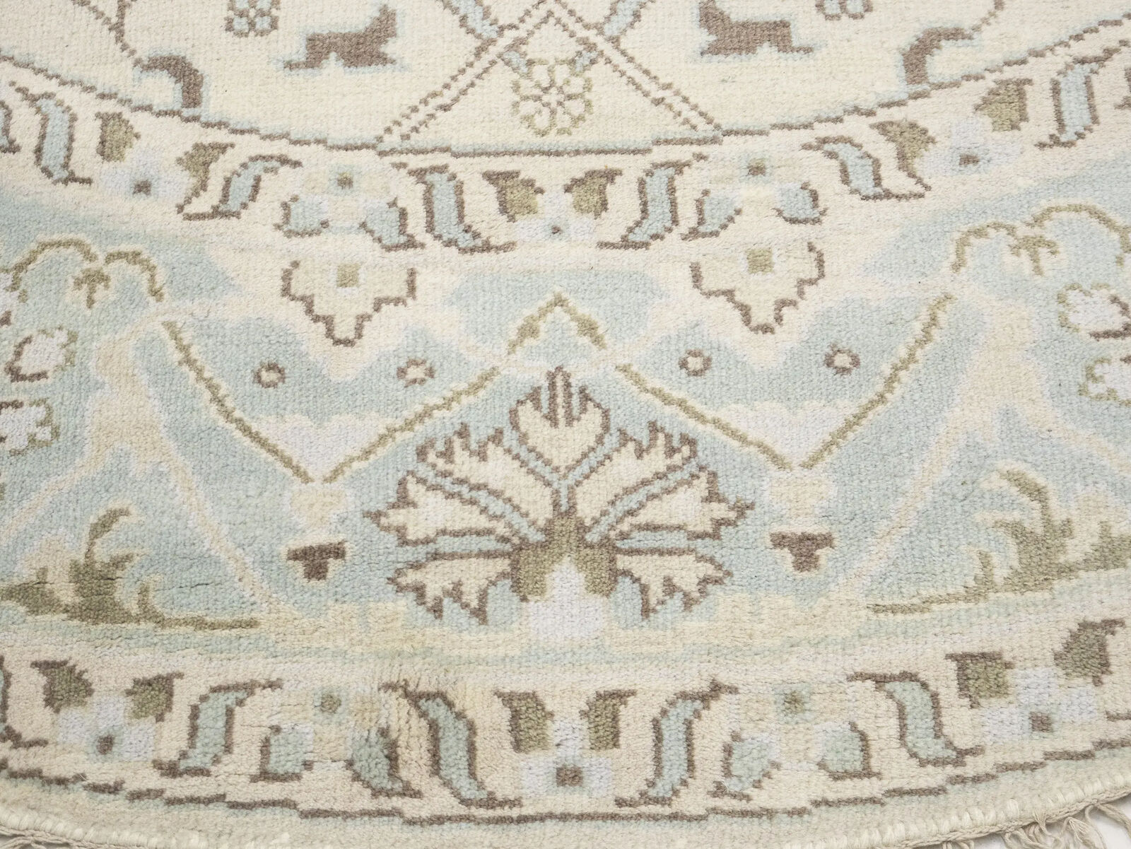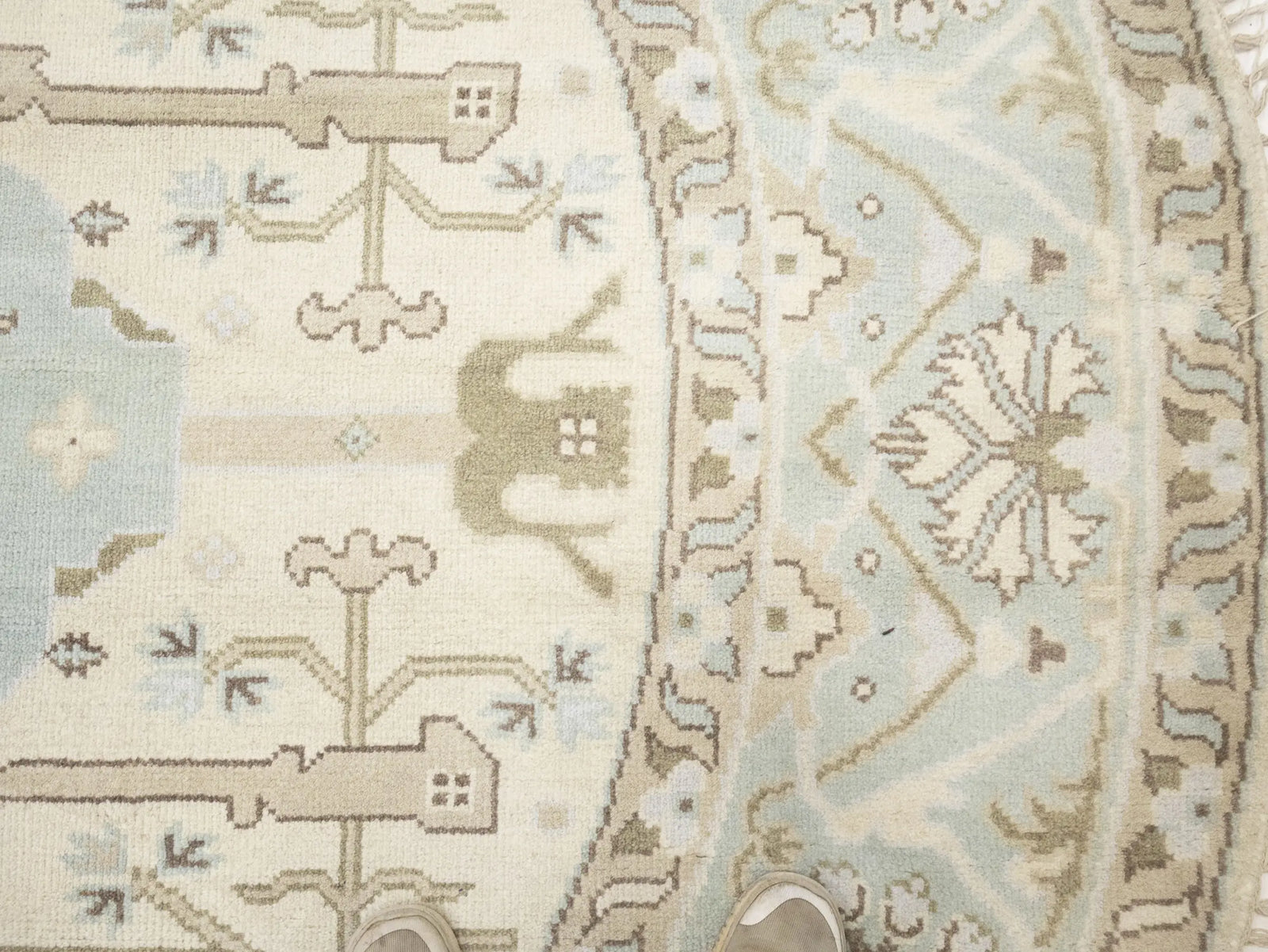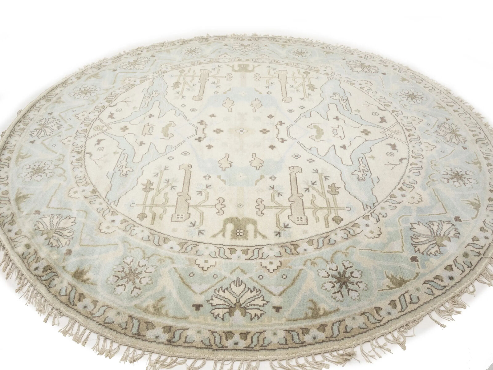 Hand-Knotted Cream Round Oushak Oriental Rug