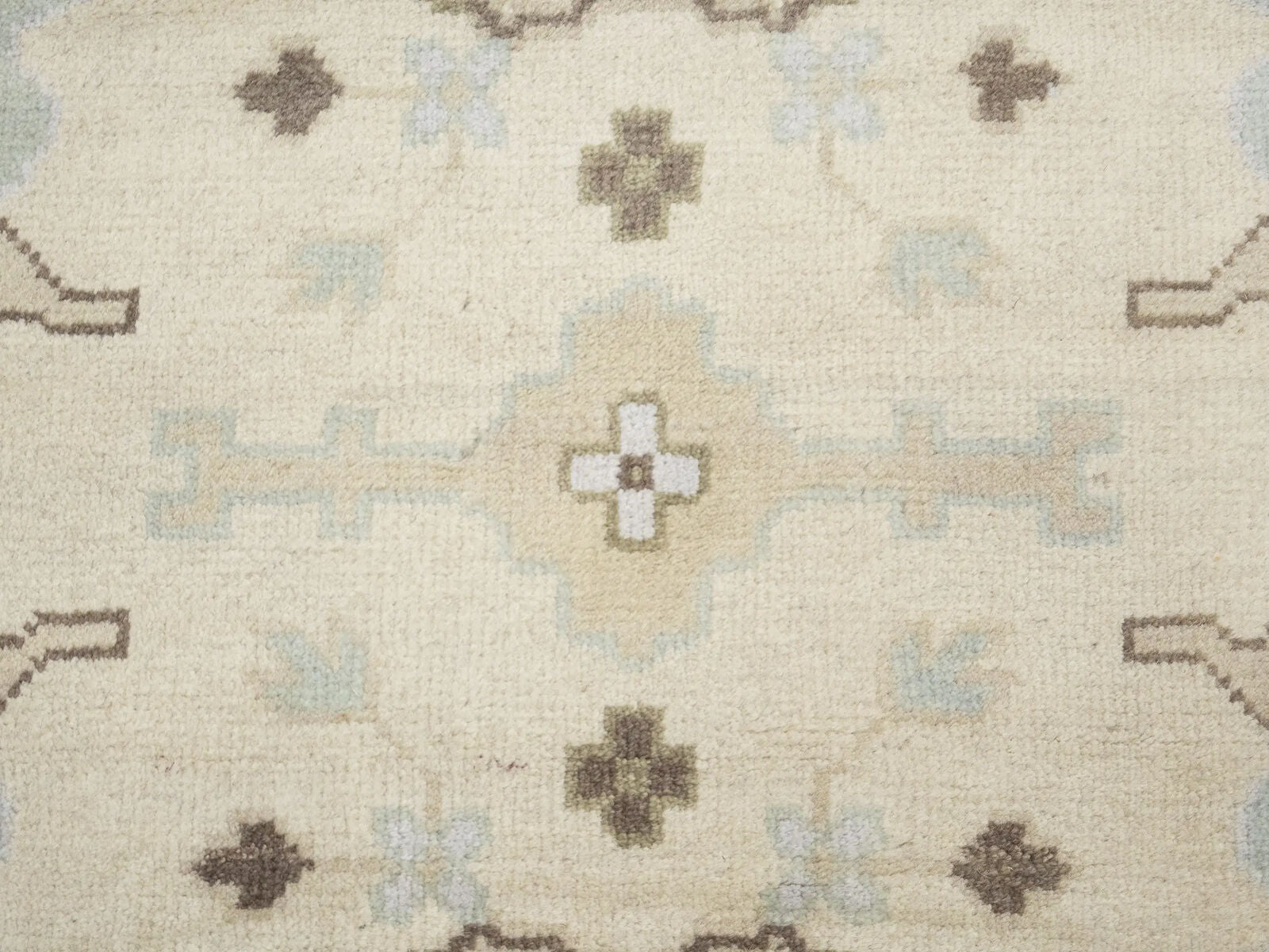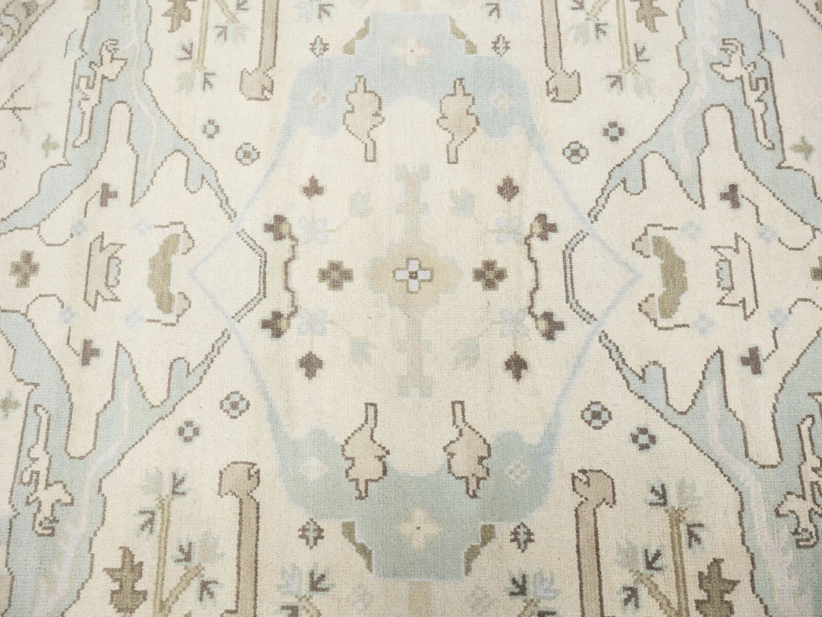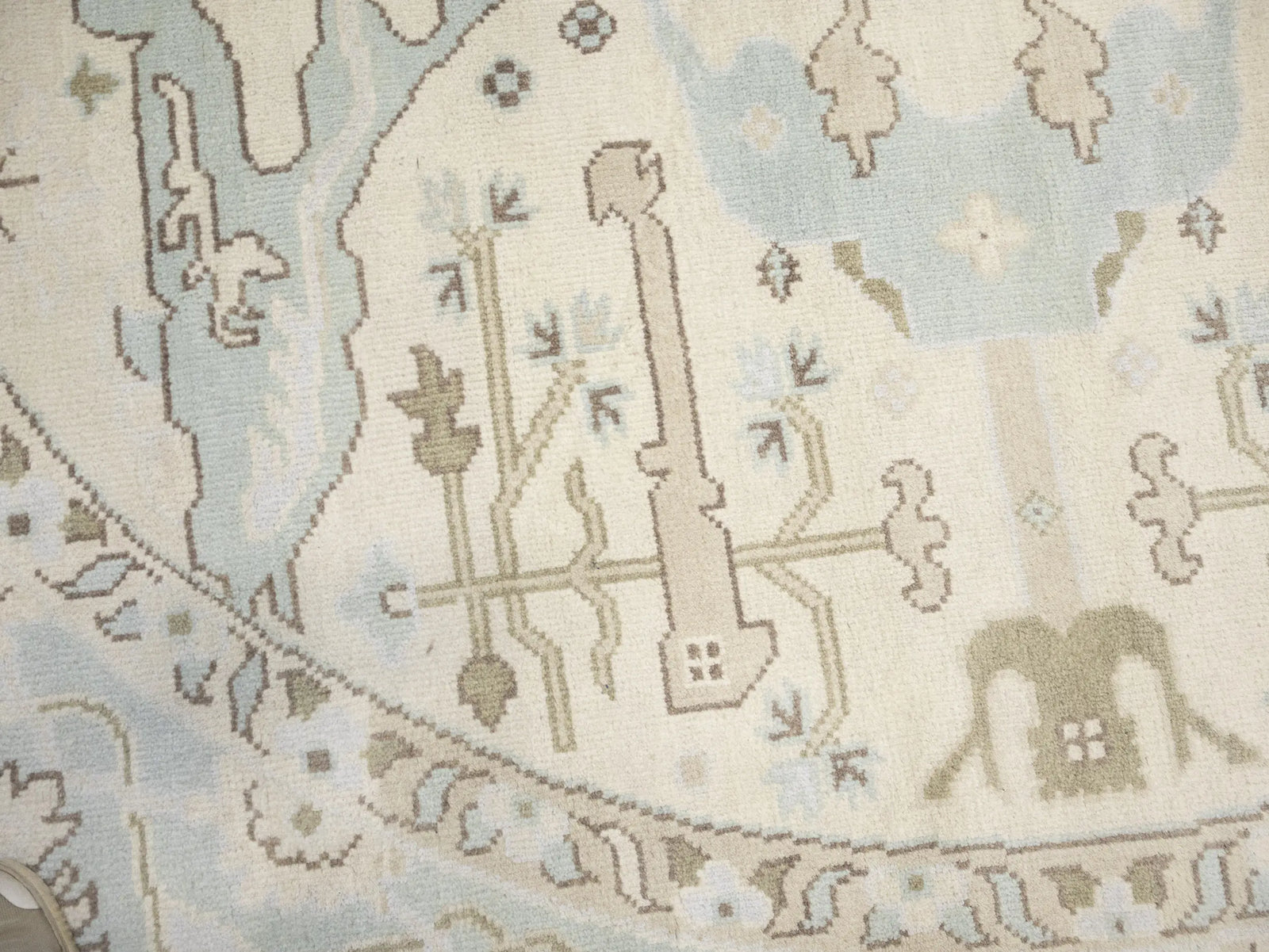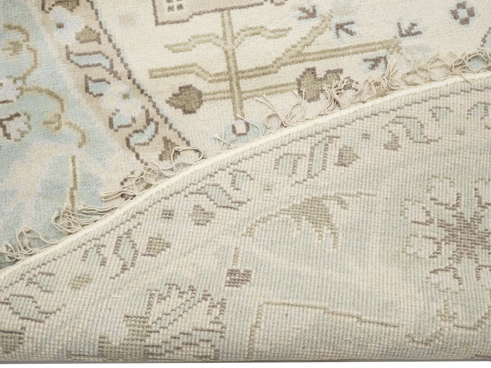 Hand-Knotted Cream Round Oushak Oriental Rug