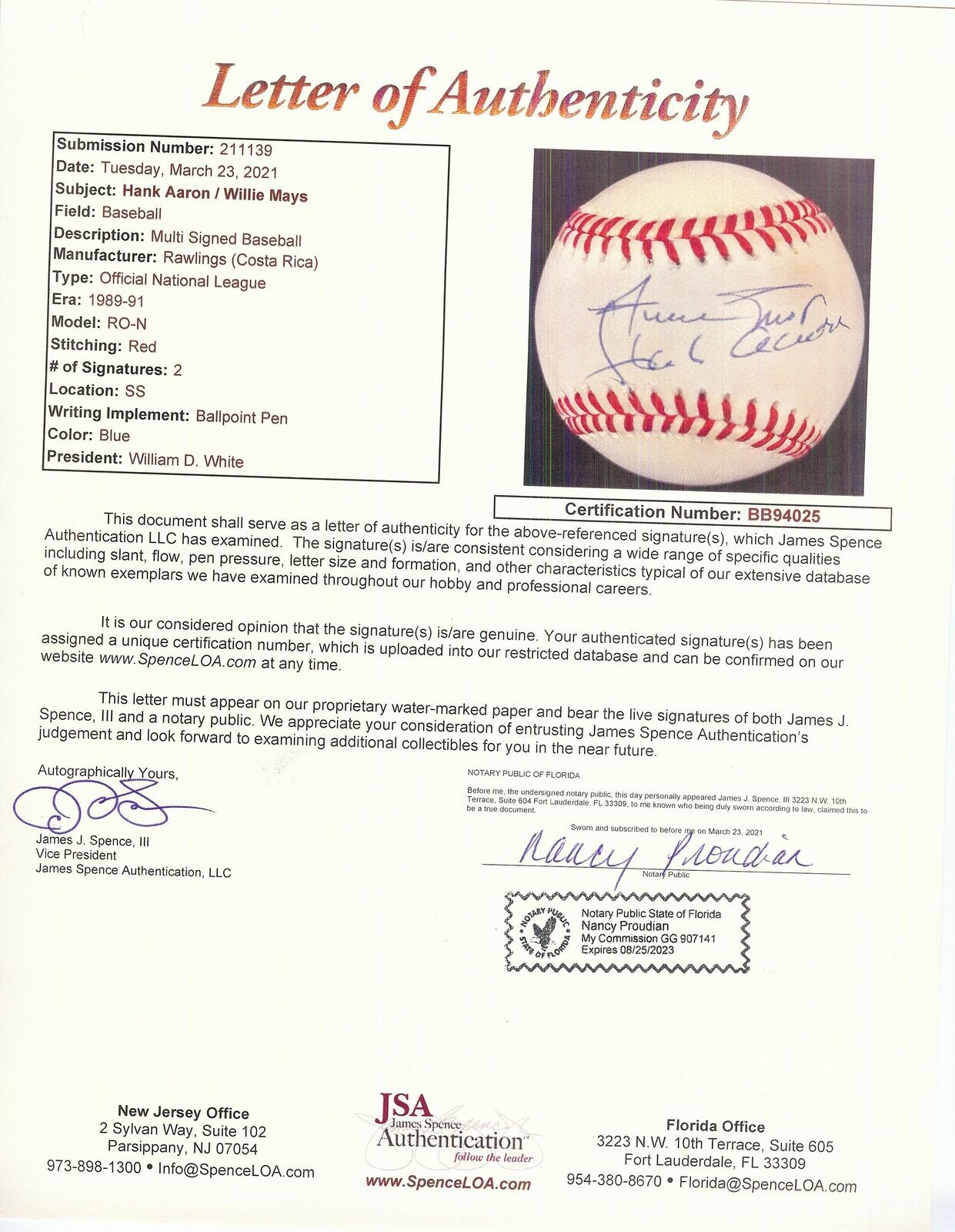 Hank Aaron Hof & Willie Mays Hof Dual-Autographed