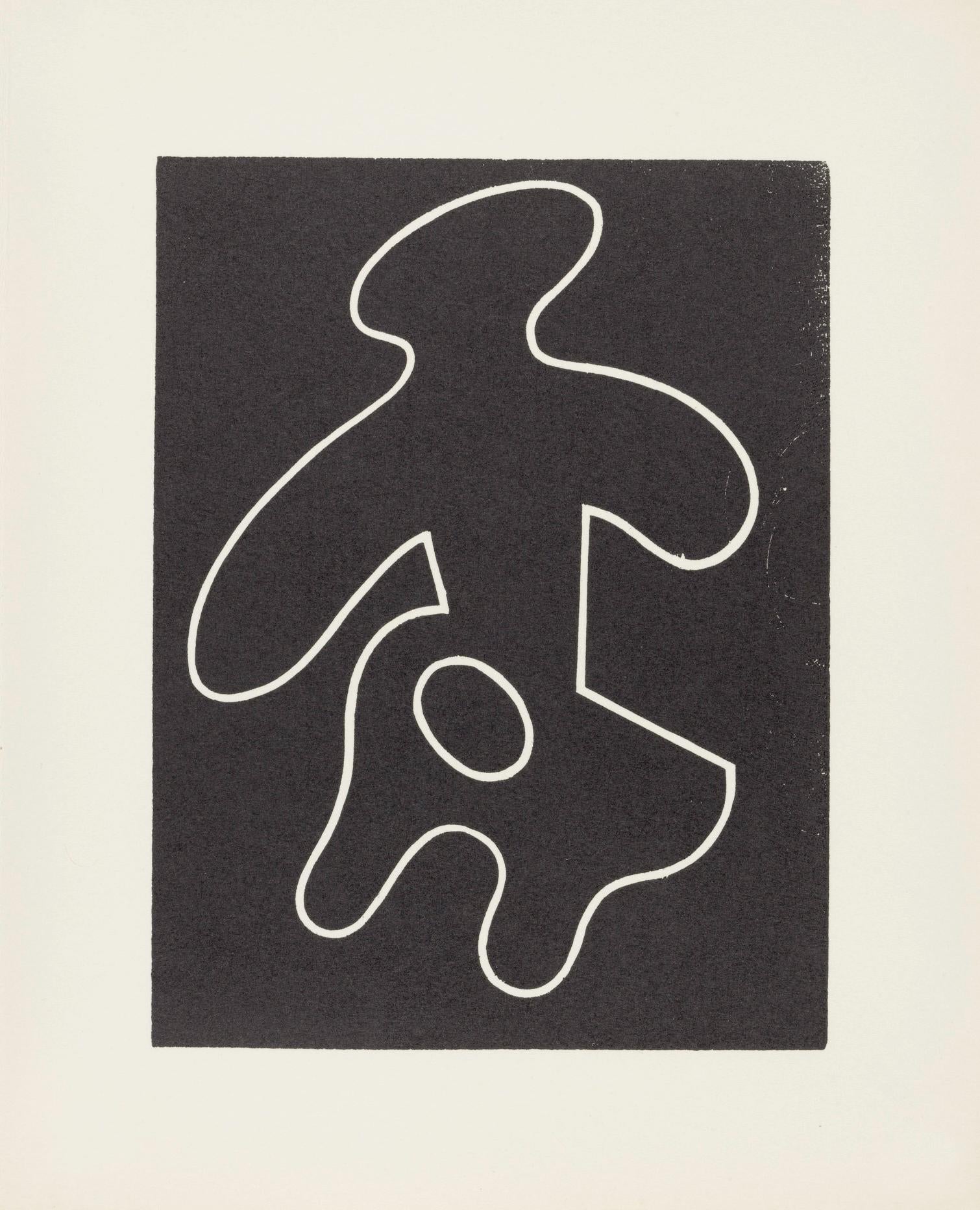 Woodcut on vlin dArches paper. Paper size: 11.25 x 8.875 inches. Excellent condition. Inscription: Unsigned and unnumbered, as issued. Notes: From the folio, Jean Arp, Dreams and Projects, 1951-1952, 1952. Published by Curt Valentin, New York; printed by Fequet et Baudier, Paris, 1952. Excerpted from the folio, Text and 28 original woodcuts by Jean Arp printed in an edition of 320 examples in 1951 and 1952 by Fequet et Baudier, Paris, for Curt Valentin, New York. English translation by Ralph Manheim. Examples 1 to 25 contain a separate set of the woodcuts on Japon paper.