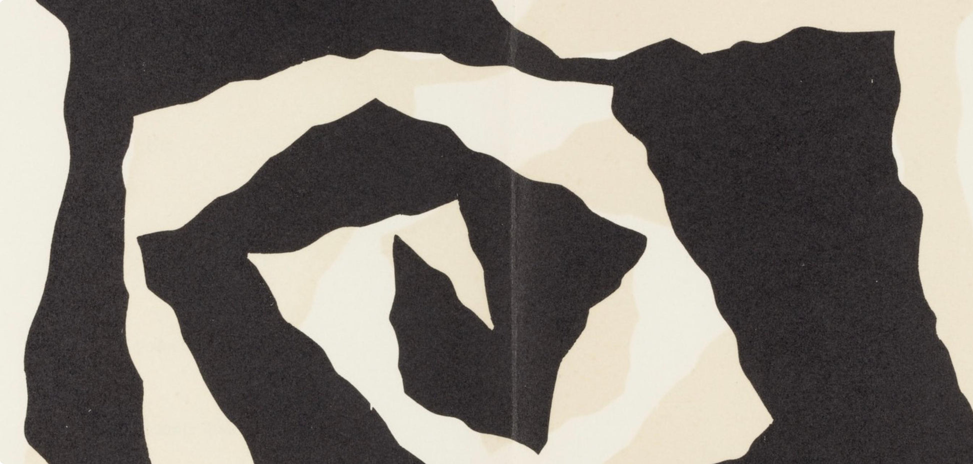 Woodcut on vlin dArches paper. Paper size: 11.25 x 17.75 inches. Excellent condition, with centerfold, as issued. Inscription: Unsigned and unnumbered, as issued. Notes: From the folio, Jean Arp, Dreams and Projects, 1951-1952, 1952. Published by Curt Valentin, New York; printed by Fequet et Baudier, Paris, 1952. Excerpted from the folio, Text and 28 original woodcuts by Jean Arp printed in an edition of 320 examples in 1951 and 1952 by Fequet et Baudier, Paris, for Curt Valentin, New York. English translation by Ralph Manheim. Examples 1 to 25 contain a separate set of the woodcuts on Japon paper.