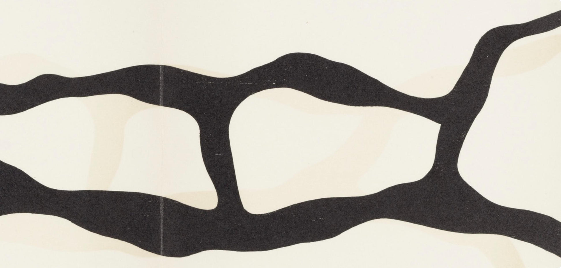 Woodcut on vlin dArches paper. Paper size: 11.25 x 17.75 inches. Excellent condition, with centerfold, as issued. Inscription: Unsigned and unnumbered, as issued. Notes: From the folio, Jean Arp, Dreams and Projects, 1951-1952, 1952. Published by Curt Valentin, New York; printed by Fequet et Baudier, Paris, 1952. Excerpted from the folio, Text and 28 original woodcuts by Jean Arp printed in an edition of 320 examples in 1951 and 1952 by Fequet et Baudier, Paris, for Curt Valentin, New York. English translation by Ralph Manheim. Examples 1 to 25 contain a separate set of the woodcuts on Japon paper.