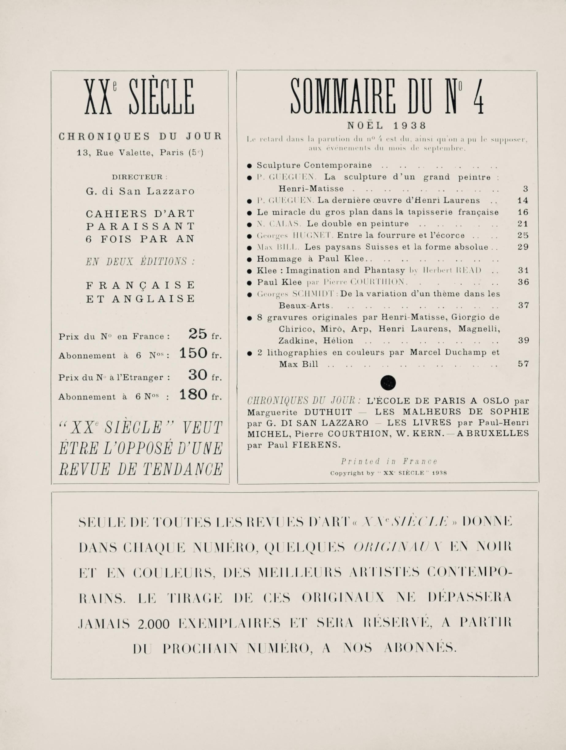 Comparable in price to Cahiers d'Art, early issues of XXe Sicle sold out rapidly.