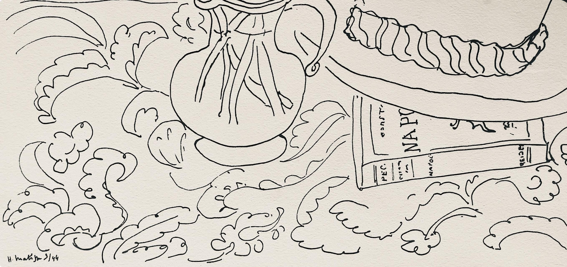 Lithograph on vlin Johannot dAnnonay paper. Paper Size: 9.84 x 12.83 inches. Excellent condition. Inscription: Signed in the plate and unnumbered, as issued. Notes: From the folio, Hommage No.2, Dessins de Matisse, 1944. Published by Hommage, Monaco, under the direction of Philippe Fontana, diteur, Monaco; printed by Imprimerie Robaudy, Cannes, June, 1944. Excerpted from the folio, This issue of HOMMAGE is printed in M numbered examples of I to M, and L examples, H.C.<......