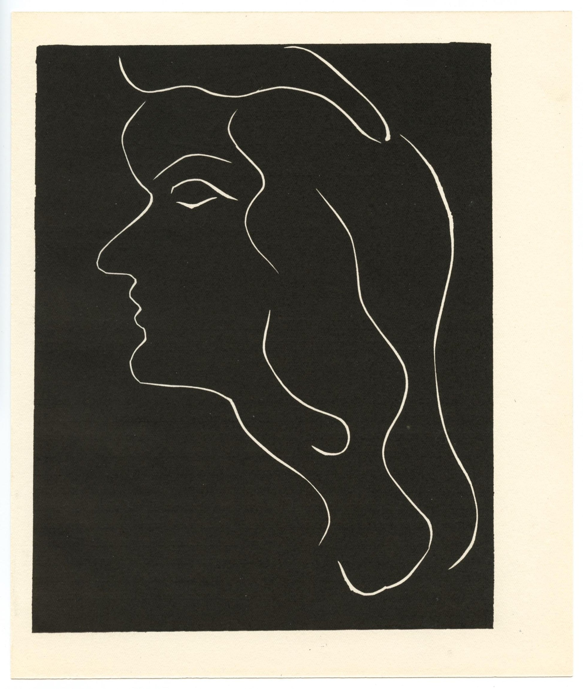 Woodcut on vlin suprieur paper. Unsigned and unnumbered. Paper Size: 9.625 x 8.25 inches. Excellent condition. Notes: From the volume, Pierre feu, Les Miroirs profonds. Published by Maeght, diteur, Paris; printed by Mourlot Frres, Paris, January 17, 1947. Excerpted from the volume (translated from French), Justification of the drawThis collection was completed to be printed in Paris on January XVII, MCMXLVII. The cover in five colors and the seventeen full-page illustrations, i.e. I frontispiece and one original non-text lithograph, I gouge engraved wood and fourteen unpublished rotogravures were composed and layouted by Henri Matisse. The printing of the illustrations and texts was made by Draeger Frres. It was printed CMXCIX examples, including XLIX signed by Henri Matisse numbered from I to XLIX and CML on Vlin suprieur numbered from I to CML. The lithographic stone drawn by Mourlot frres, the engraved wood and the rotogravure brass were scratched after printing.