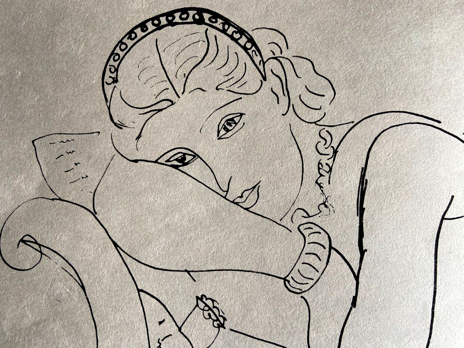 "The drawings of the 1930s are considered by the master his greatest masterpieces. These designs represent women lying on wallpapers decorated with woven wovers of Arabesques and are miracles of pure lines that best enclose the sphere of female sensuality. In the reflections and mirrors Matisse seems to want to give the soul of his models in the most fine and virtuous traits. " C. Zervos