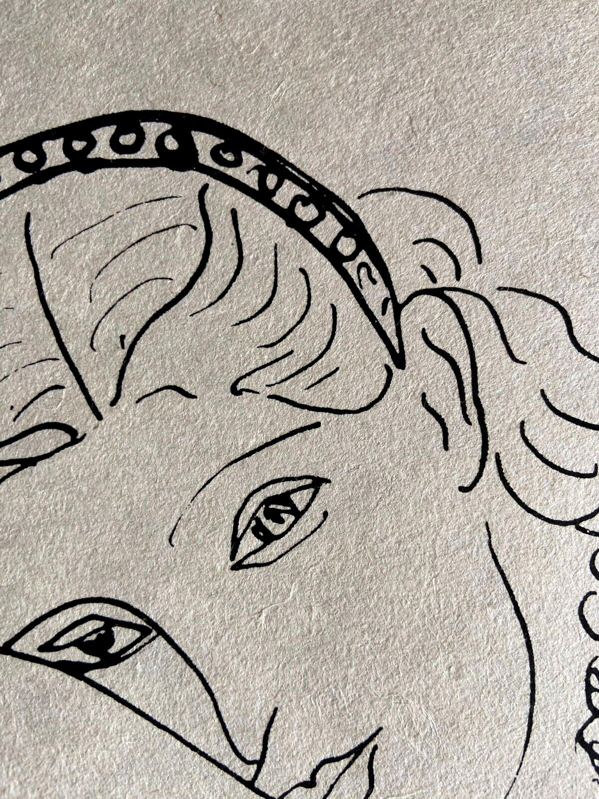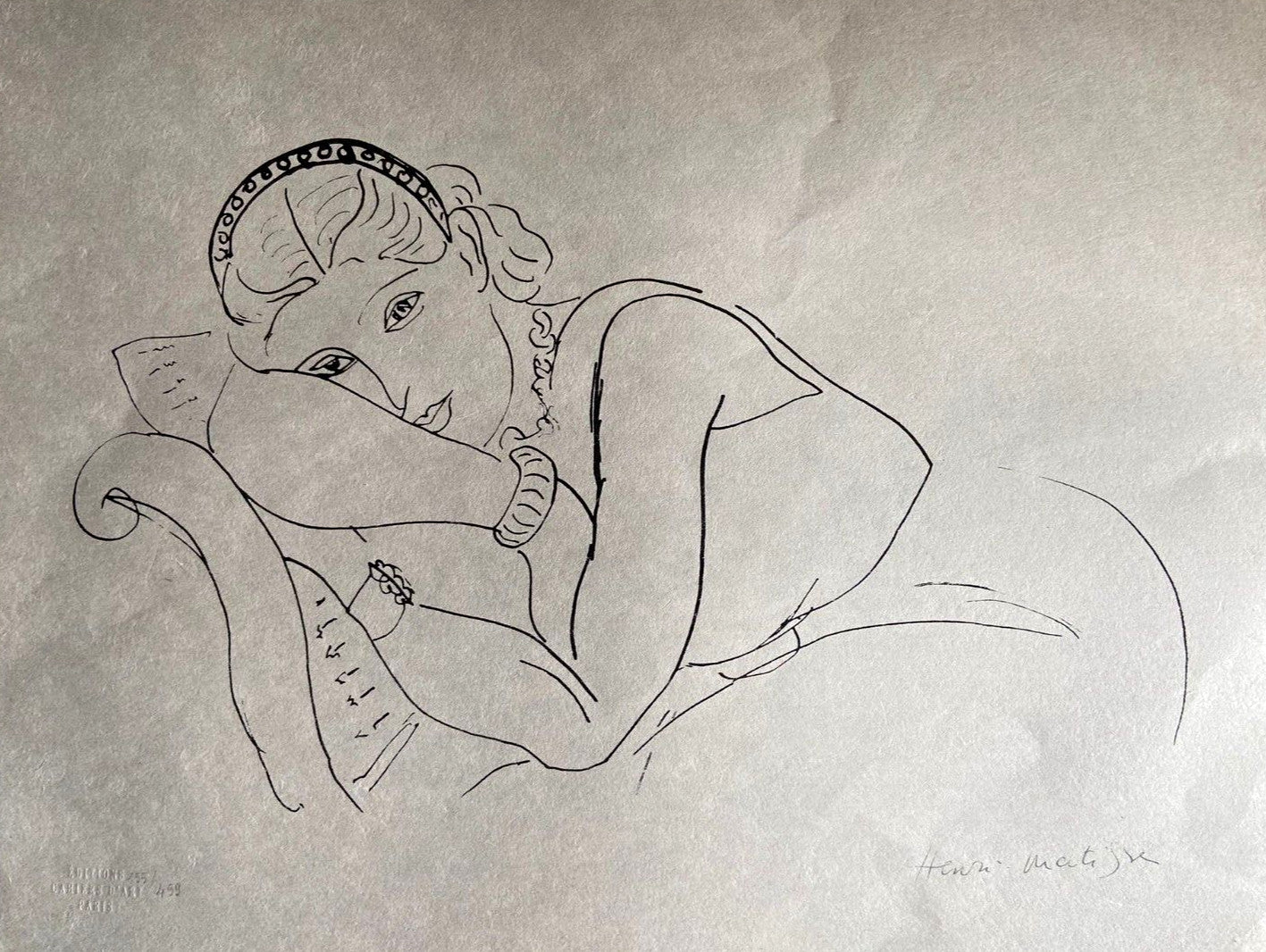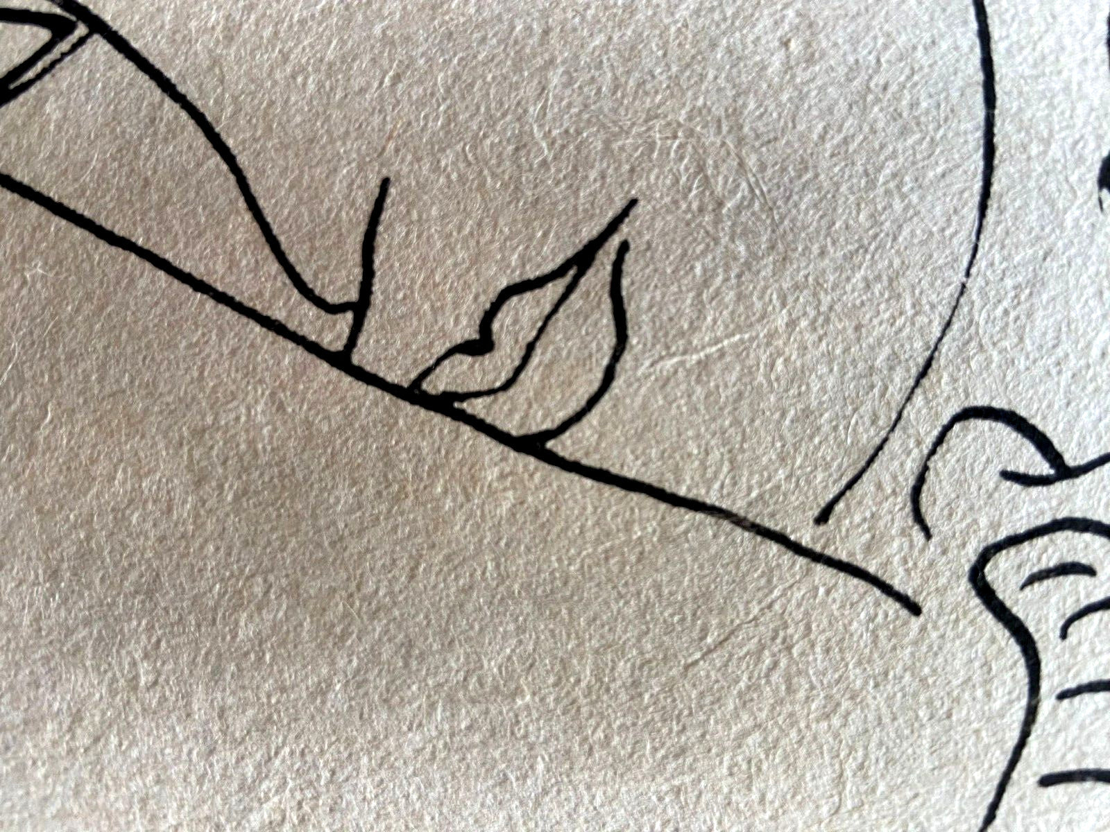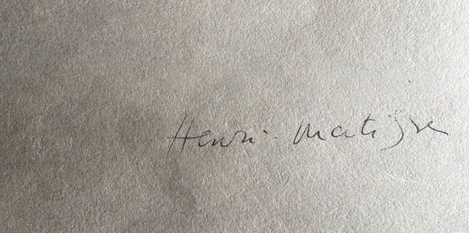 First and only edition created by the famous Cahiers d'Art publishing house in 1960 on precious hand -done Japon Washi card. Contract between the master and the publisher Zervos The edition is 499 ES as established by the contract between the publisher Christian Zervos and Maestro Matisse. Contract that will be delivered together with the art folder. Dry stamp on the "Editions Cahiers d'Artis" work. Signature Henri Matisse on the slab.