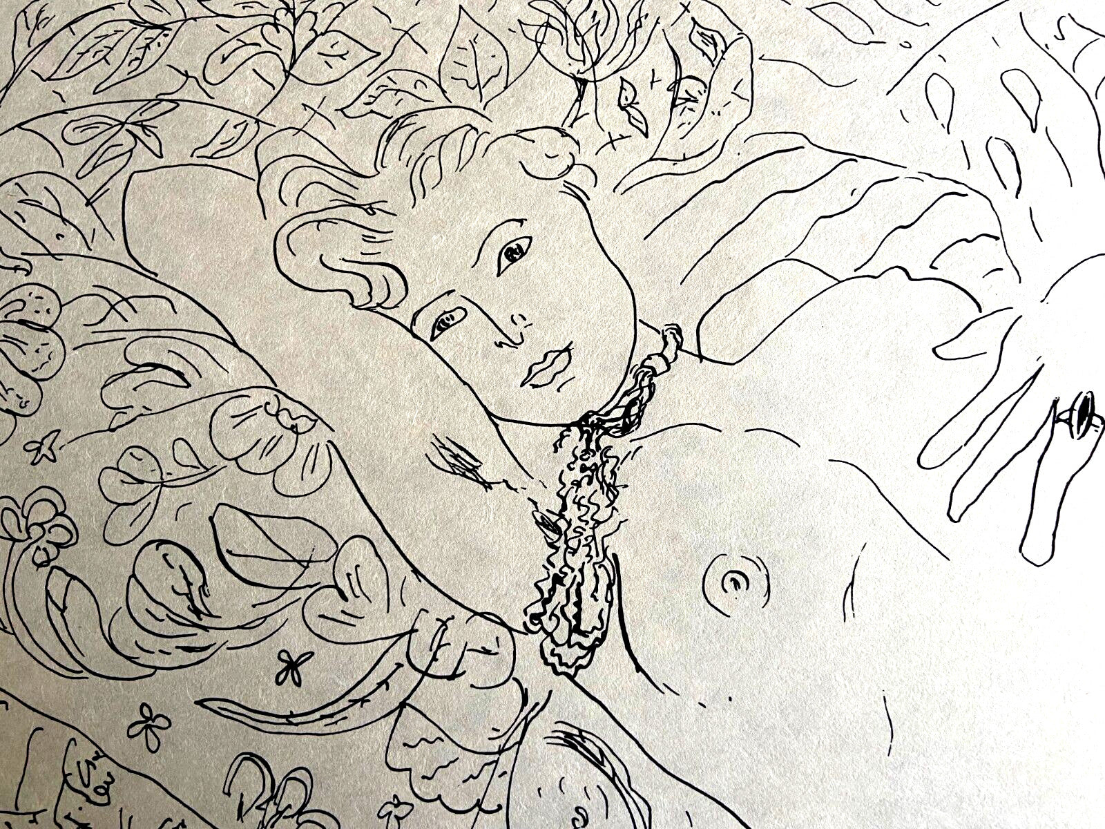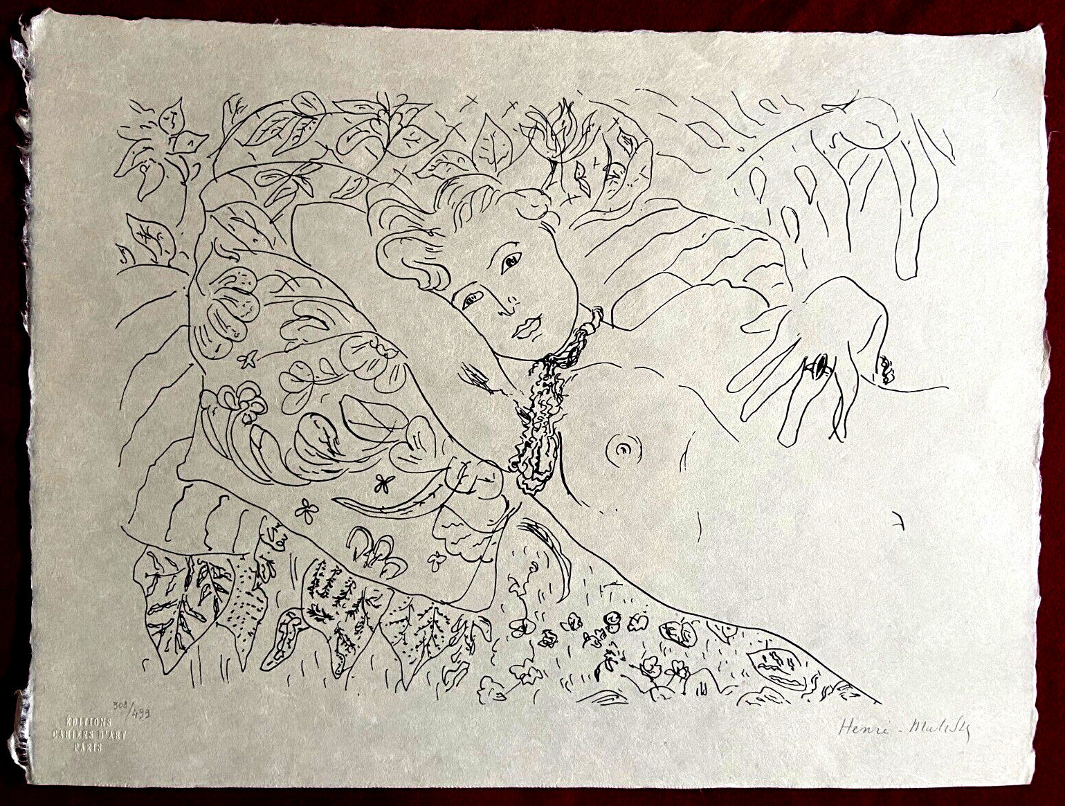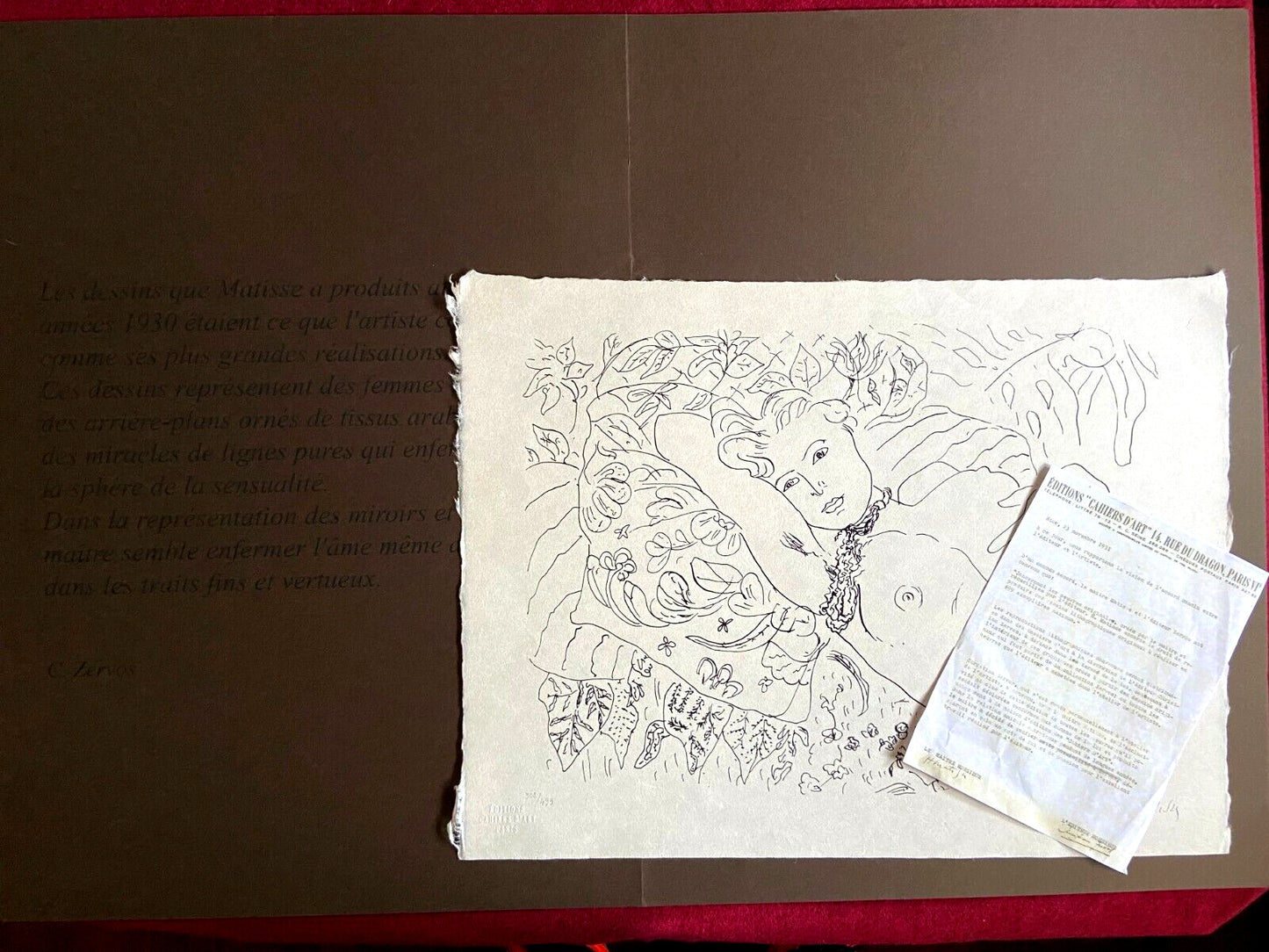 Henri Matisse Lithograph Hand Made Contract Hand Signed Numbered In Pencil Henri Matisse '' Studio di nudo '' The graphic work measures 45 x 60 cm with full sheet. "The drawings of the 1930s are considered by the master his greatest masterpieces. These designs represent women lying on wallpapers decorated with woven wovers of Arabesques and are miracles of pure lines that best enclose the sphere of female sensuality. In the reflections and mirrors Matisse seems to wa......