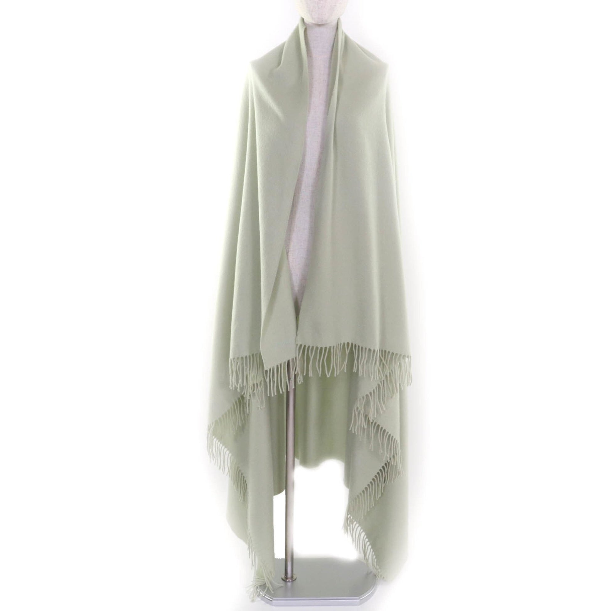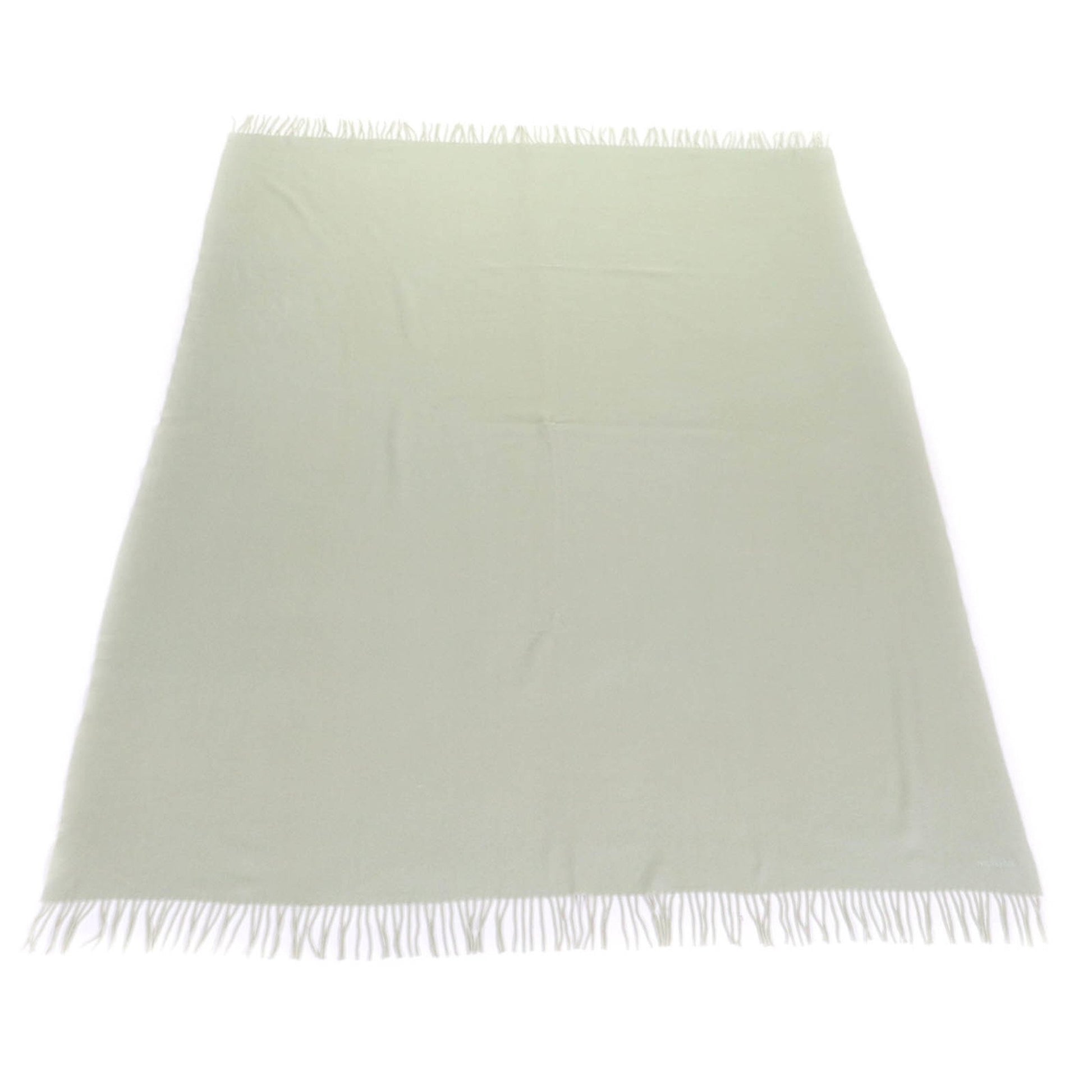 Hermes 100% Cashmere Stole/Shawl In Light Green With Embroidered Logo And Fringe