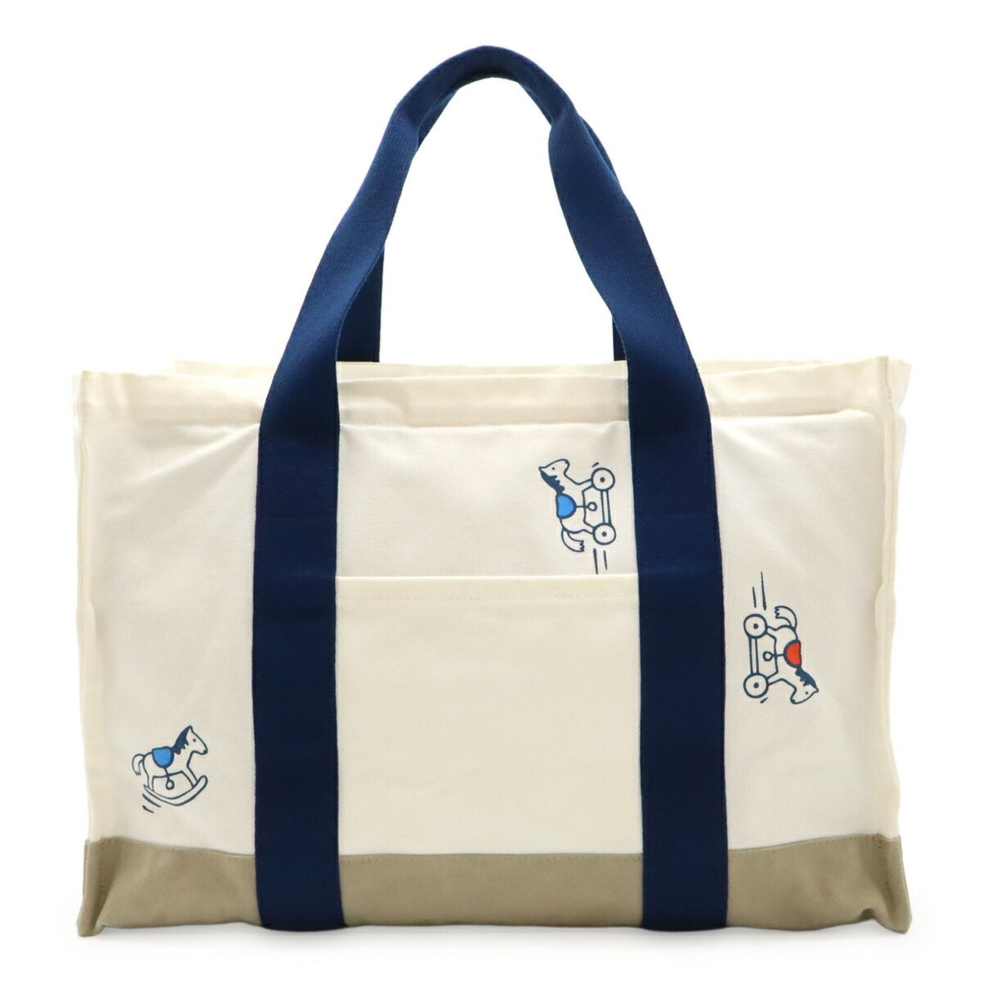 Hermes Adada Mother'S Bag Tote Horse Canvas Blue Marine Ivory Beige