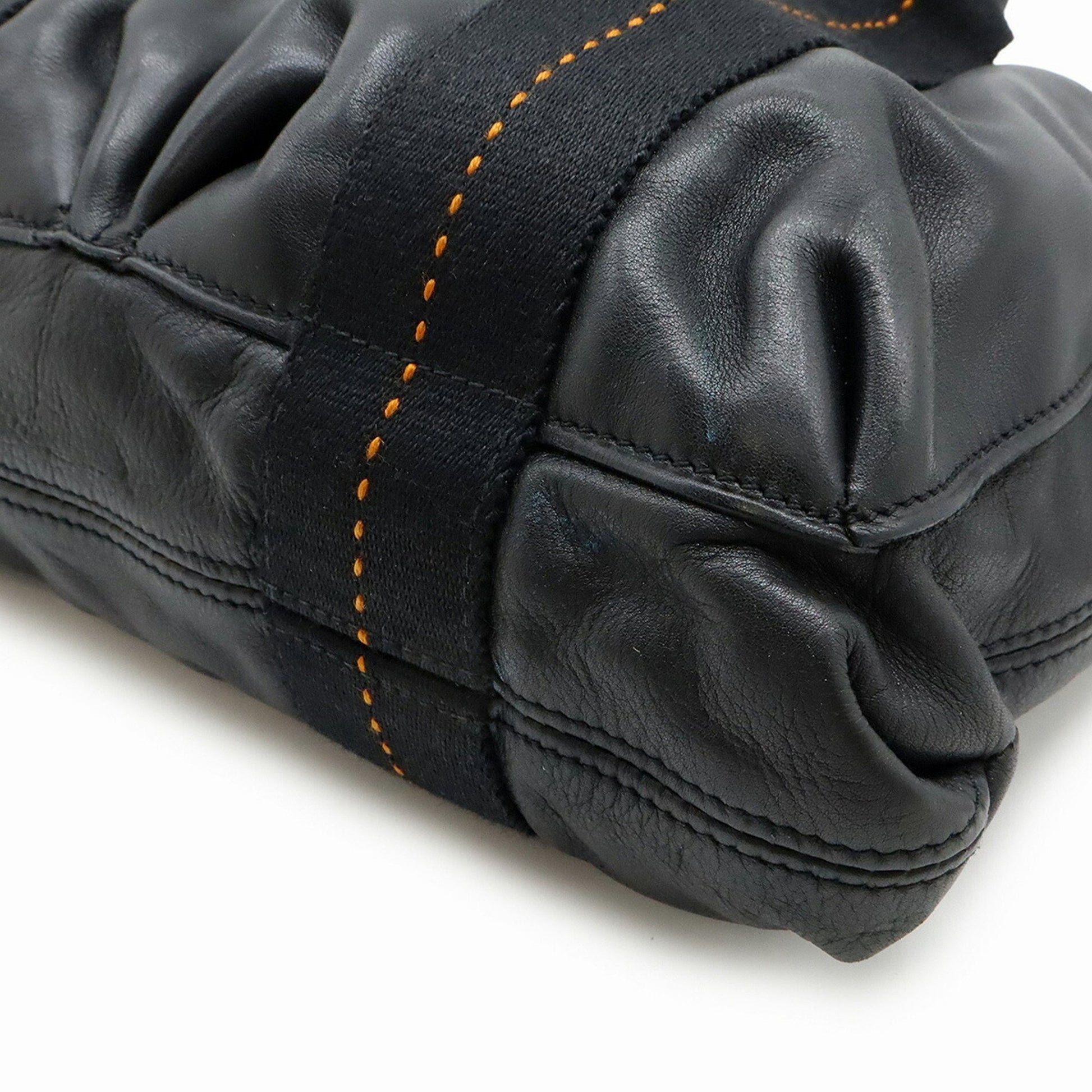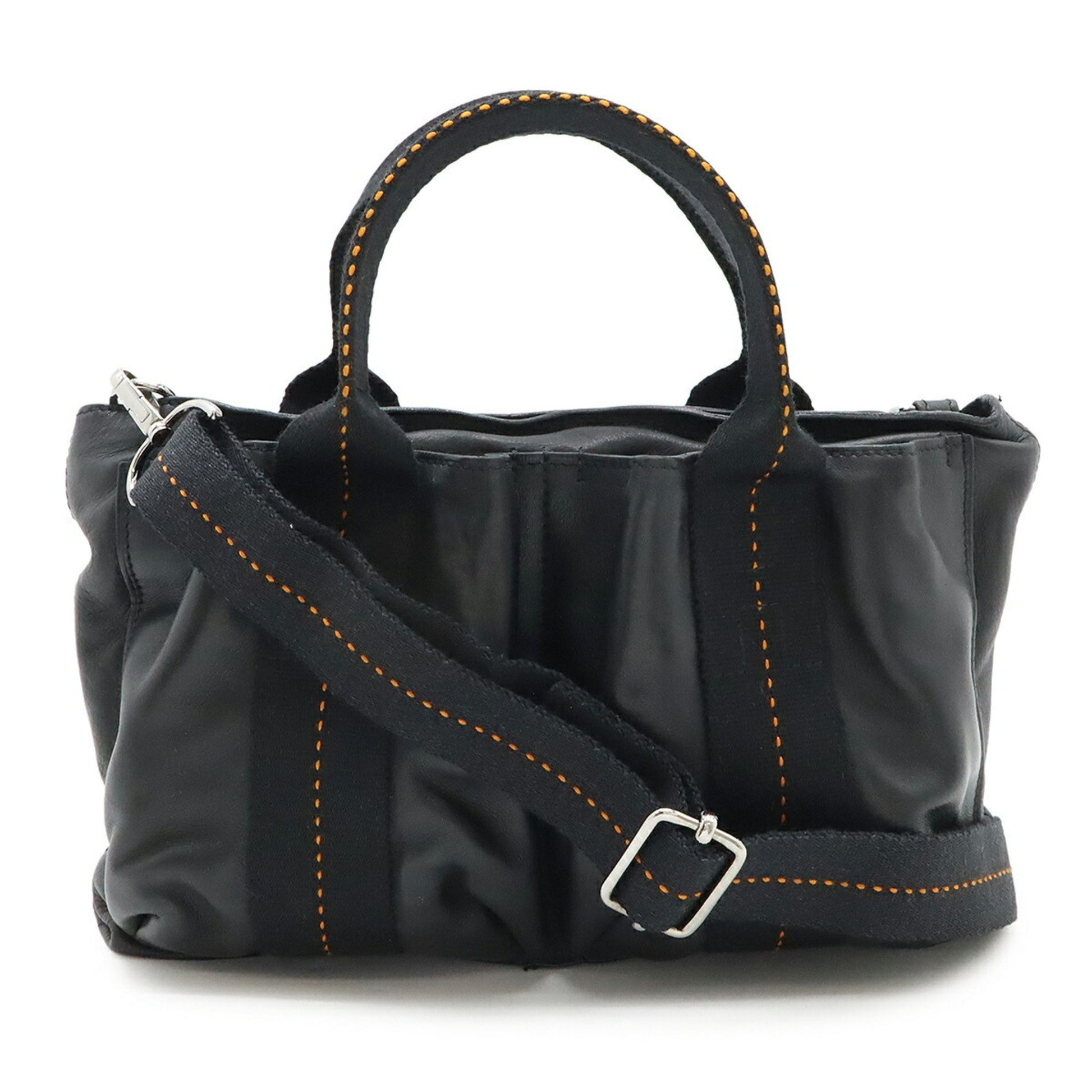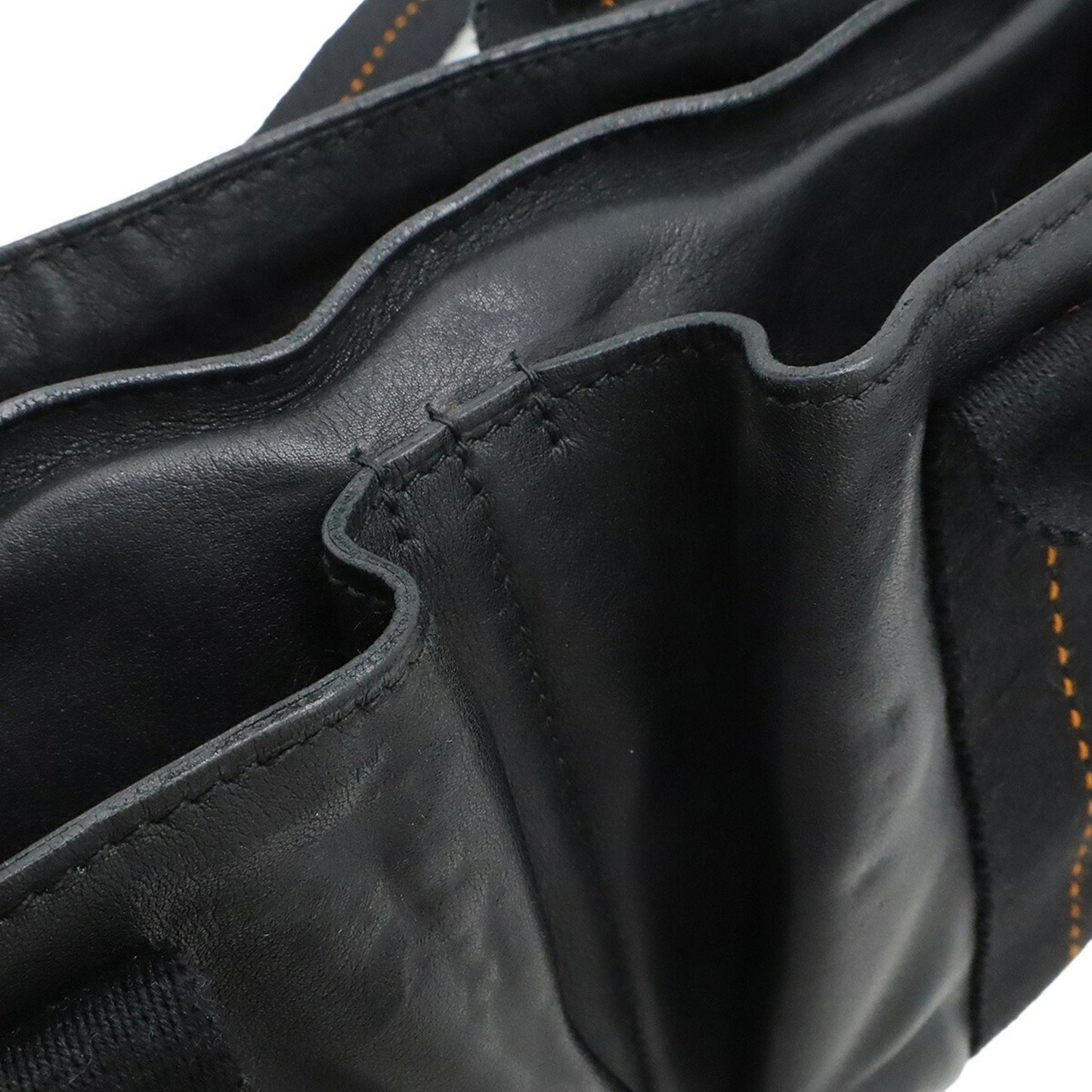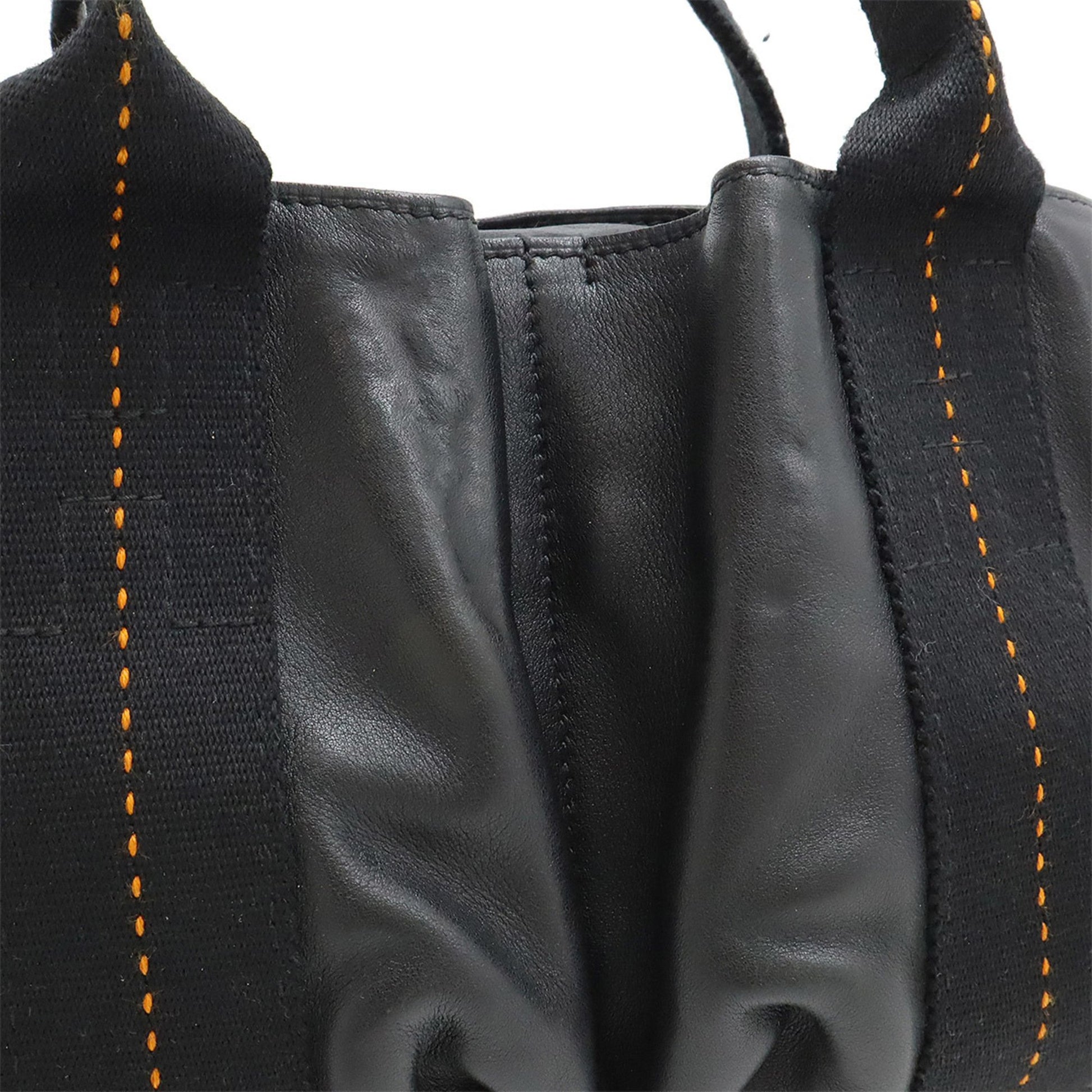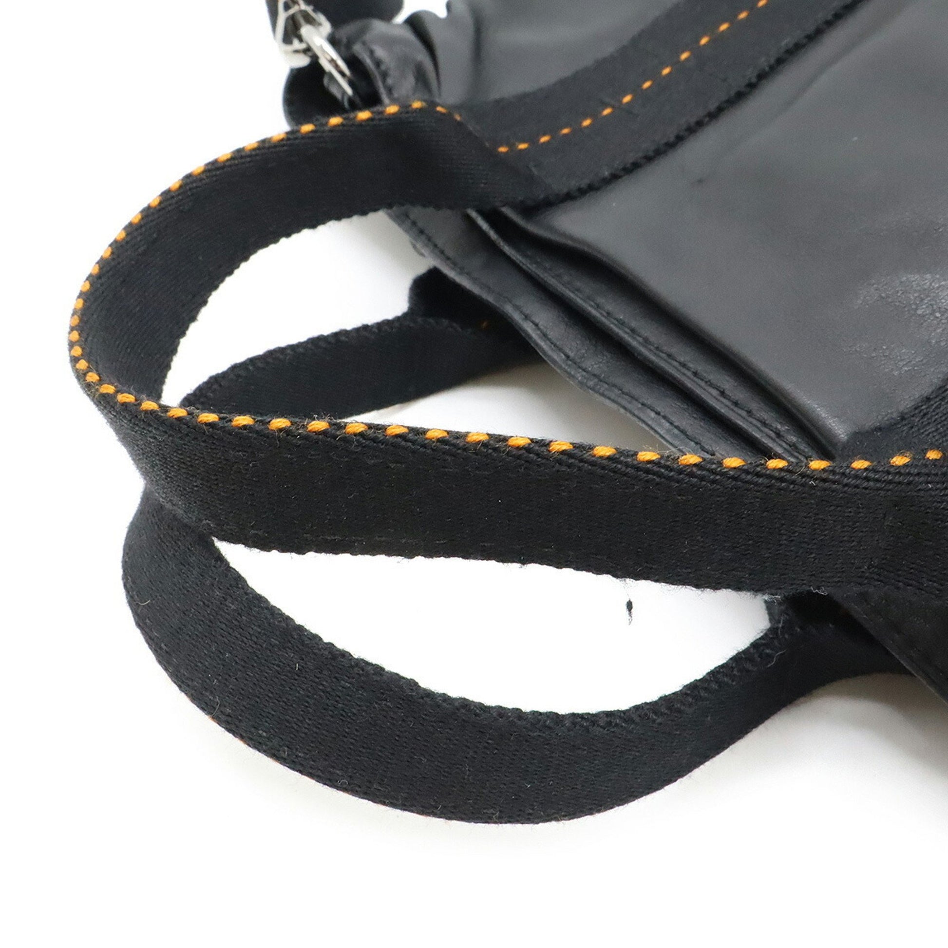 Hermes Caravan Horizontal Pm Tote Bag Shoulder Veauderma Leather Black Orange