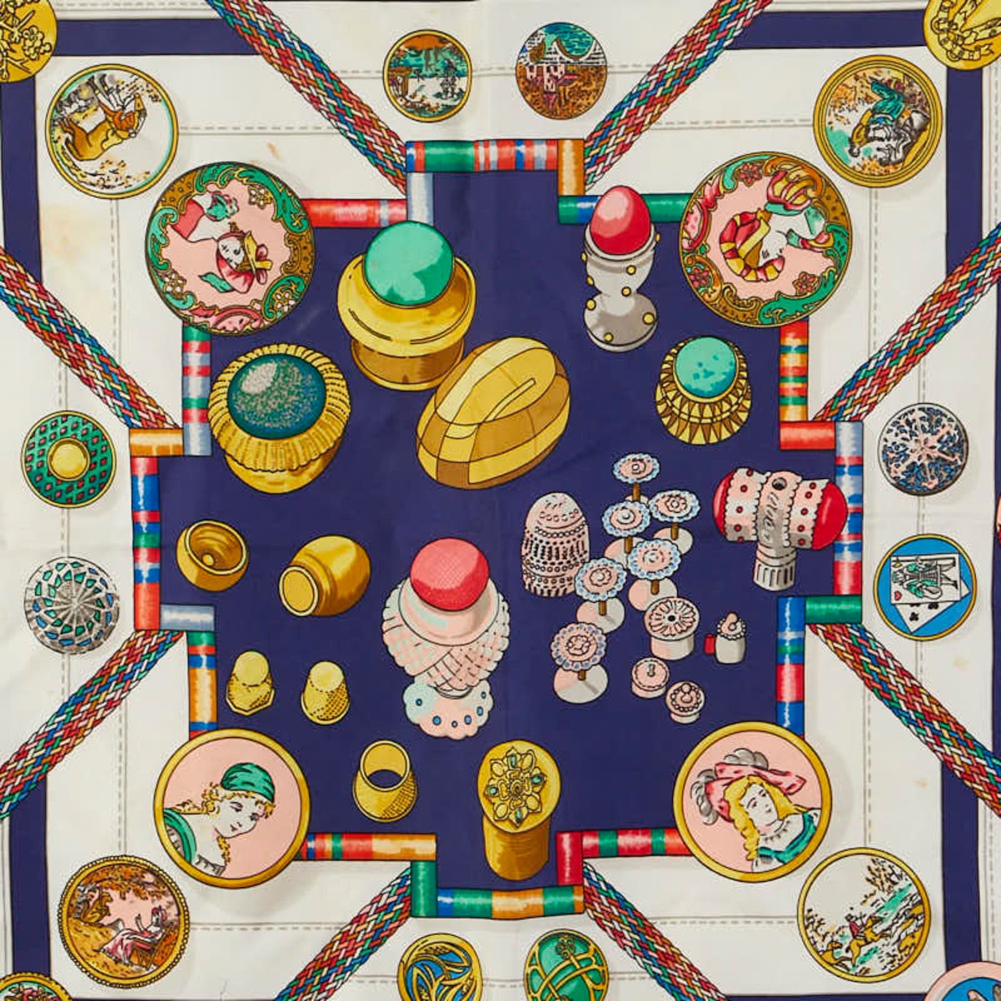 Hermes Carr 90 Pelile Main Seamstress Scarf Muffler Navy Multicolor Silk