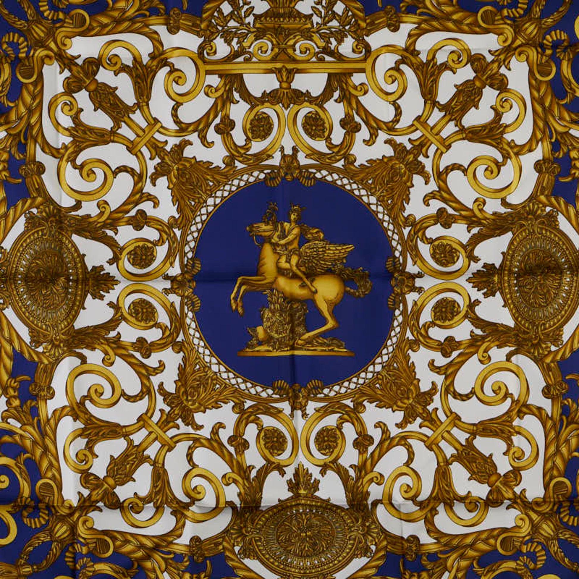 Hermes Carre 90 Les Tuileries Tuileries Park Scarf Muffler Navy White Silk