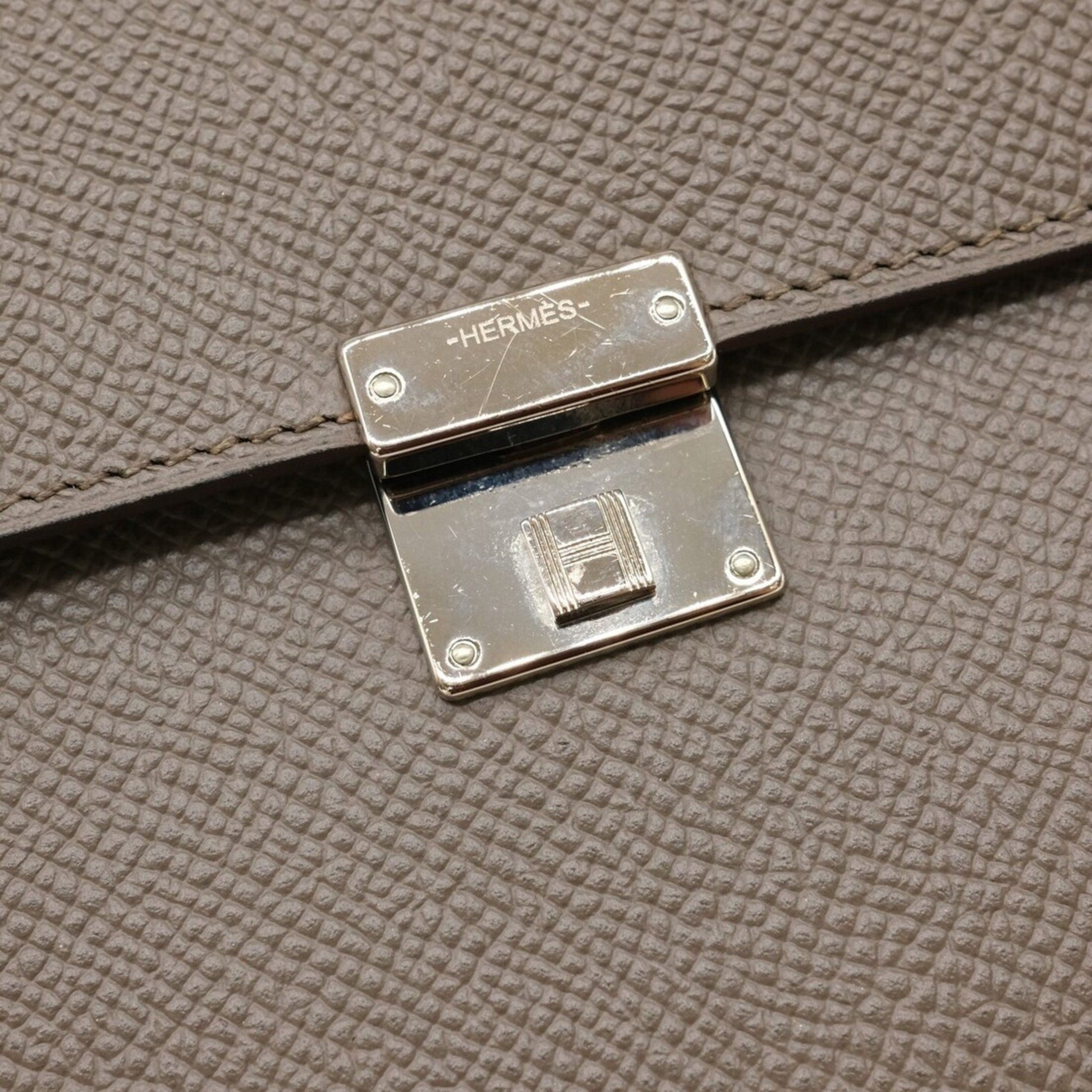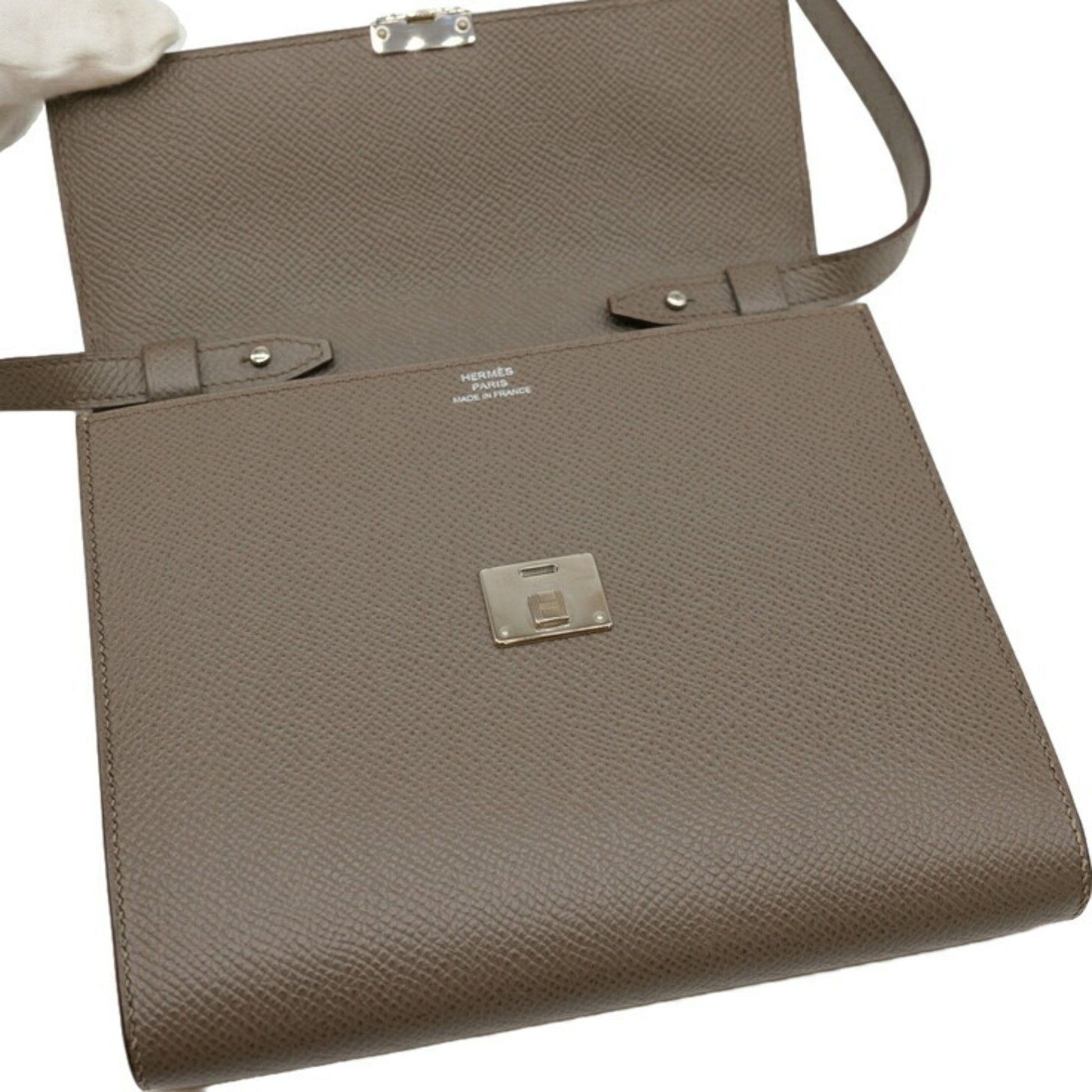 Hermes Click 16 Shoulder Bag Pouch Wallet Epsom Leather Etoupe Greige #A