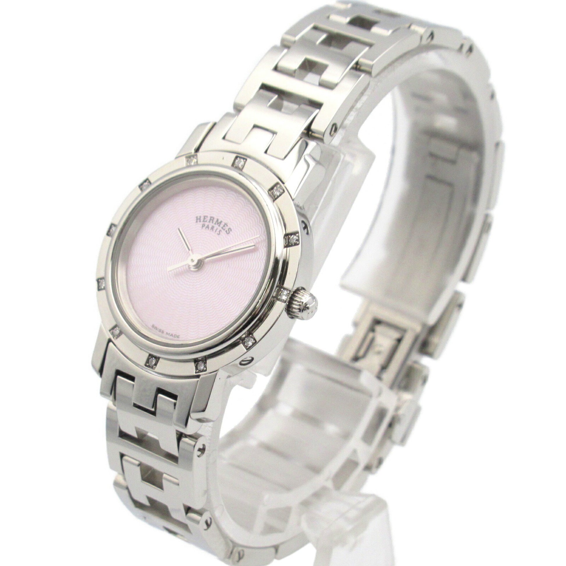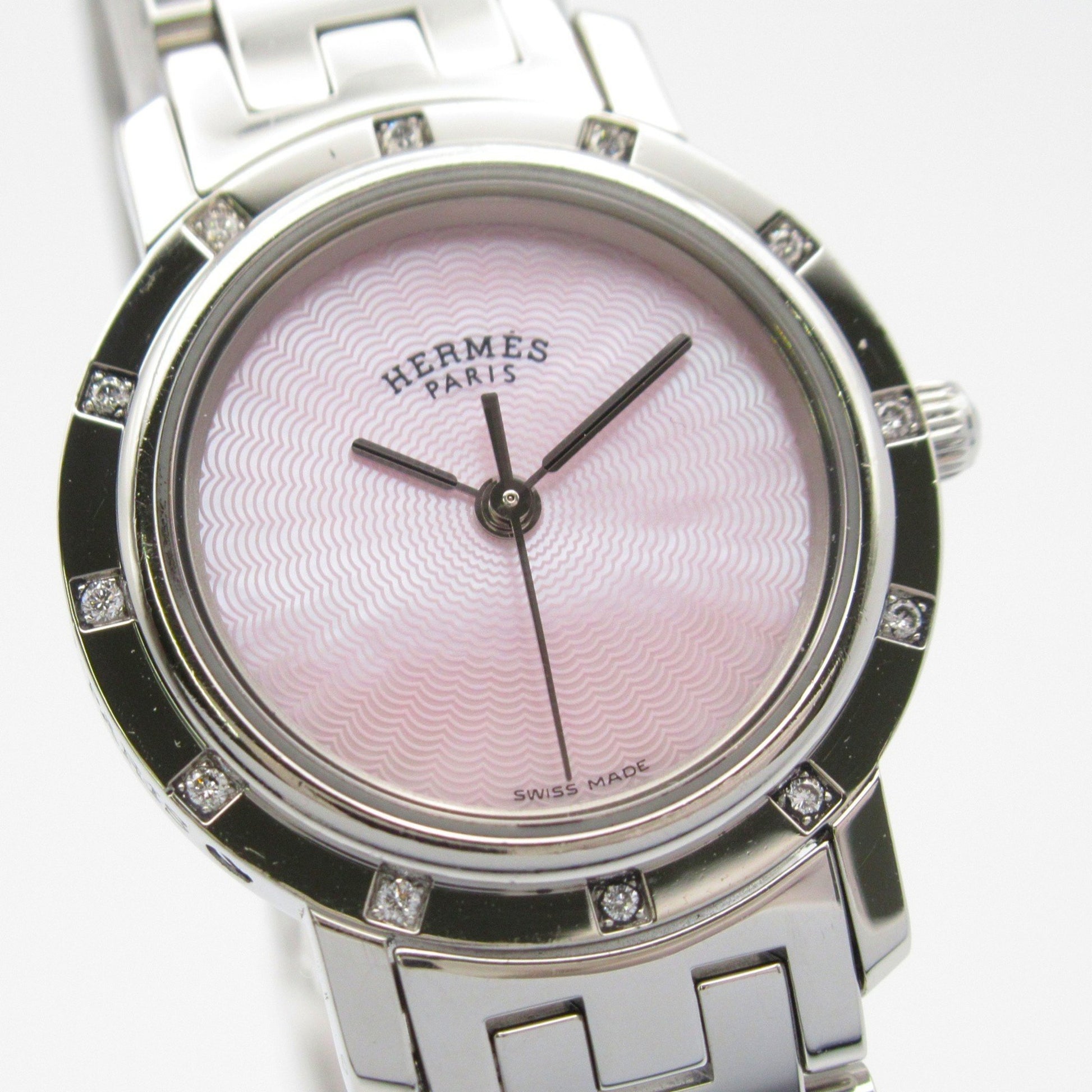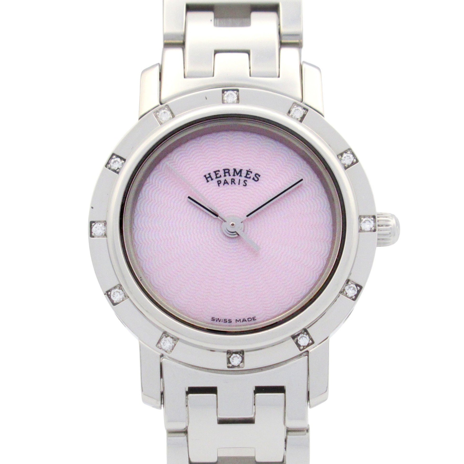 Hermes Clipper Nacle Diamond Bezel Watch Stainless Steel