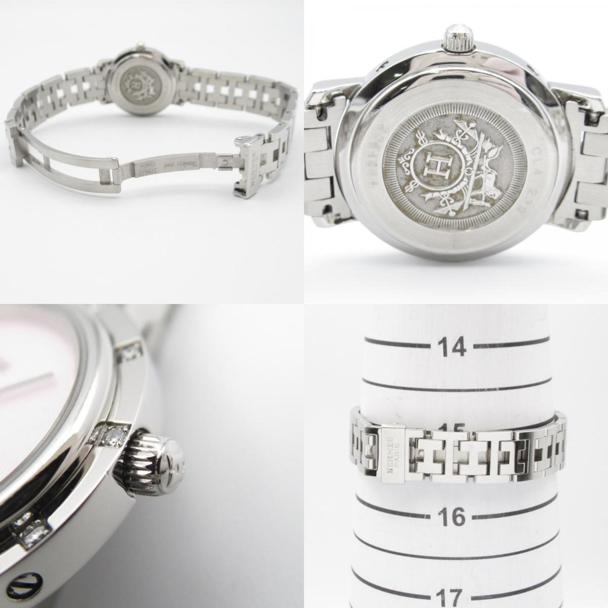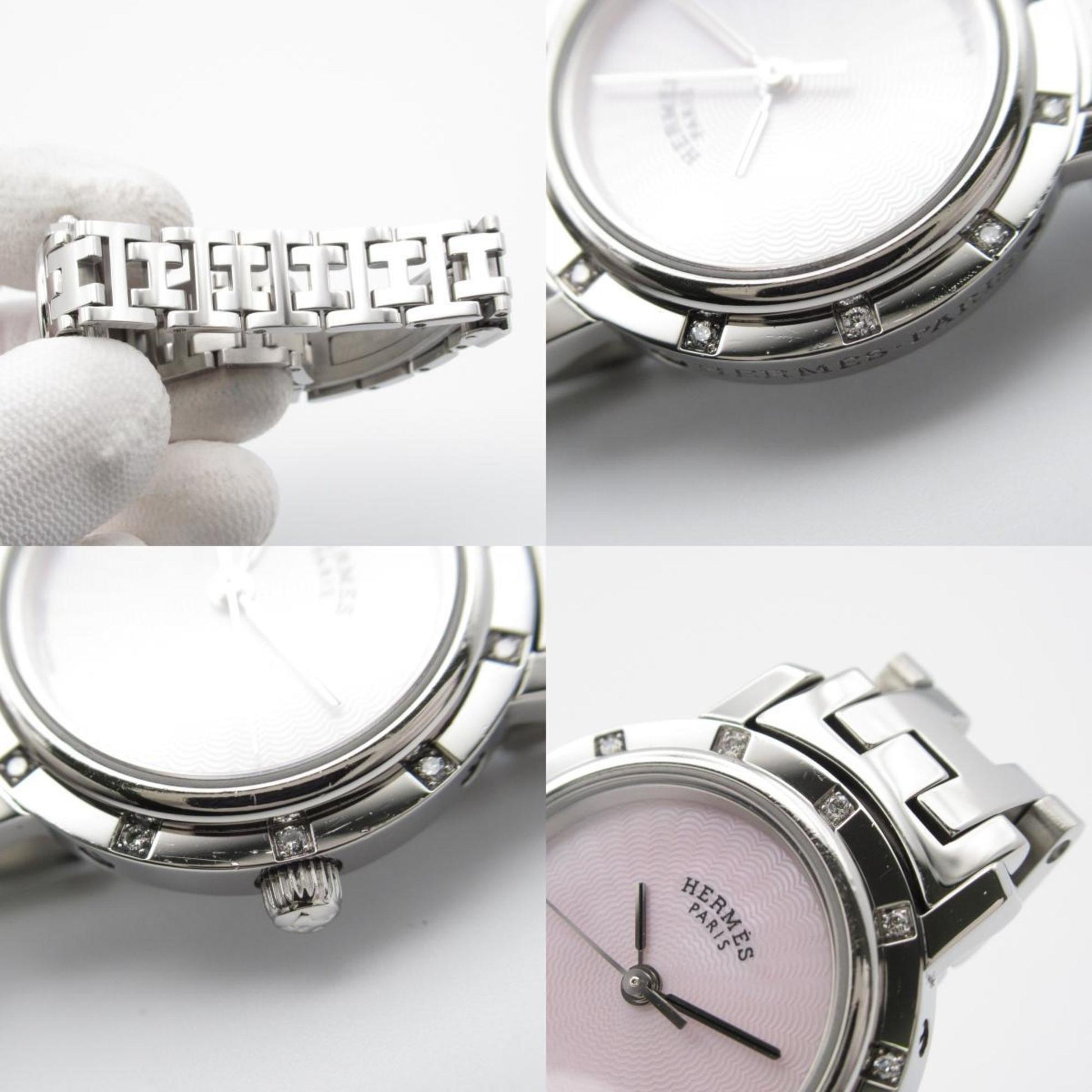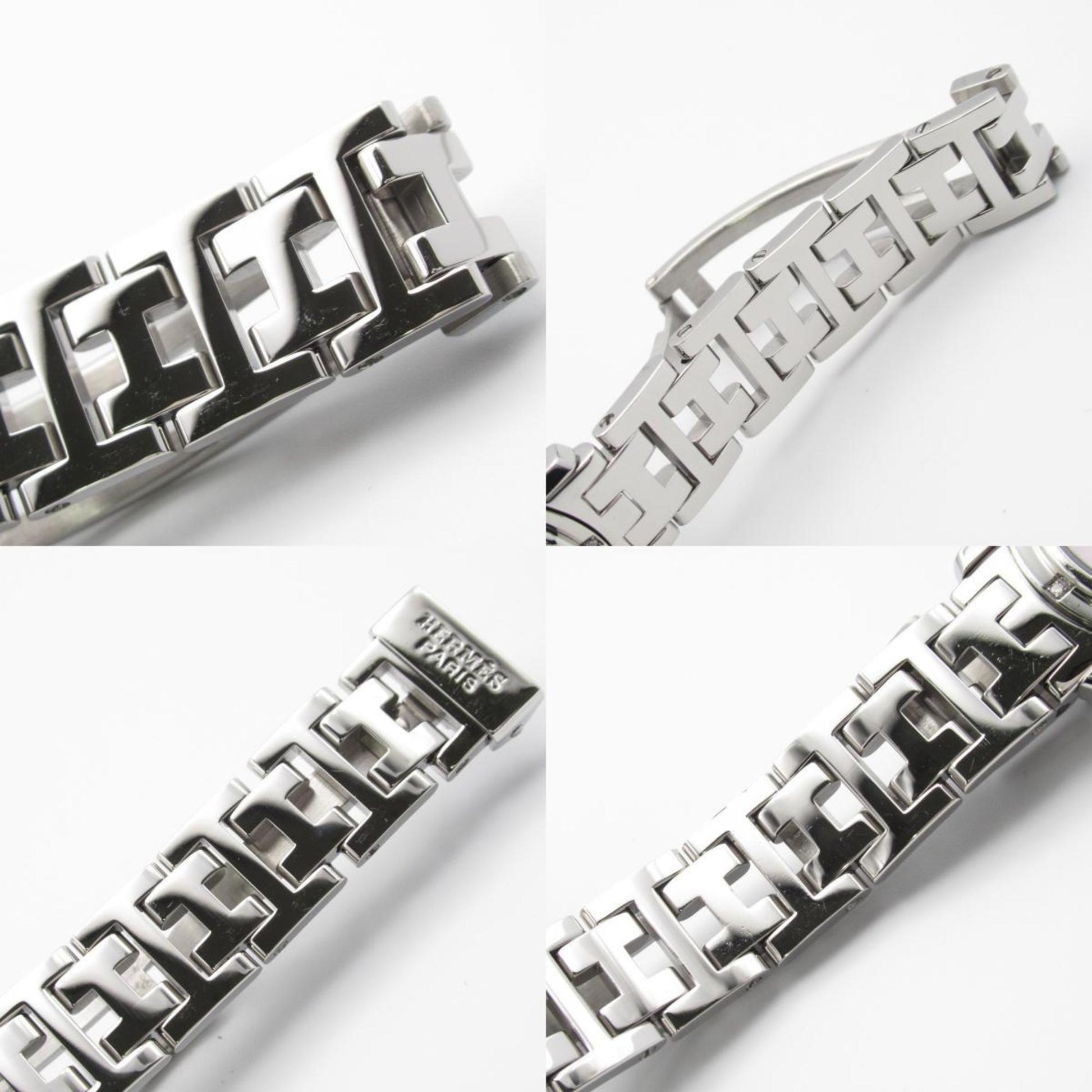 Hermes Clipper Nacle Diamond Bezel Watch Stainless Steel