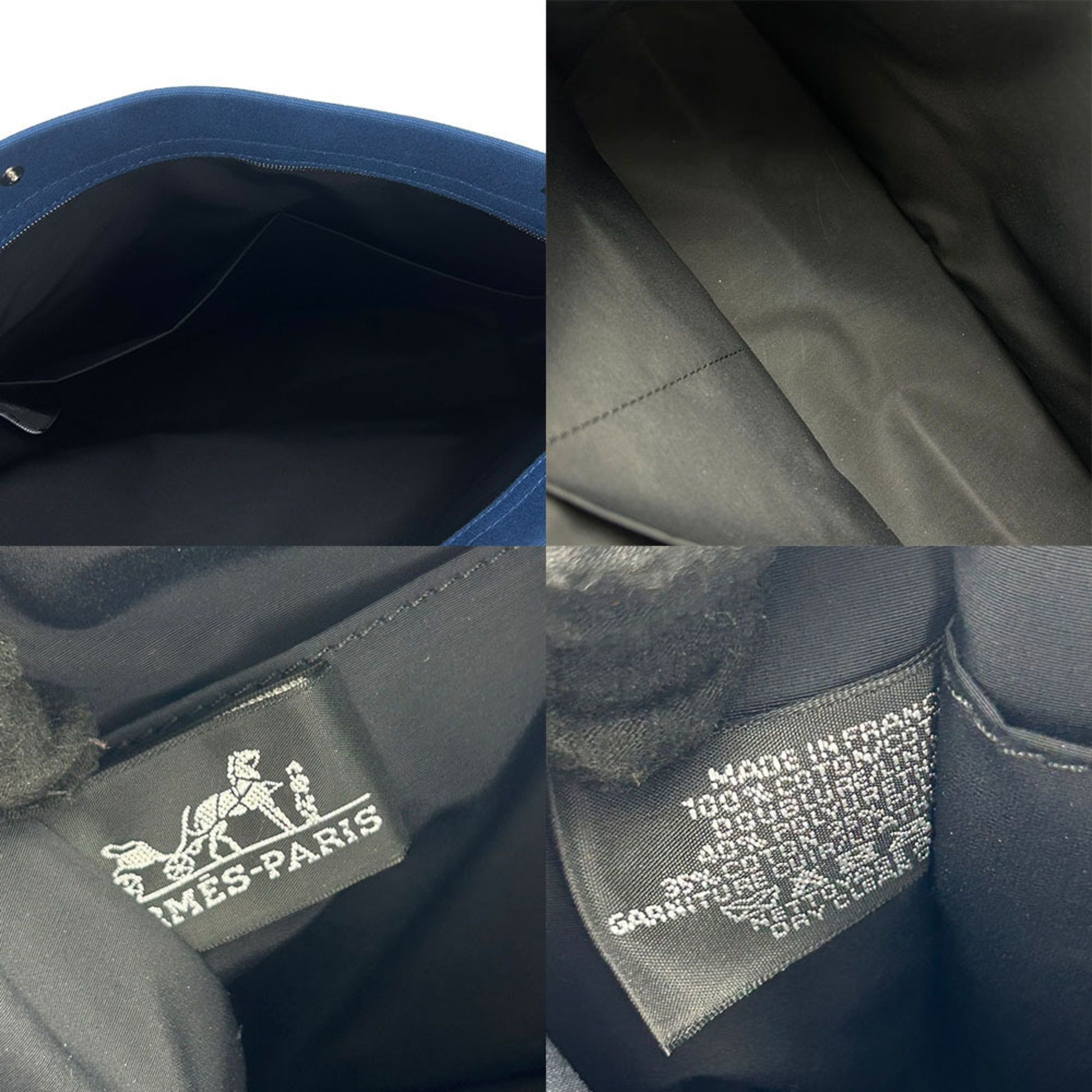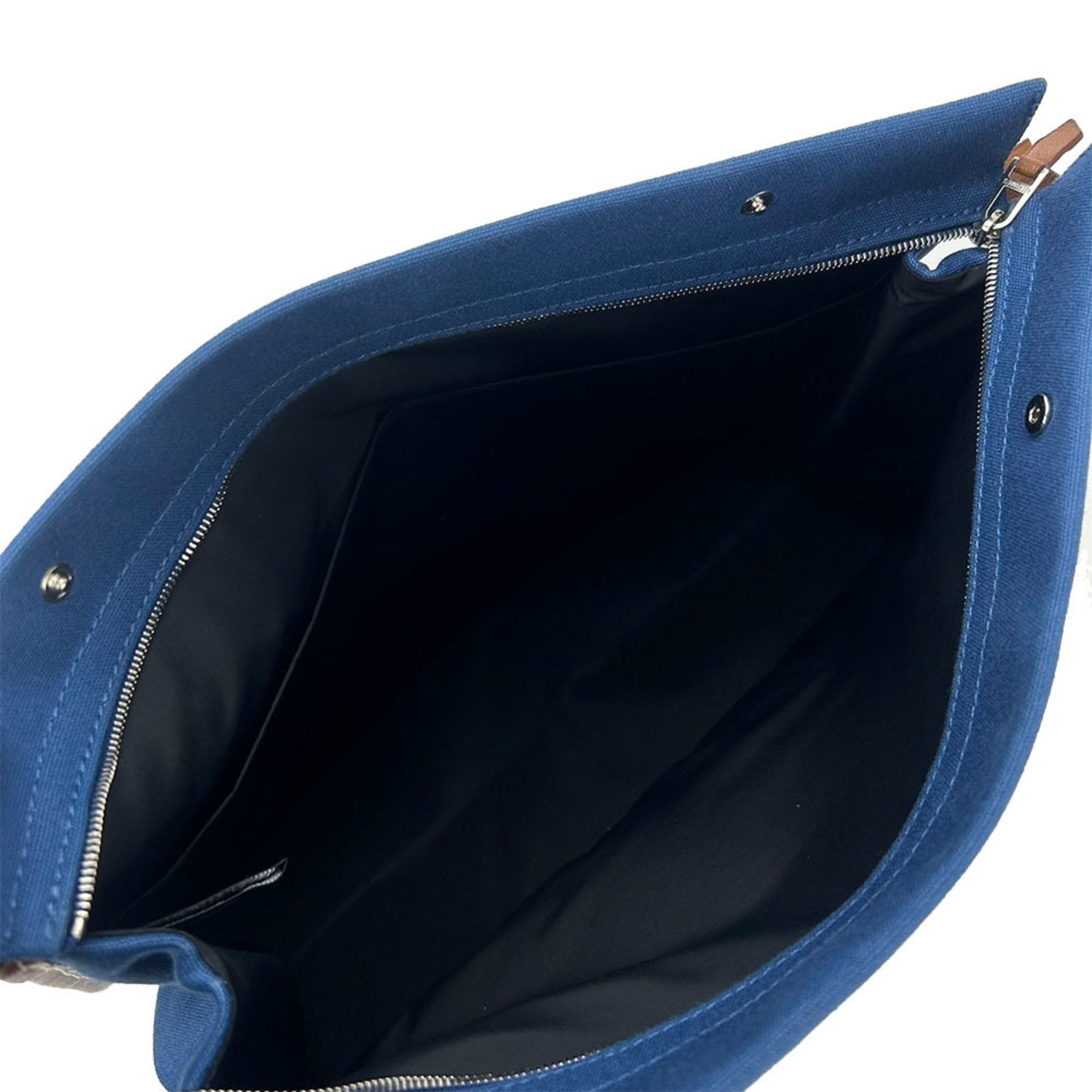 Hermes Clutch Bag Canvas Leather Navy Brown