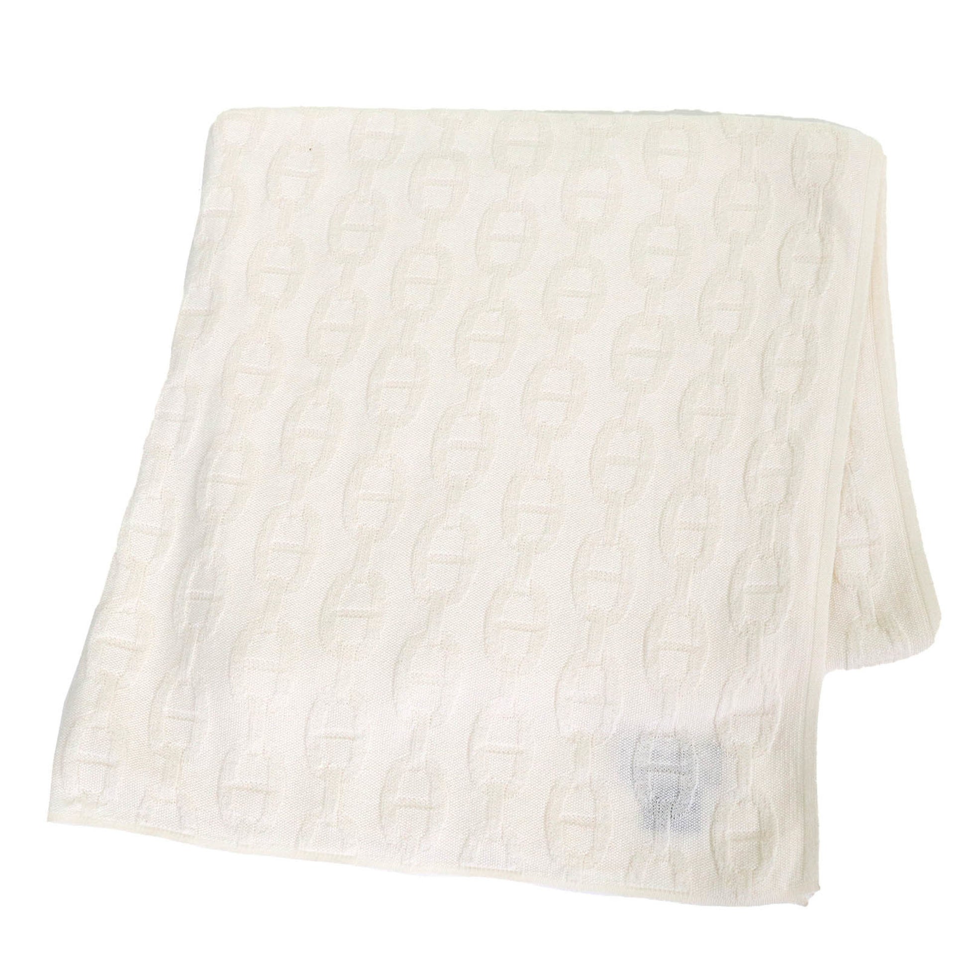 Hermes Cotton Cashmere Chaine D'Ancre Pattern Large Shawl/Scarf/Stole Off-White Made In France