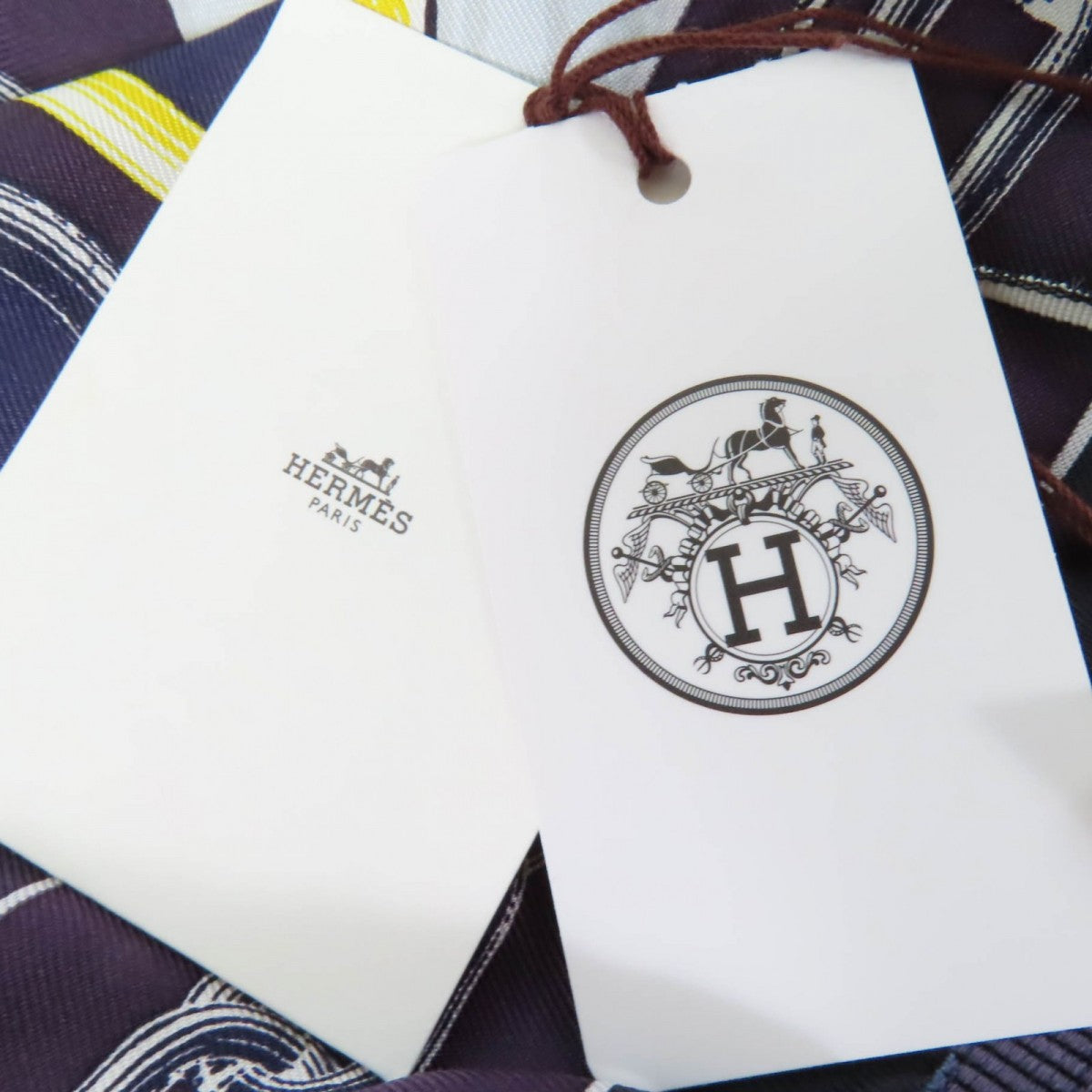 Hermes Cropped Pants Silk Navy Kaleidoscope Effect 40