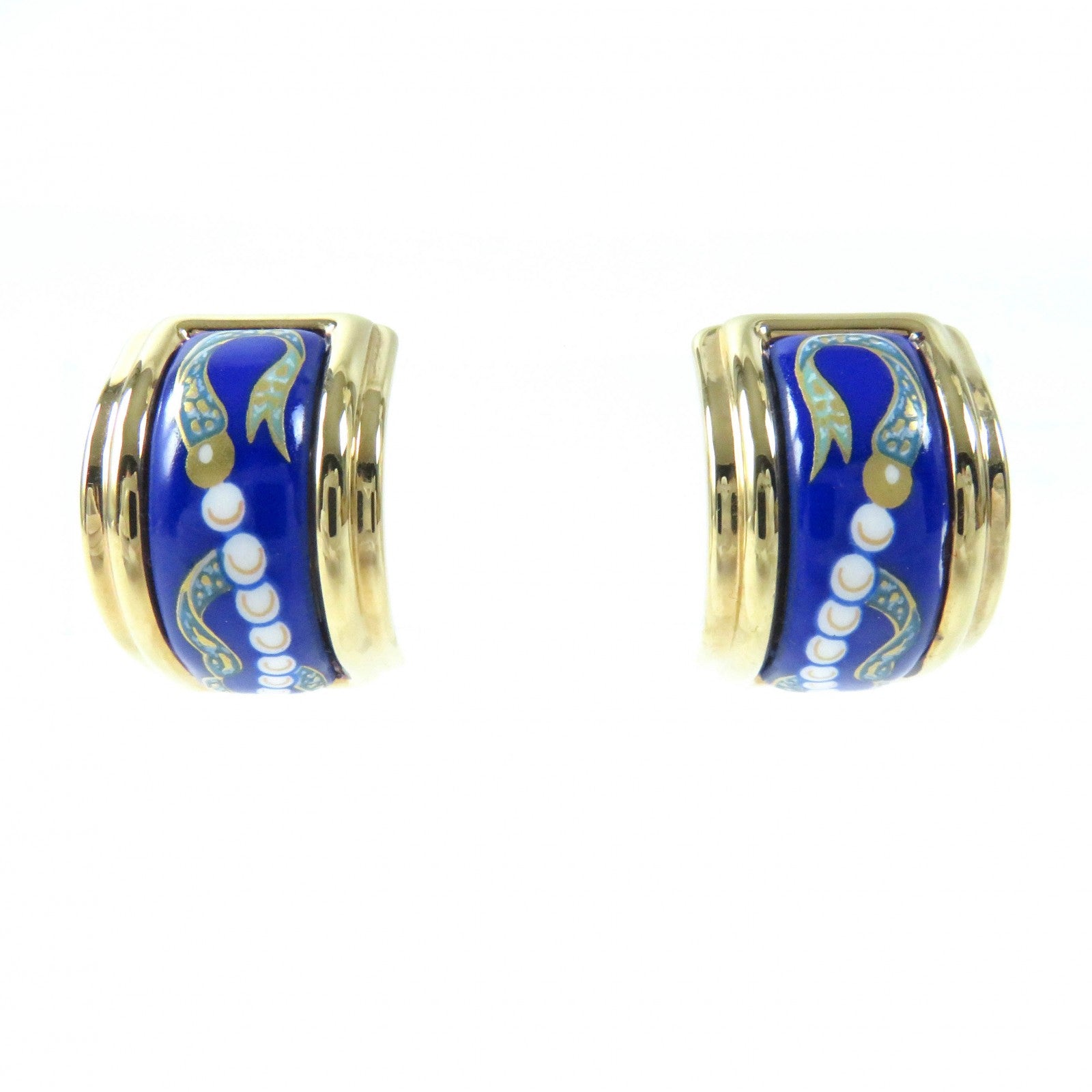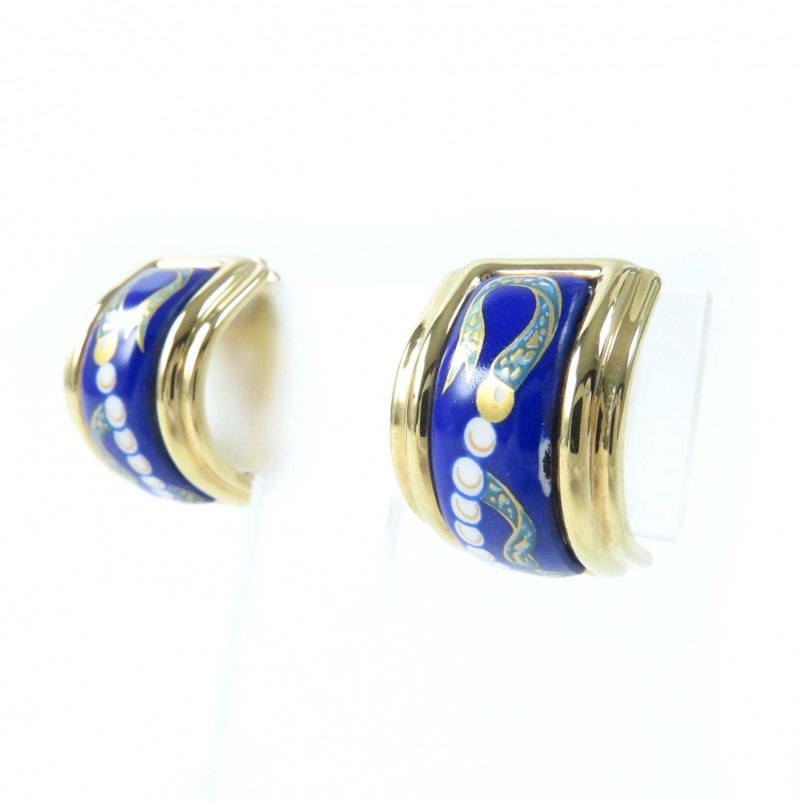 Hermes Earring Gold Plated Blue Pearl Motif Nanappoyaki Emile Women
