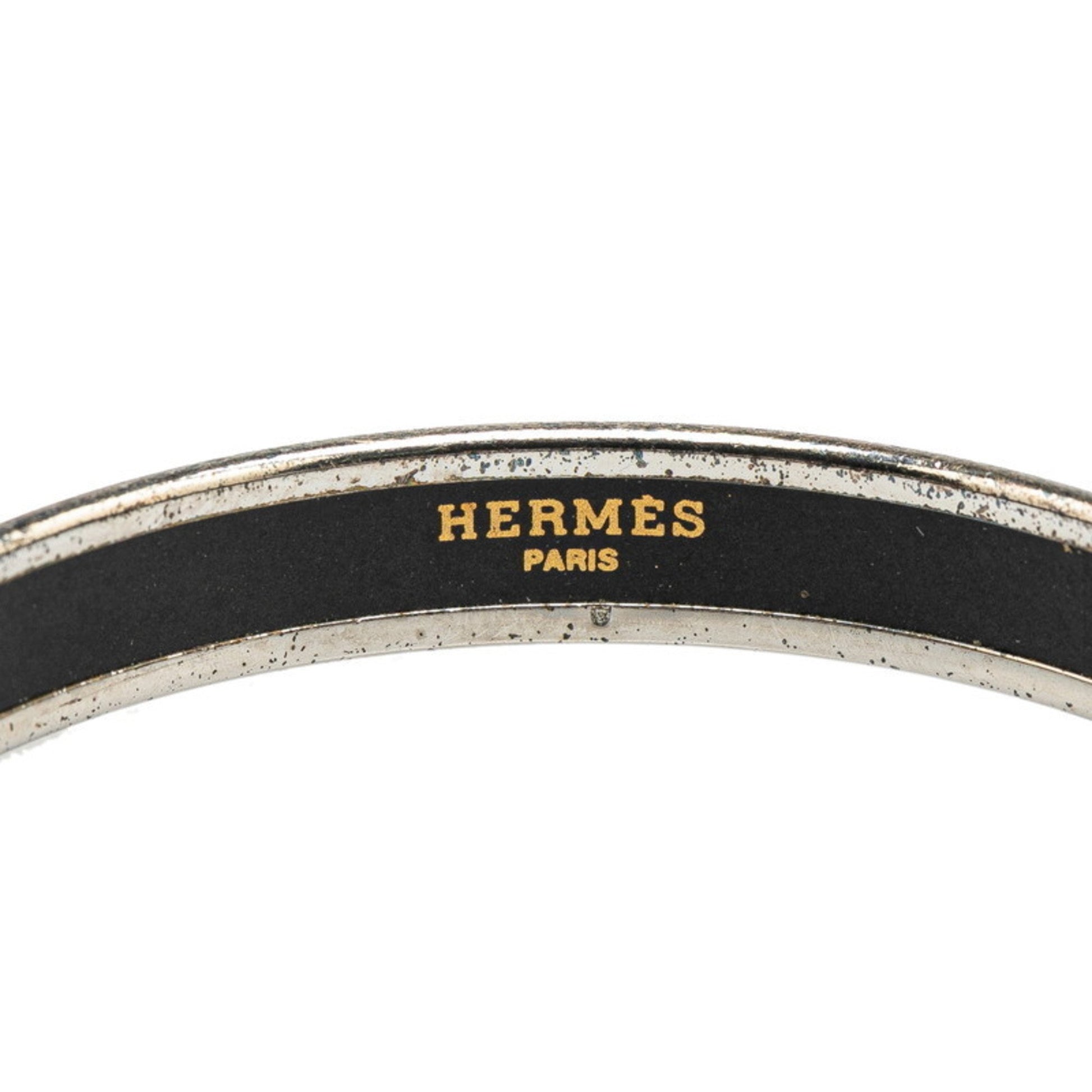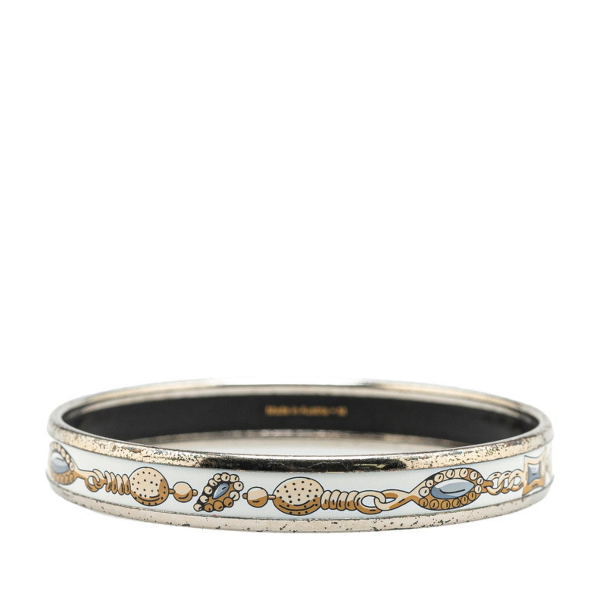 Hermes Enamel Bangle Silver White Multicolor Metal