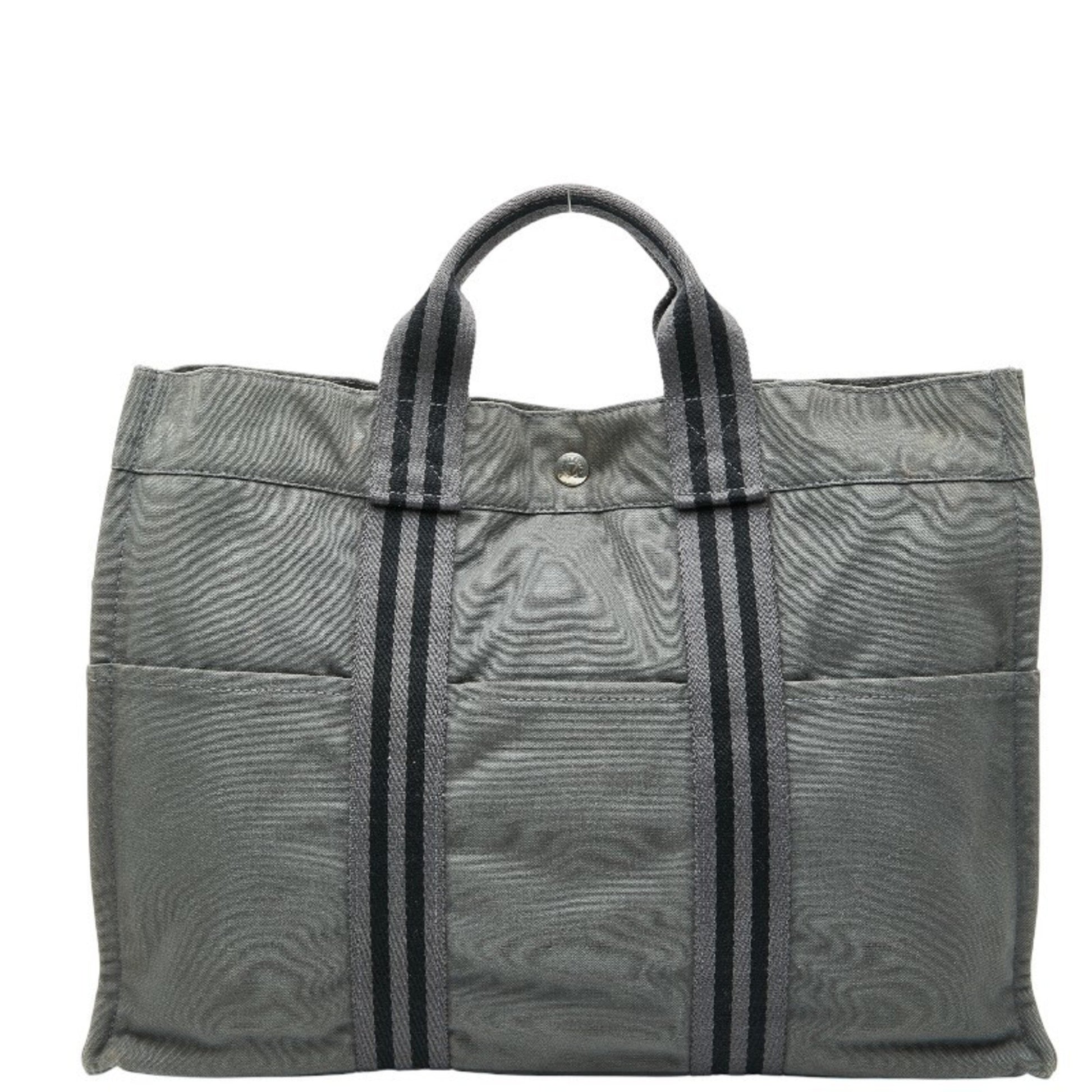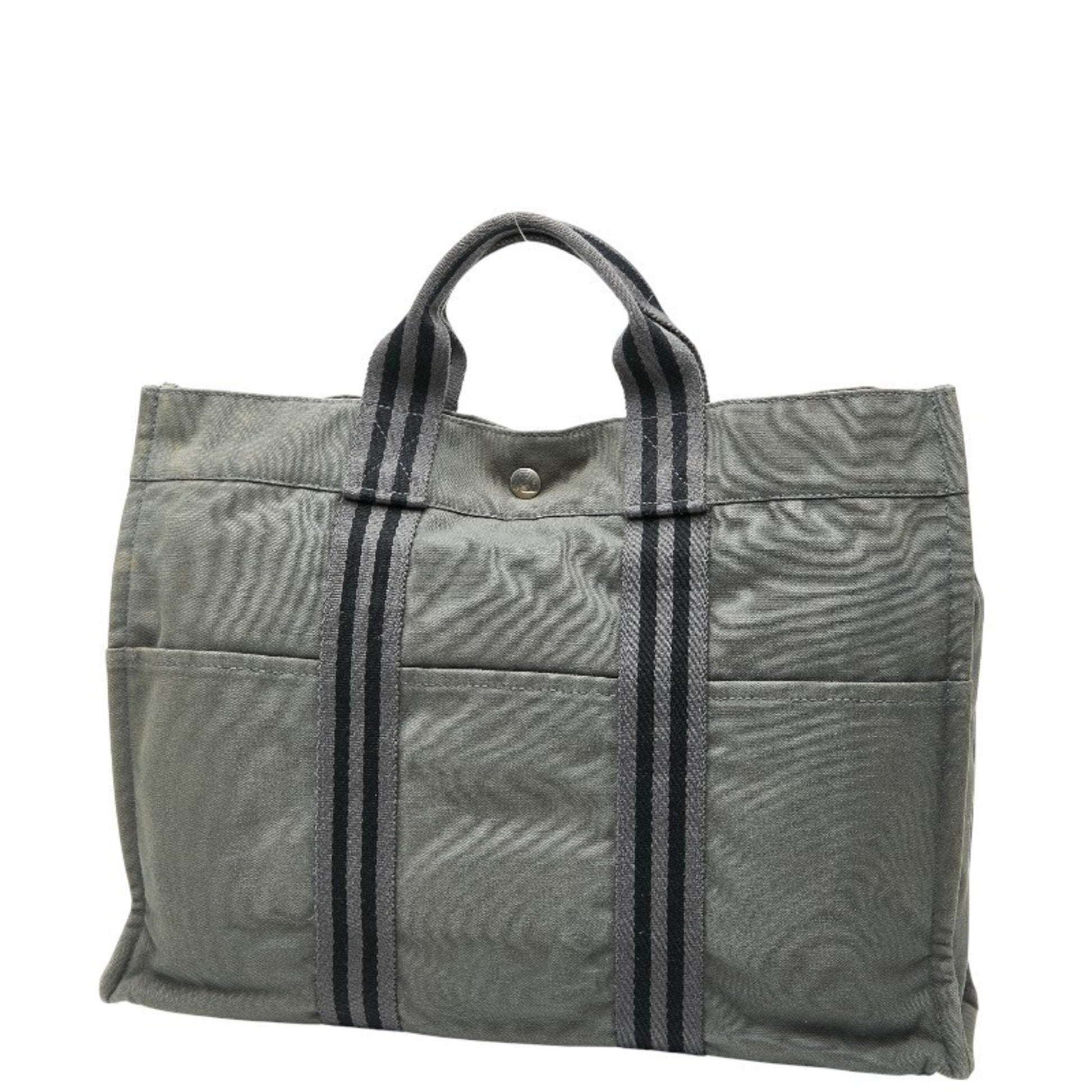 Hermes Foule Tote Mm Handbag Bag Gray Black Canvas