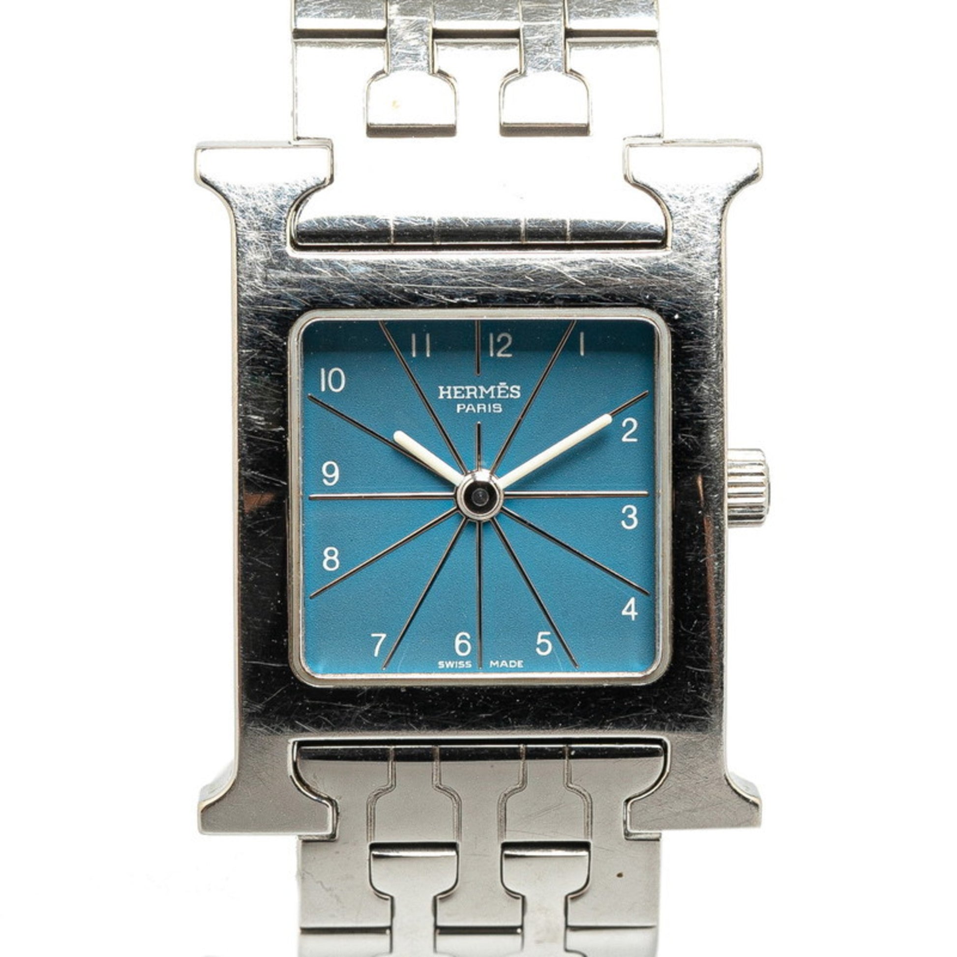 Hermes H Watch Wristwatch Hh1.210 Quartz Blue Dial Stainless Steel