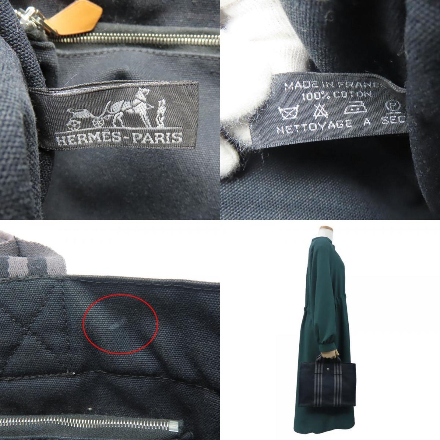 Hermes Handbag Foult Pm Canvas Black Grey