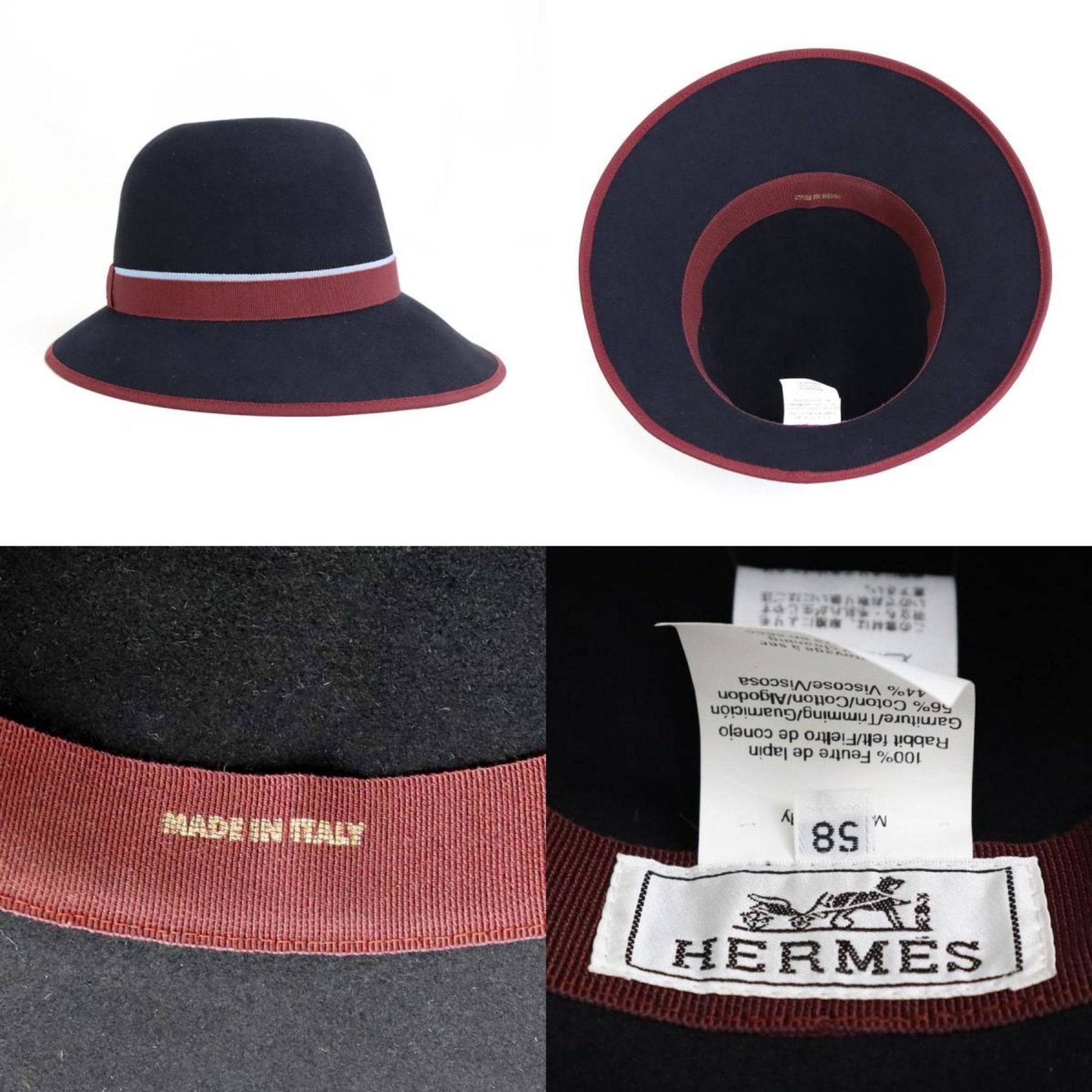 Hermes Hat Wool Black X Bordeaux Light Blue