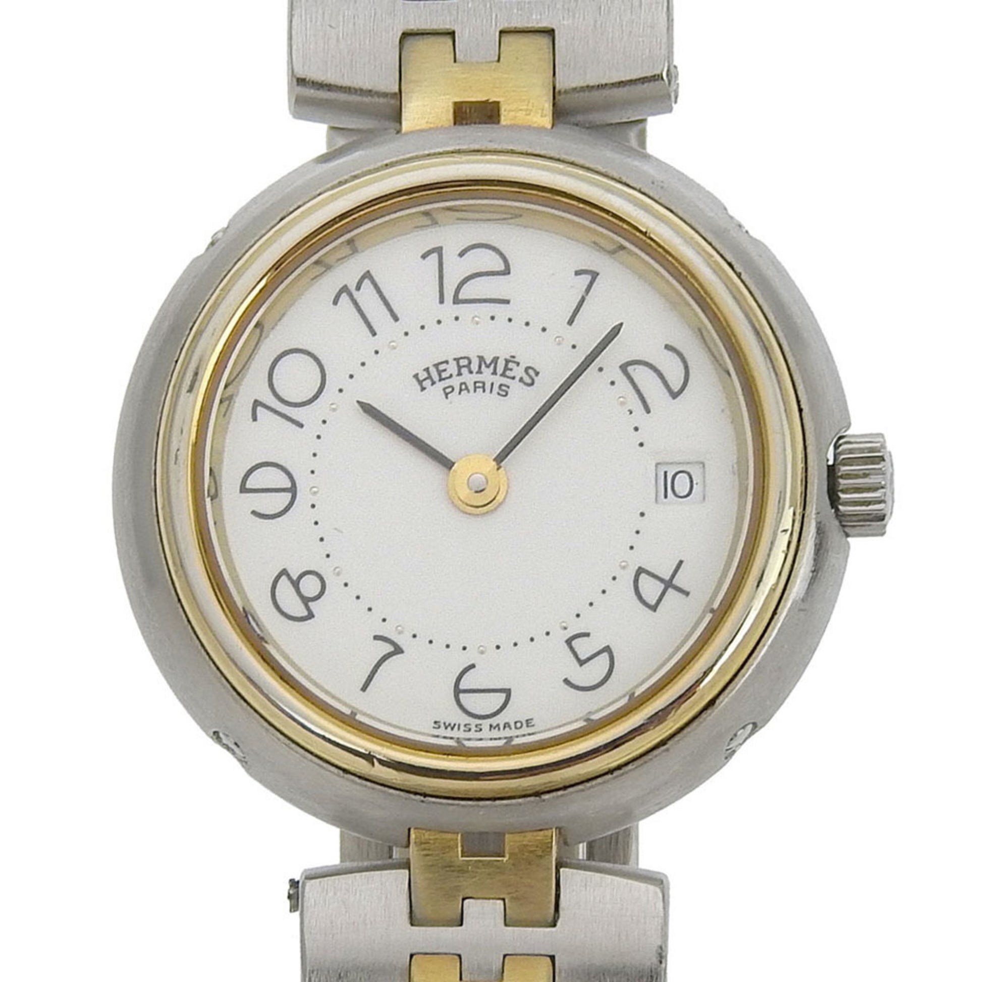 Hermes Hermes Profile Date Watch Stainless Steel X Gold Plated Quartz Analog Display White Dial