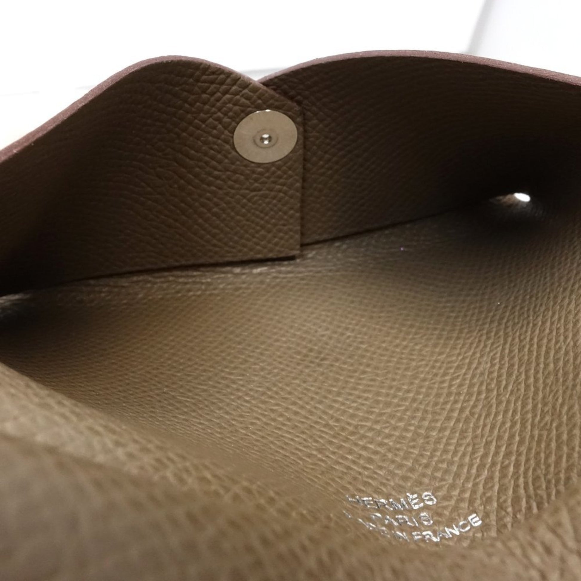 Hermes Hermes Wallet/Coin Case B956016 Calvi Duo B Stamped Epsom Leather Etoupe 181206