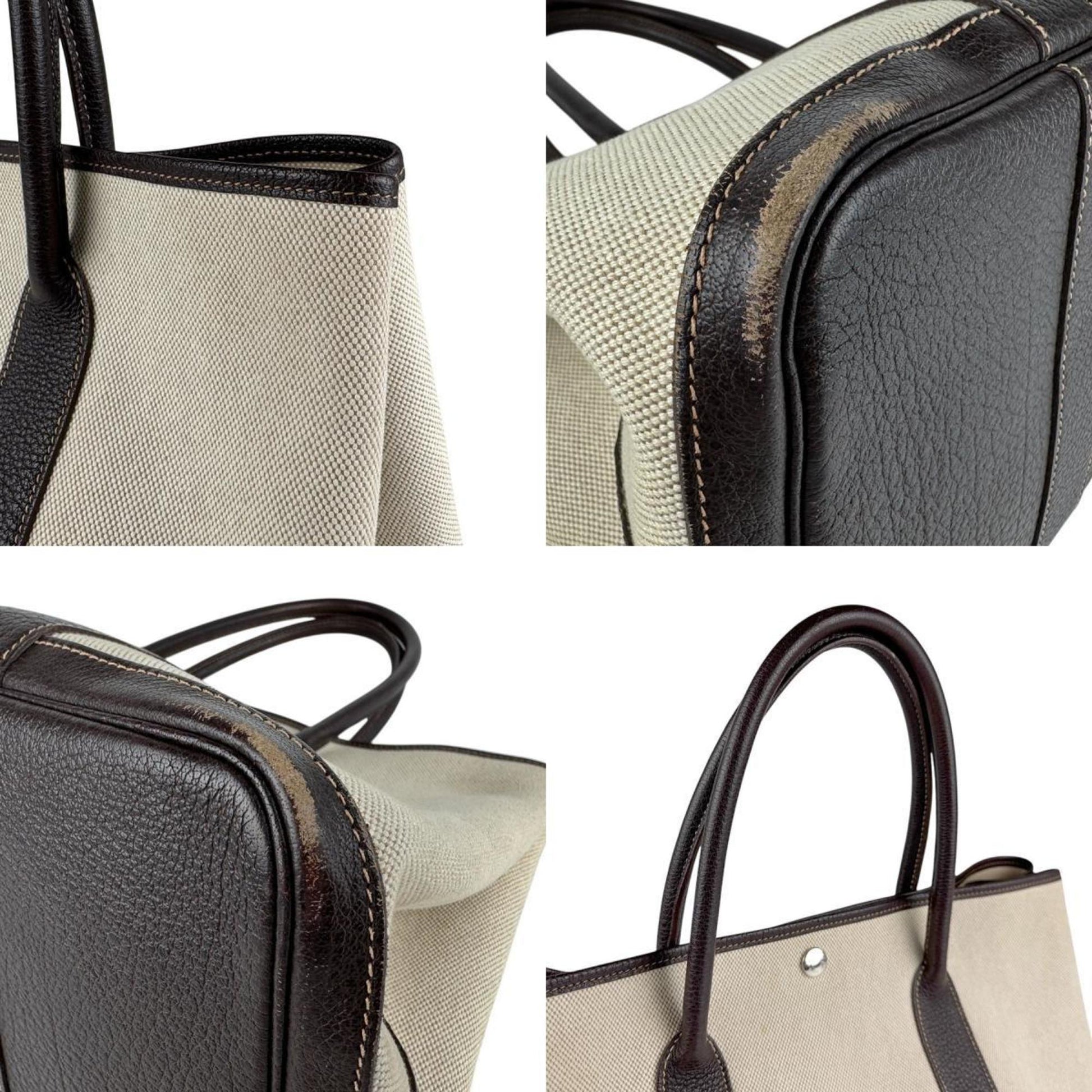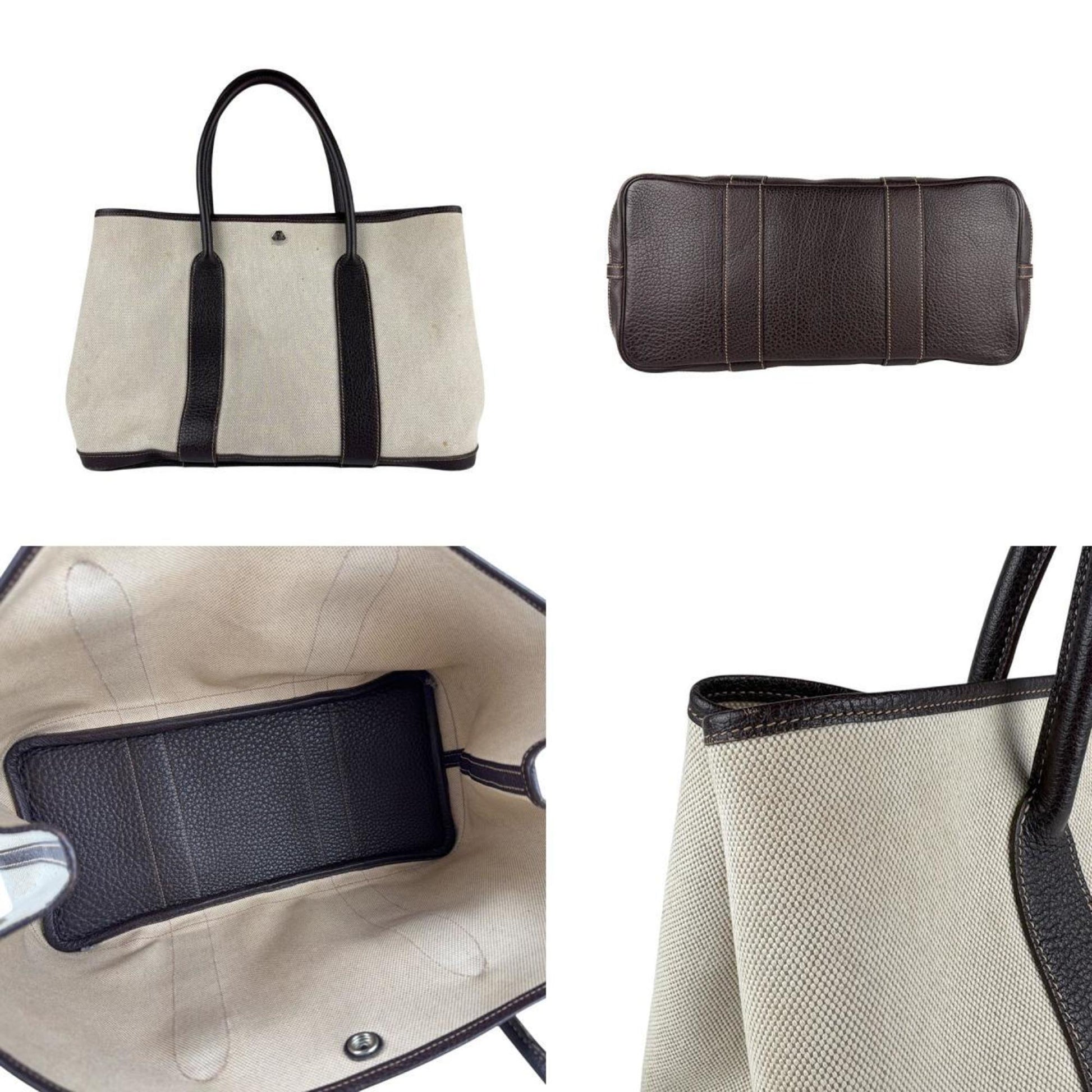 Hermes Herms Garden Pm 36 Toile H Buffle Maroon Handbag