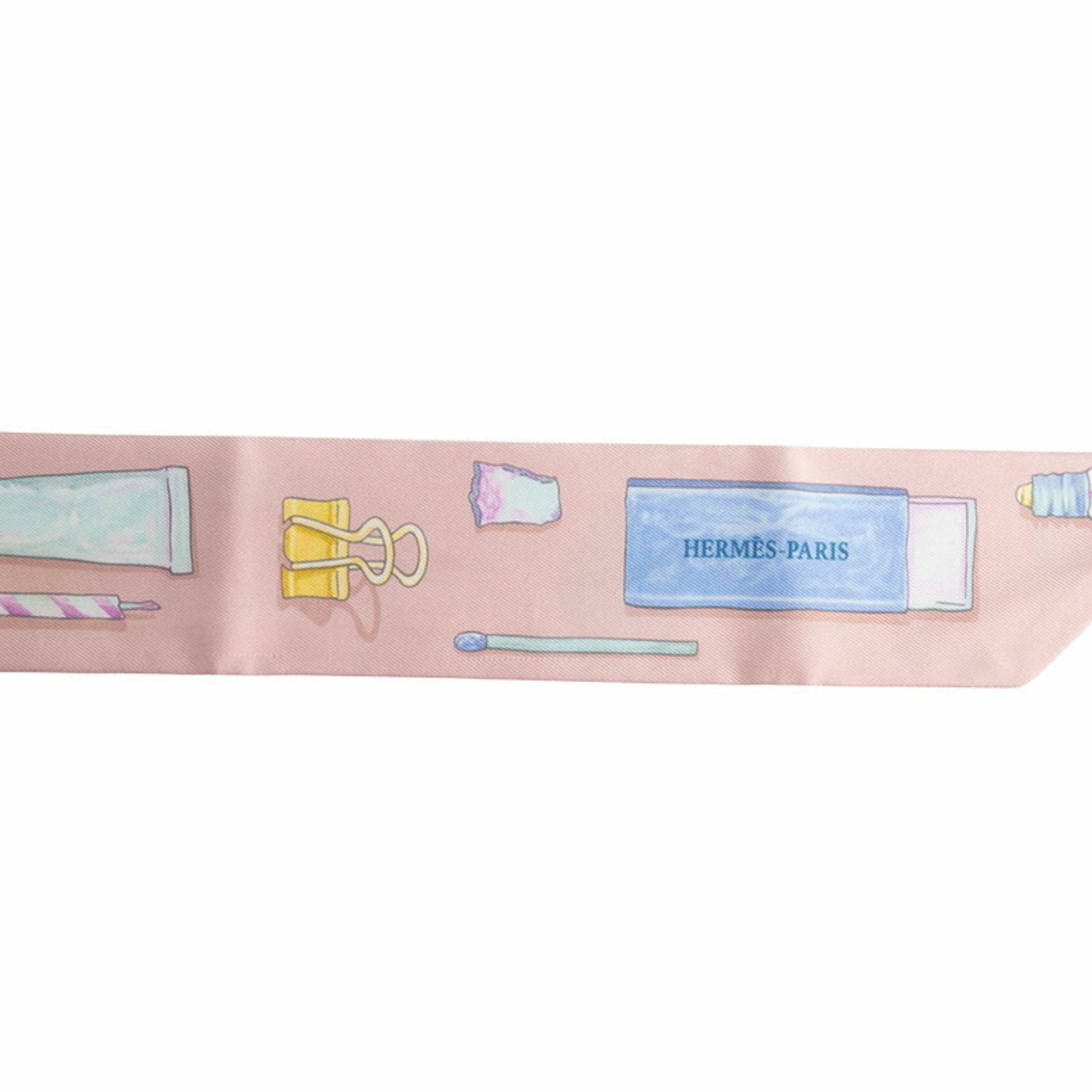 Hermes Herms Twilly In-The-Pocket Silk Scarf With Multicolored Pink Ribbon (H062340S