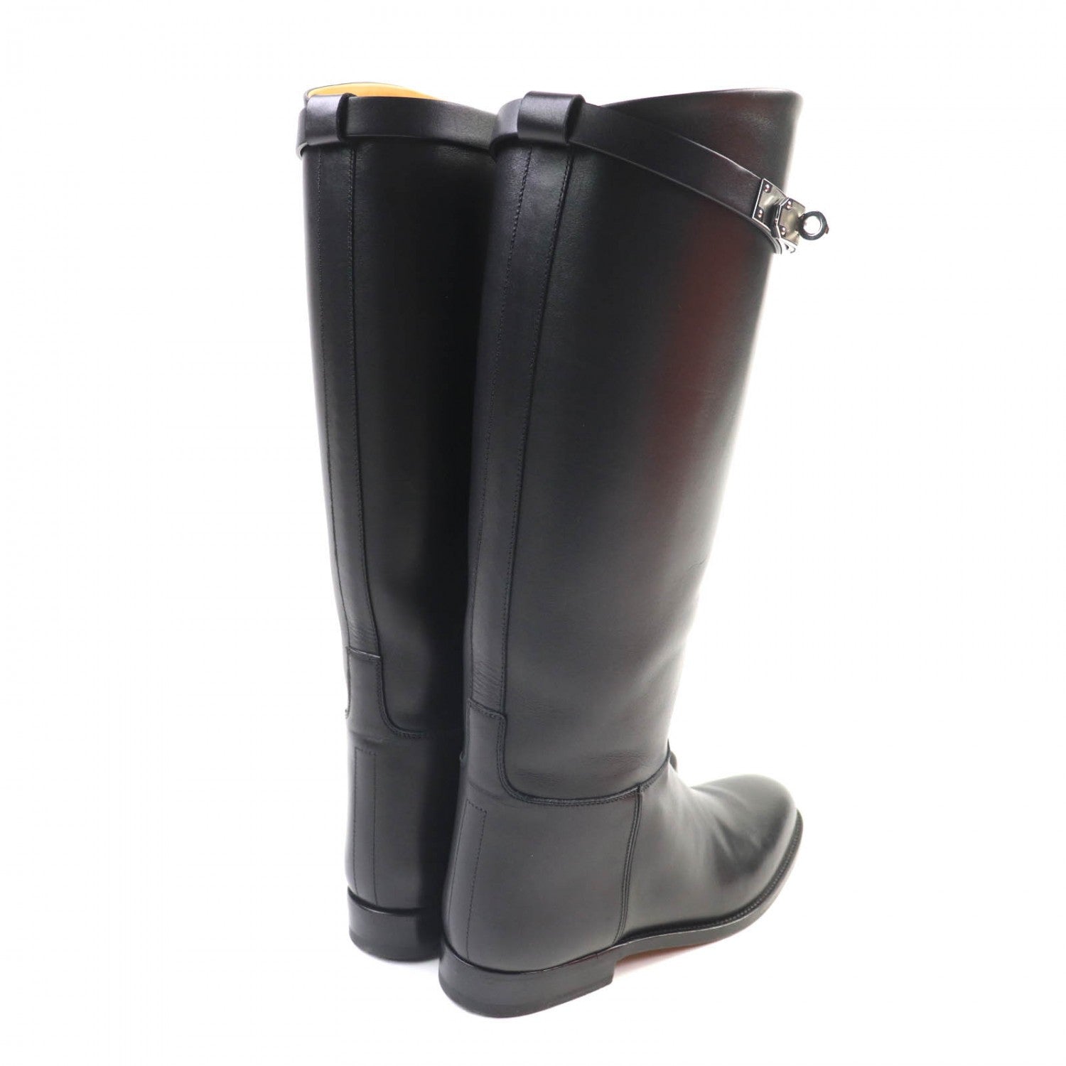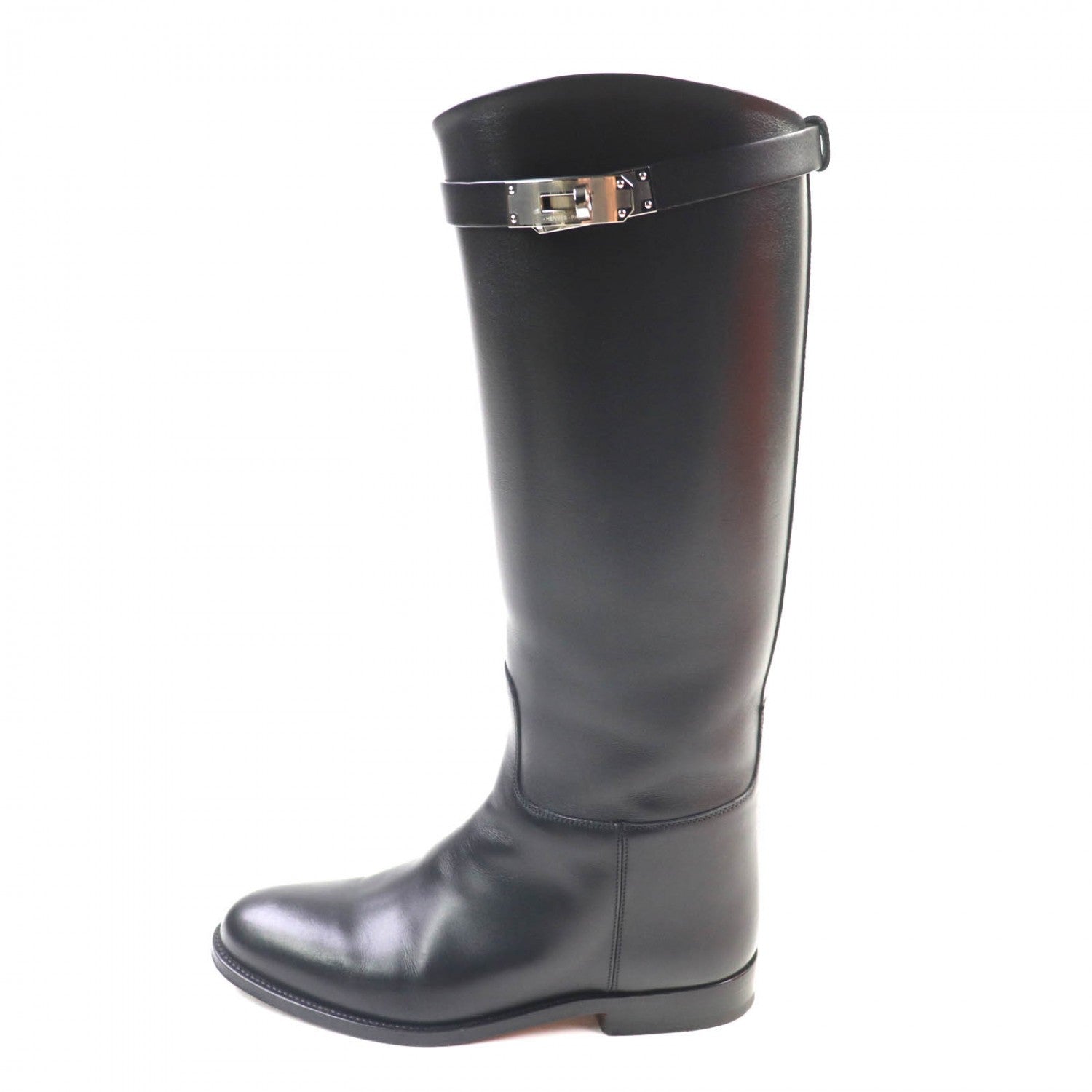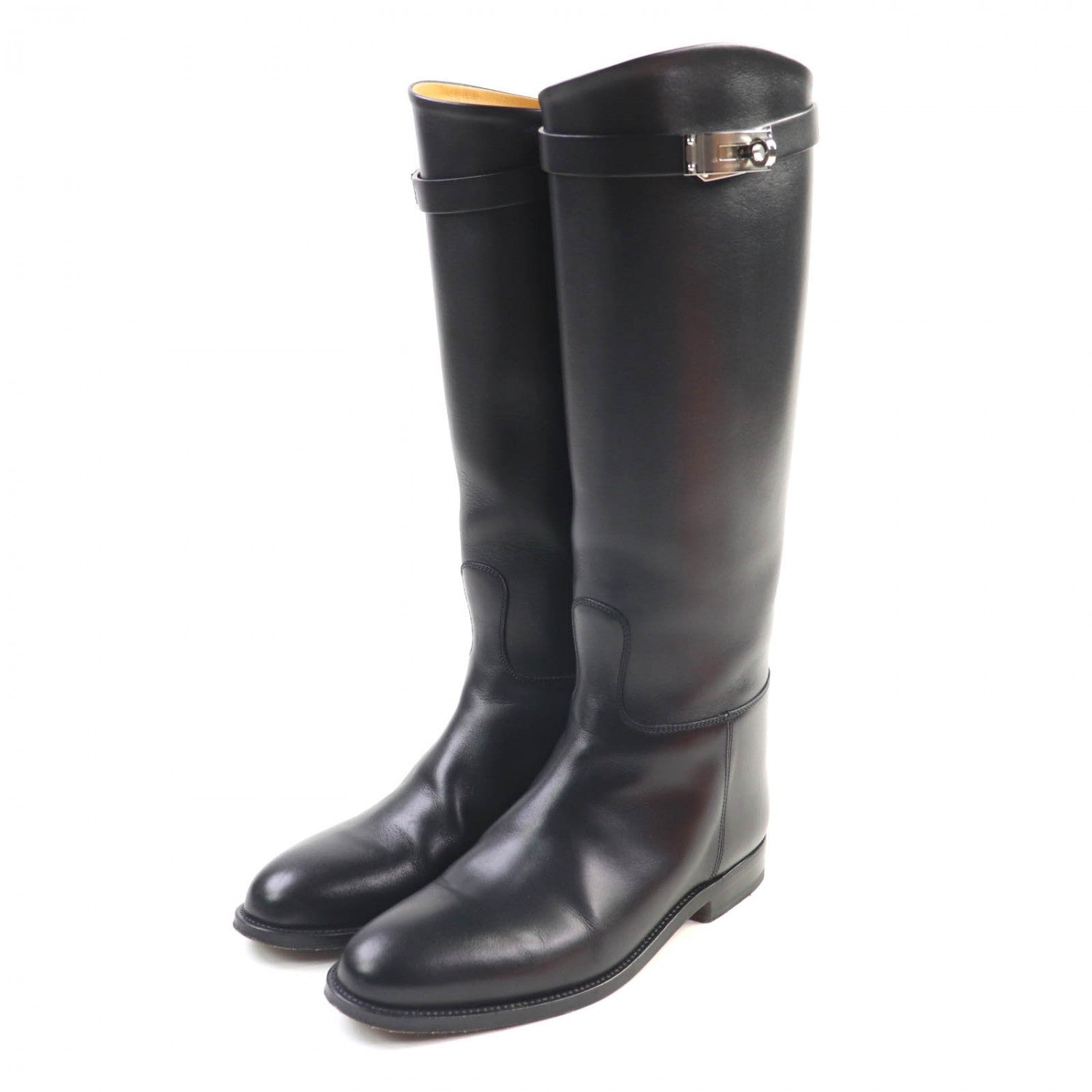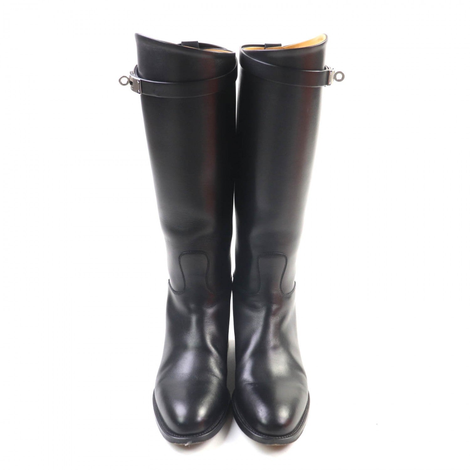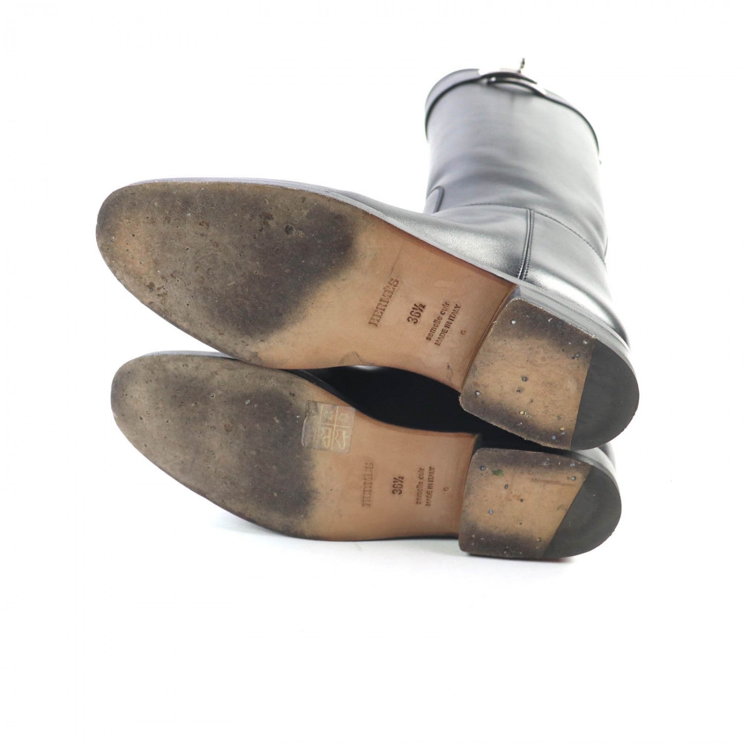 Hermes Knee-High Boots Leather Black Jumping 36.5