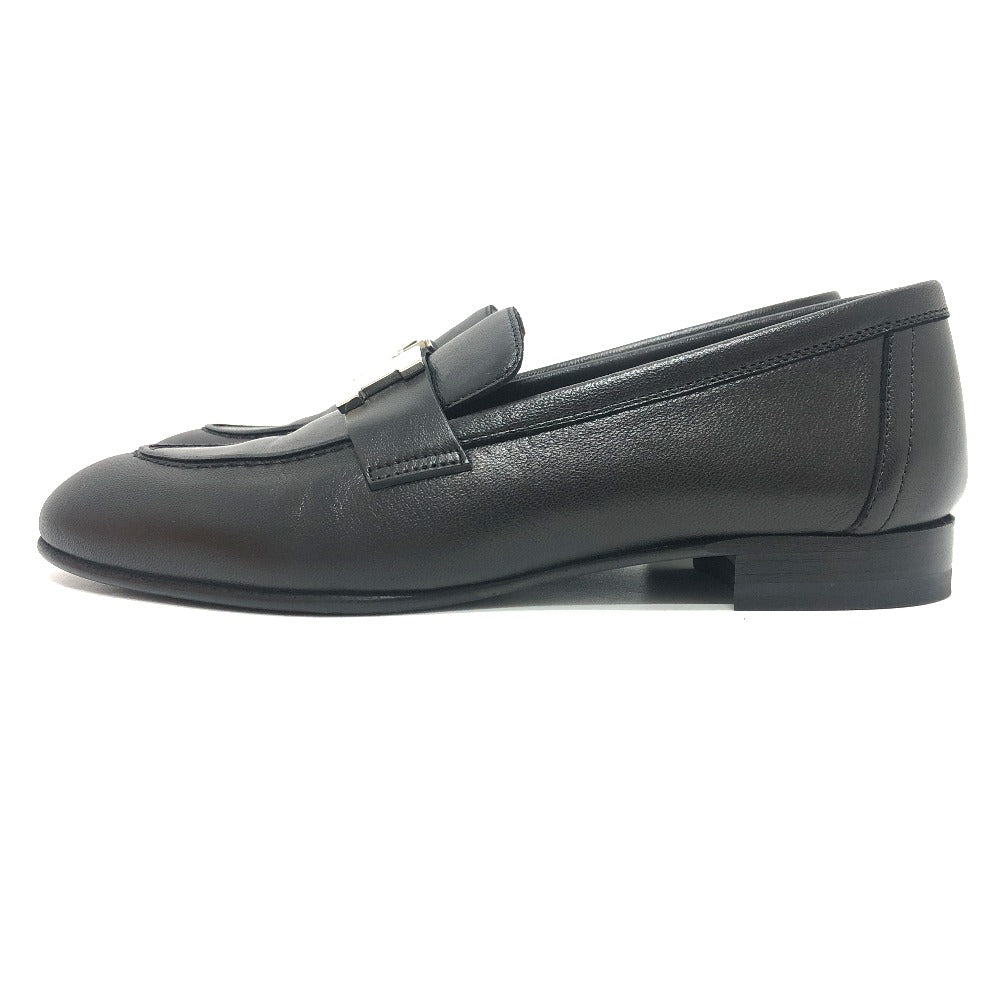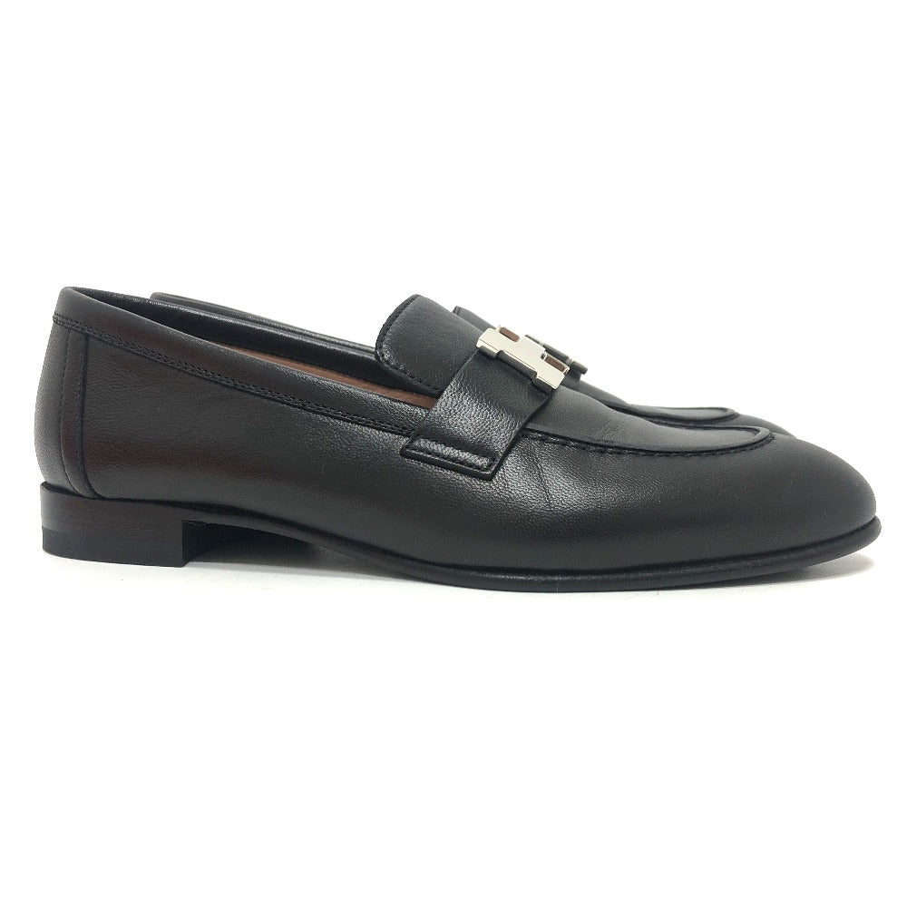 Hermes Leather Shoes Af201199Z Leather Black Moccasin H Logo Constance 34