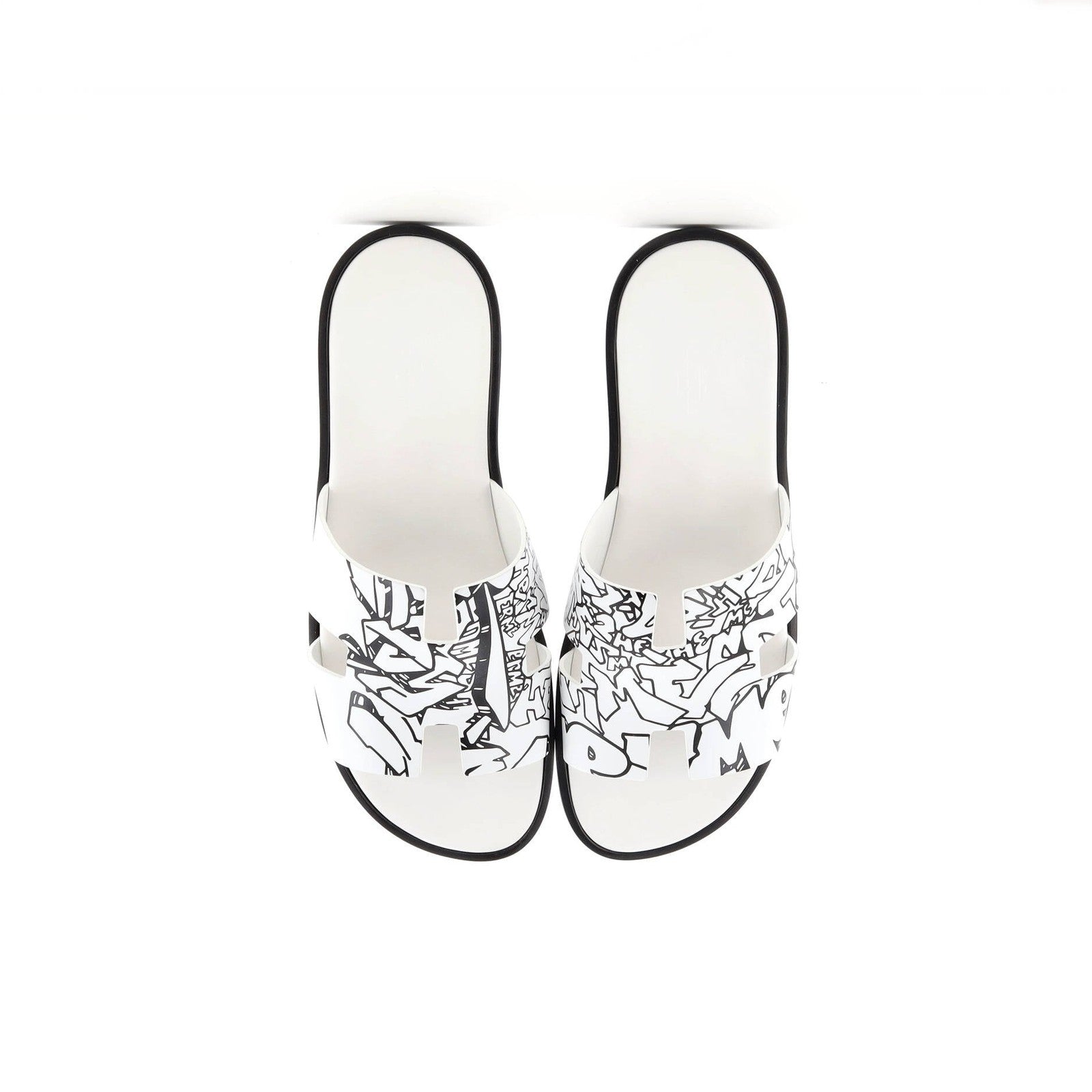 Hermes Men'S Izmir Slide Sandals Printed Leather