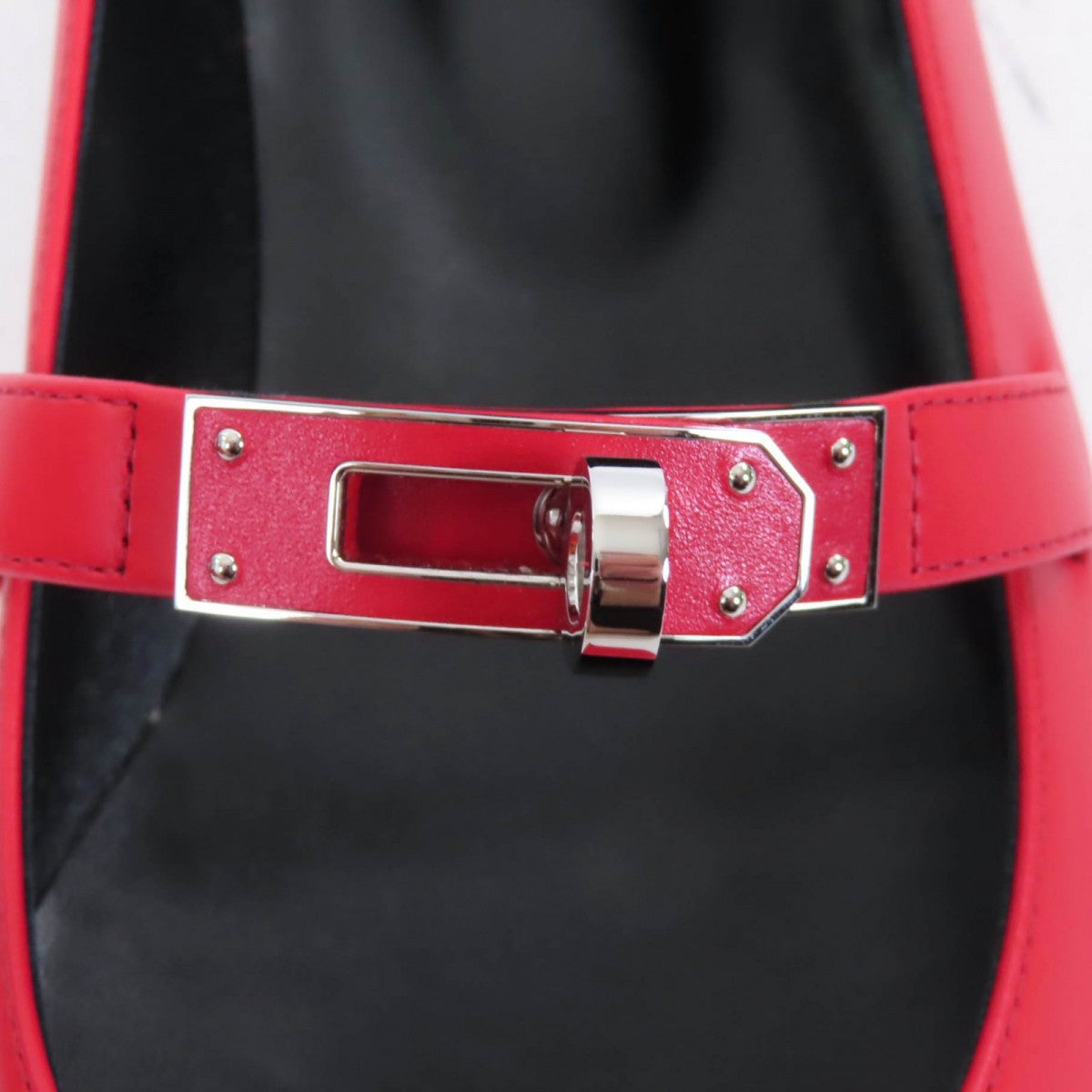 Hermes Pumps 251001Z Leather Rouge Viff Kelly Ballet Flats 37
