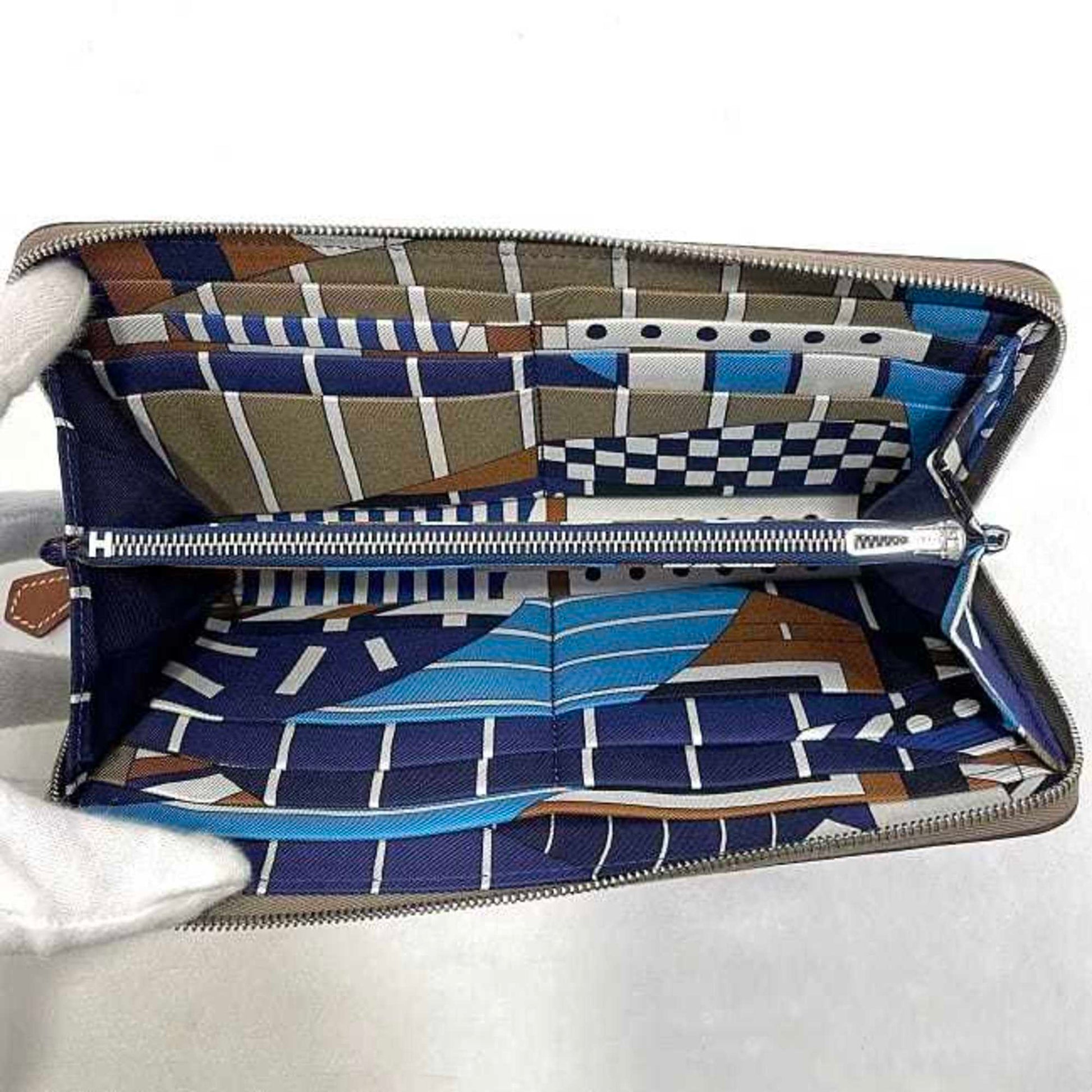 Hermes Round Long Wallet Azap Silkin F-22990 Beige Etoupe Leather Epsom Silk Z Stamp Hermes