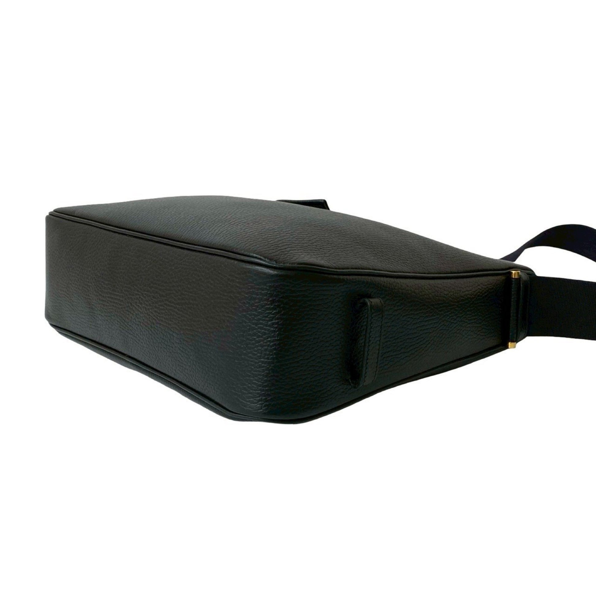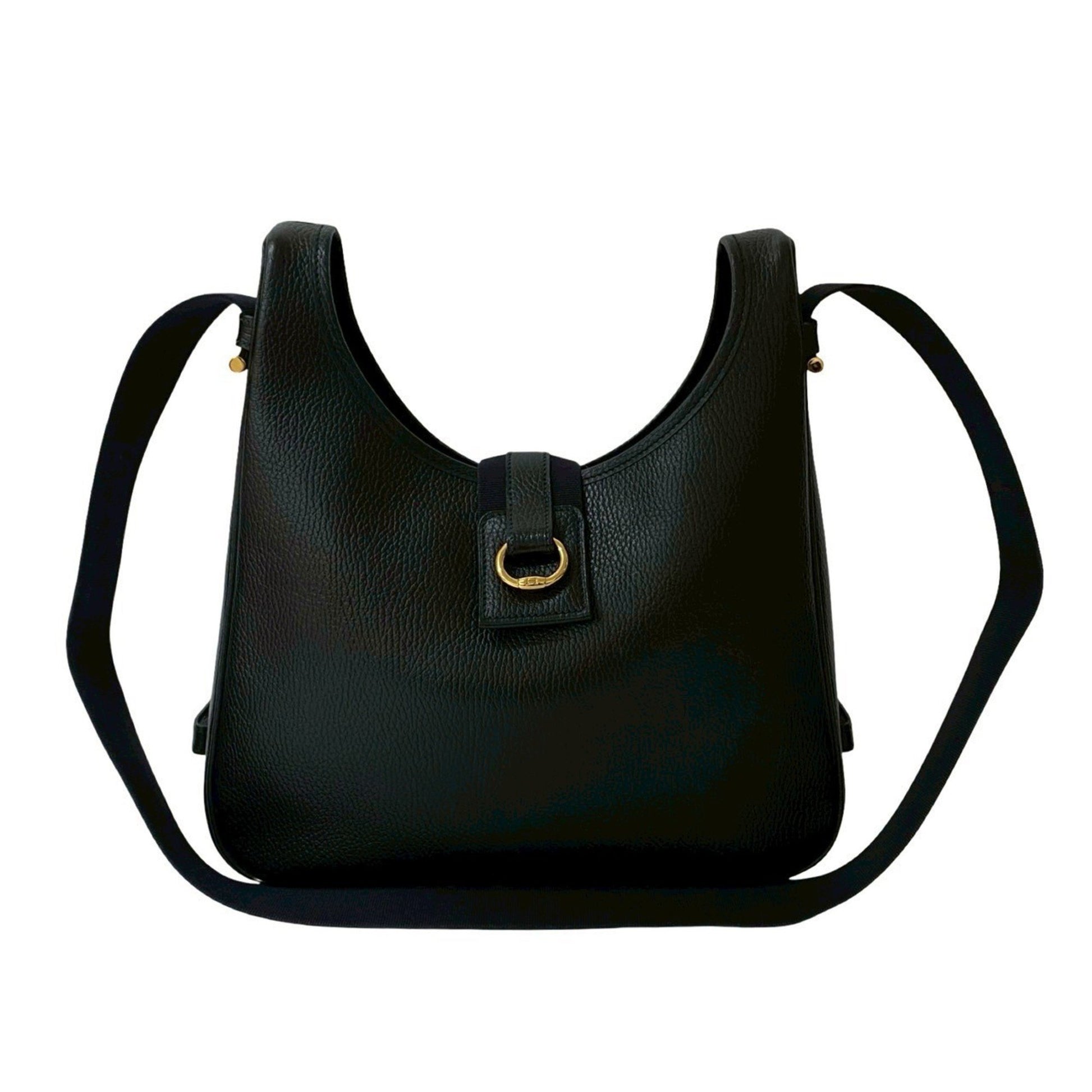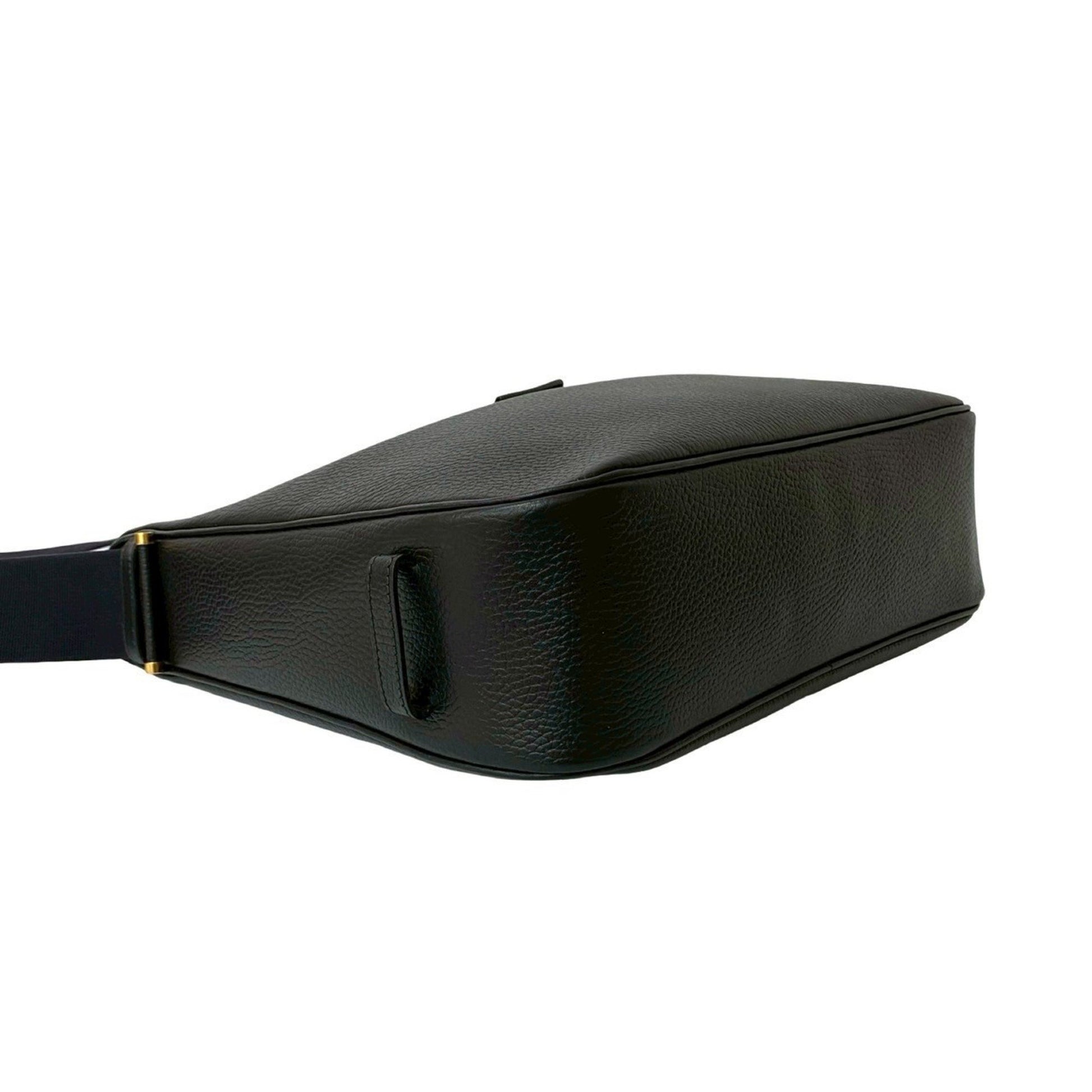 Hermes Saco Leather Canvas Shoulder Bag