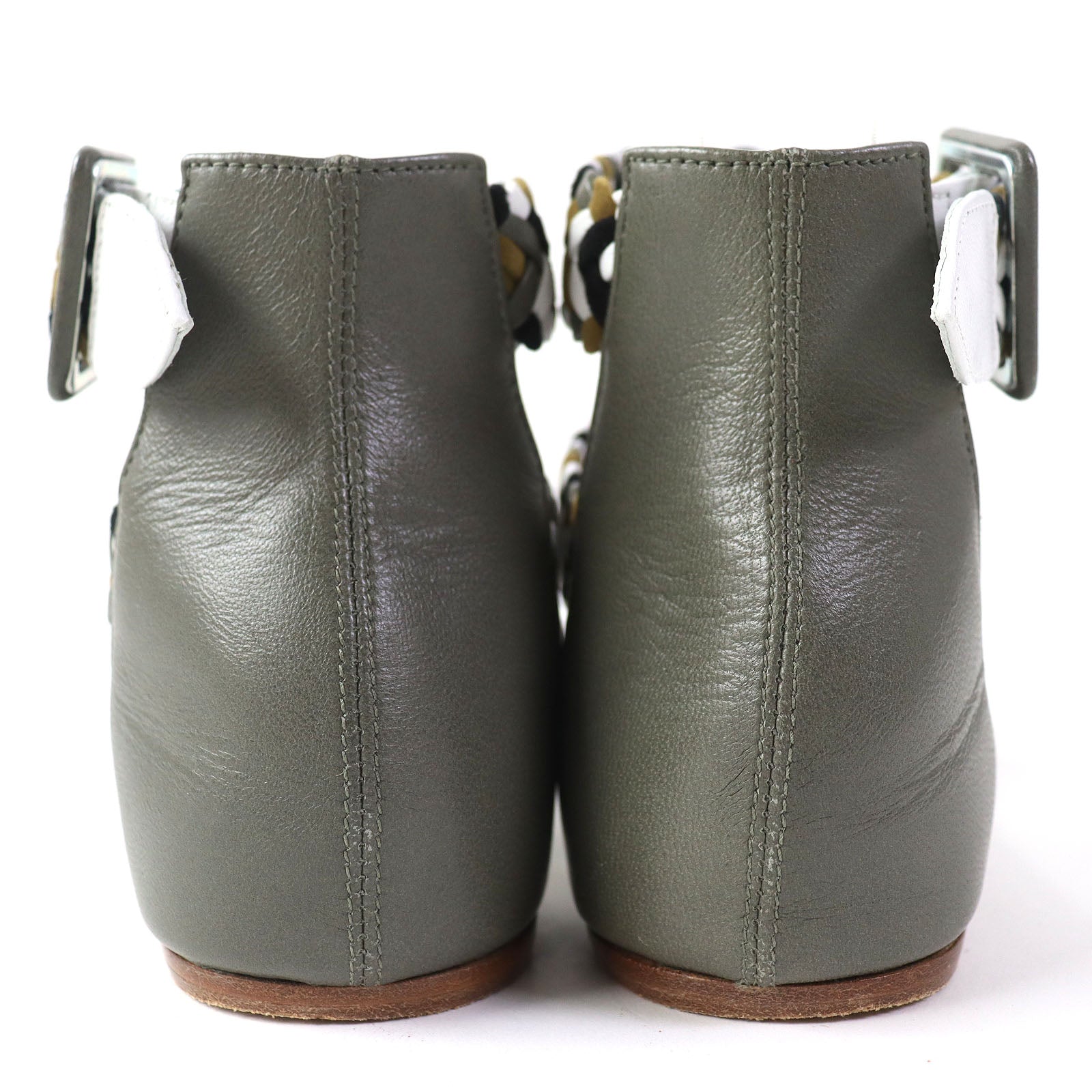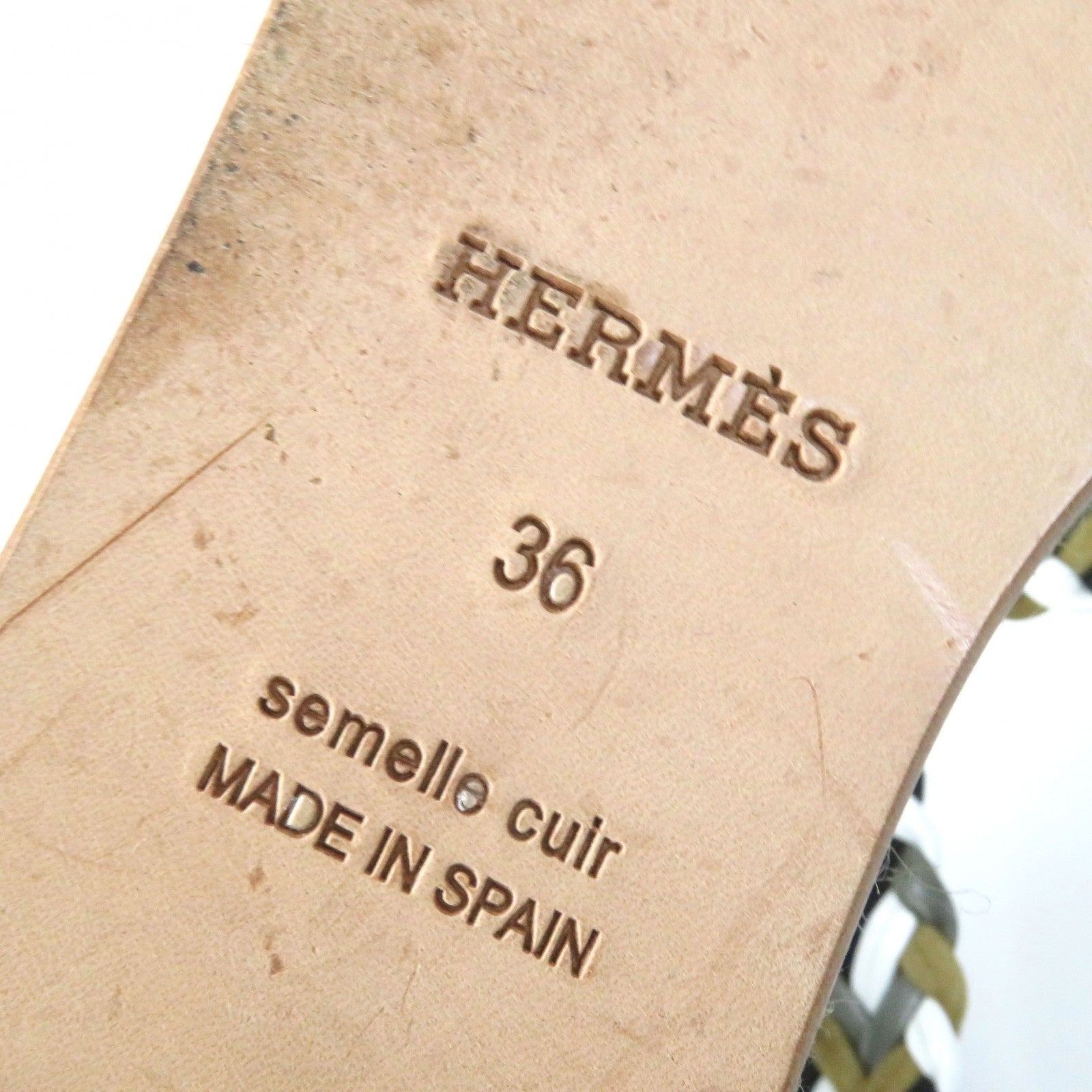 Hermes Sandals Leather Khaki Flat Shoes Ankle With Strap Mesh Design Women 36
