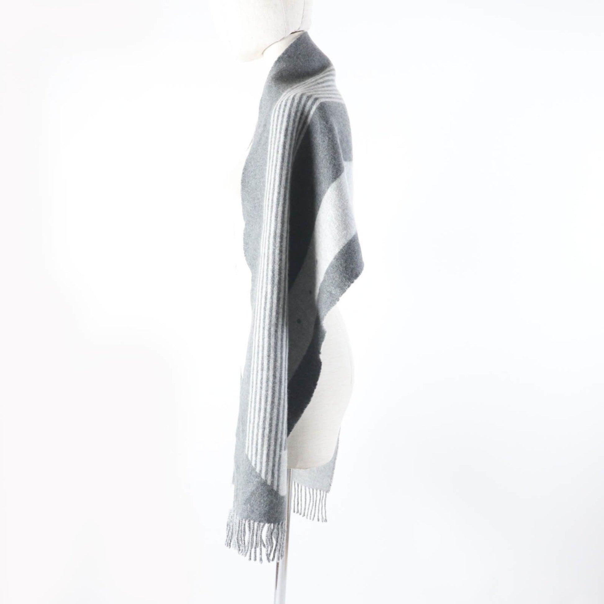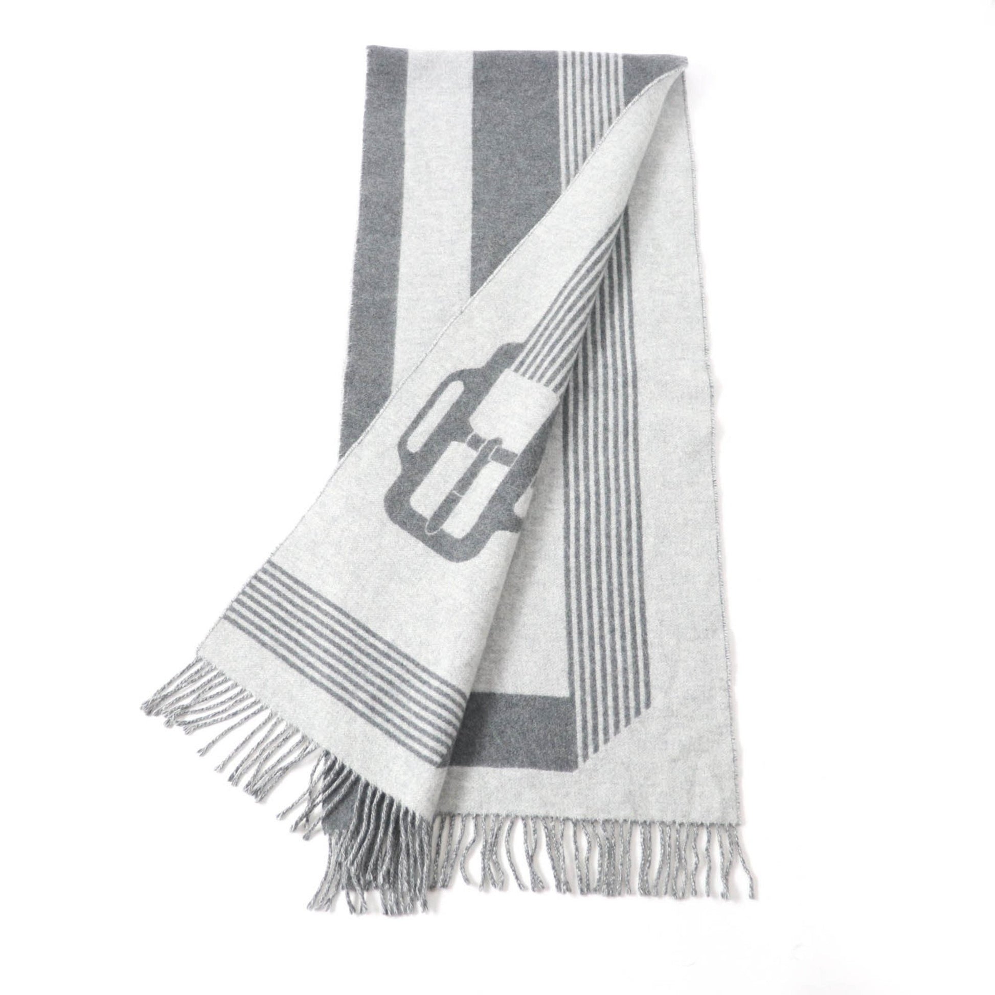 Hermes Sangle Boucle 100% Cashmere Antogracito Gris Clair Fringed Scarf