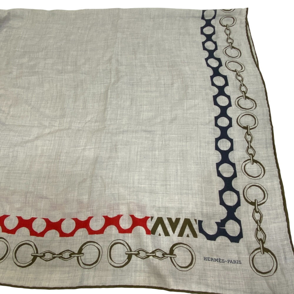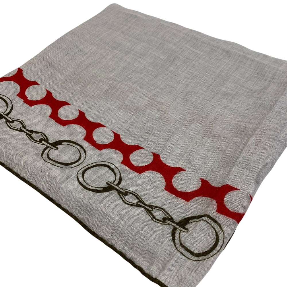 Hermes Scarf Cashmere Pashmina , Silk Gray Liste En Chaines Carre140 Women