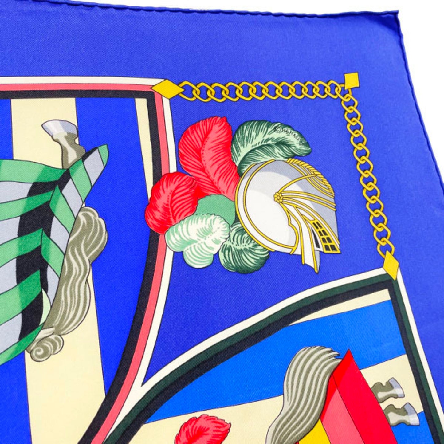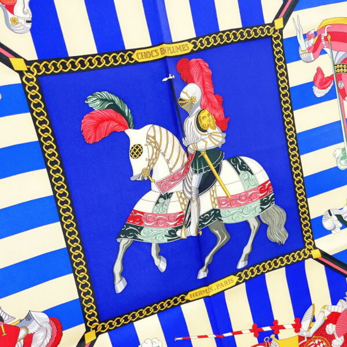 Hermes Scarf Muffler Carre 90 Silk Blue Multicolor Helmes Chocs En Plumes Feather Clash Knight