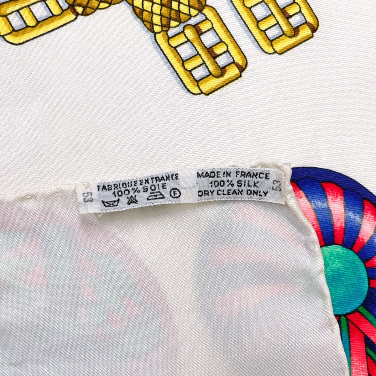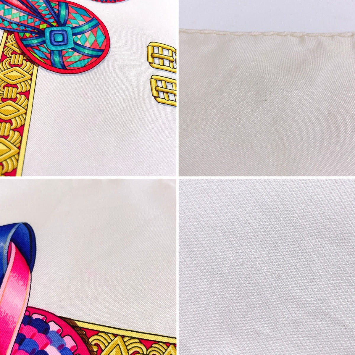 Hermes Scarf Silk, 100% Silk White Les Rubans Du Cheval Horse Ribbon Carre 90