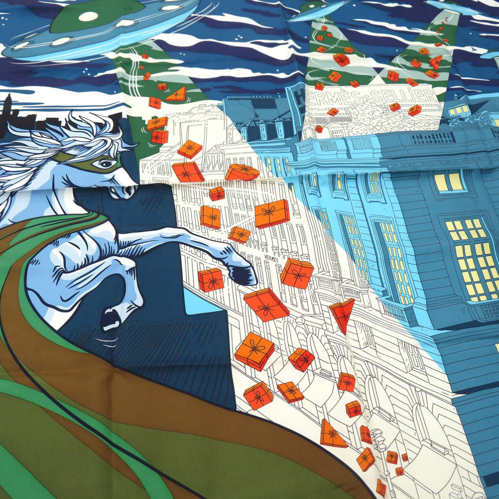 Hermes Scarf Silk Multicolor Carre90 Space Shopping Au Faubourg Unisex(Unisex)