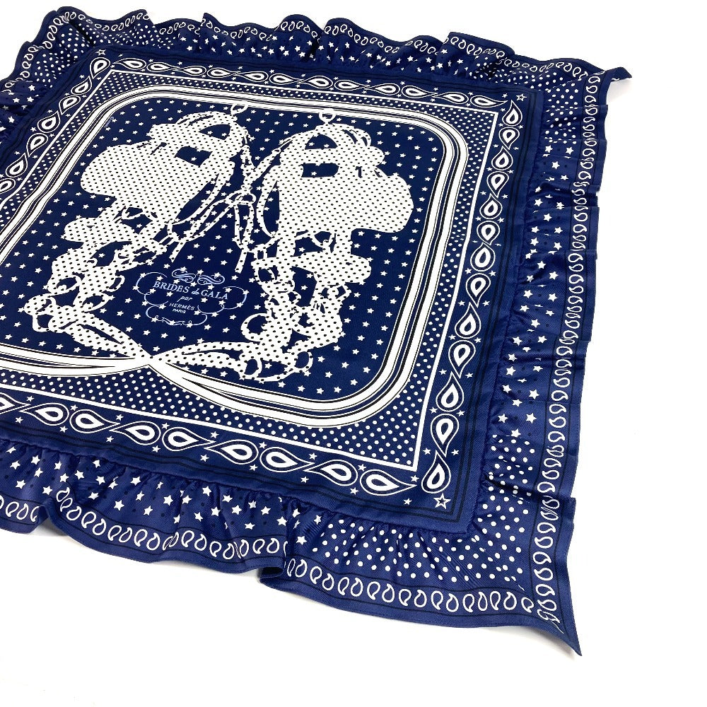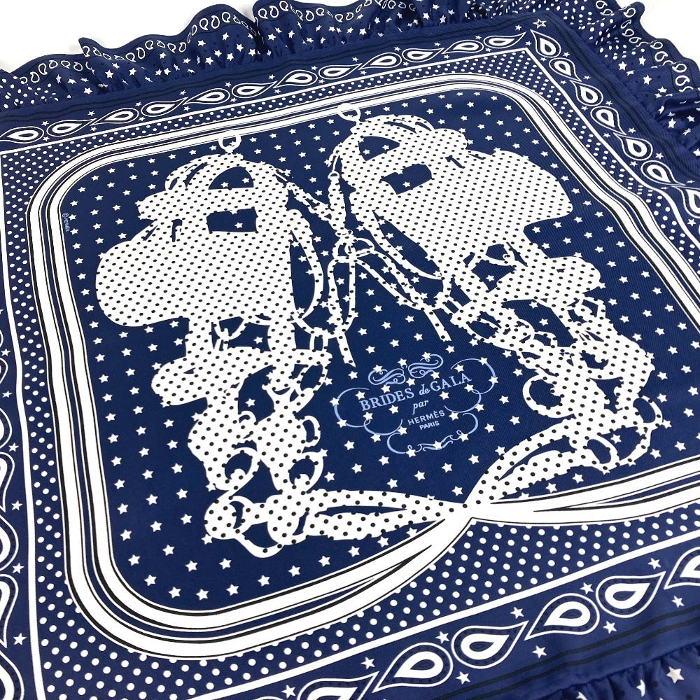 Hermes Scarf Silk Navy Carre70 Frill Brides De Gala A Pois