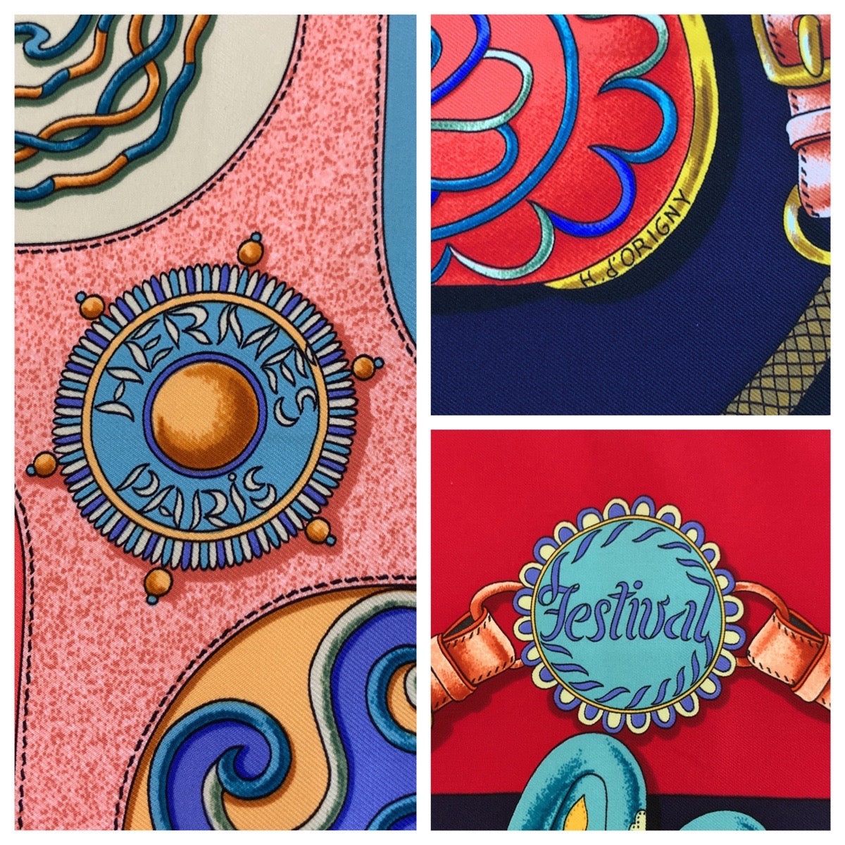 Hermes Scarf Silk Red Multicolor Scarf Large Scarf Festival Carre90 Women