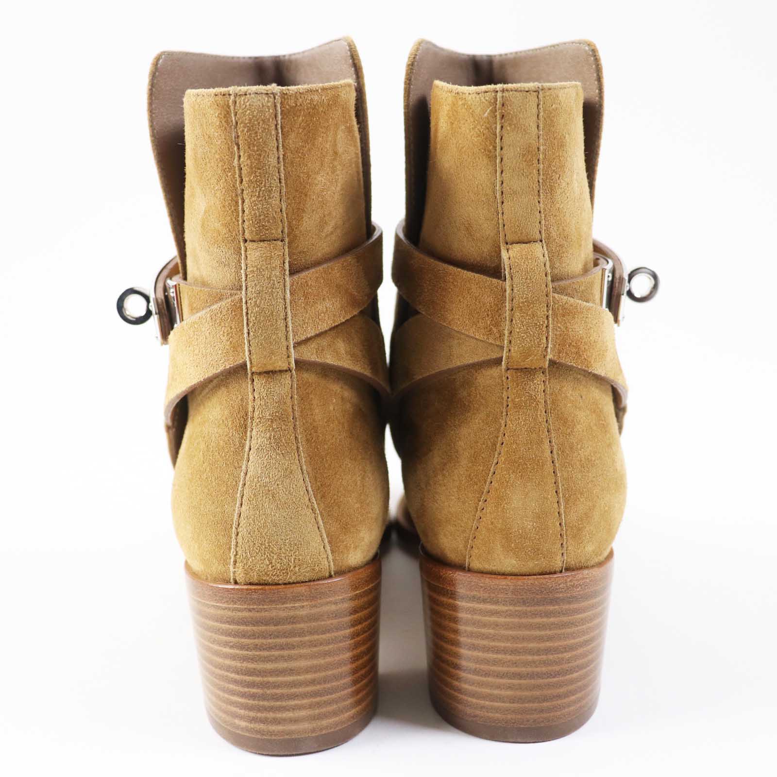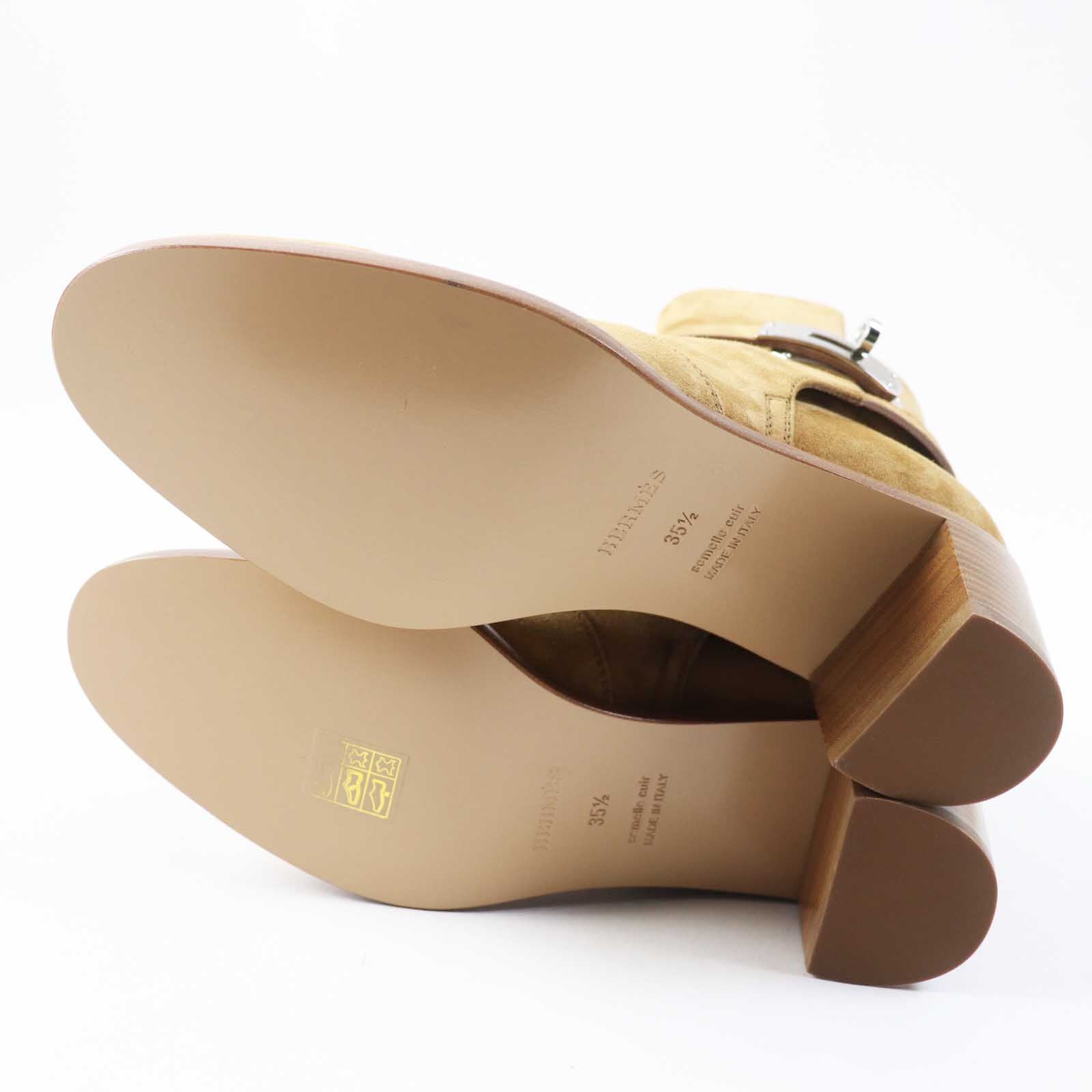 Hermes Short Boots Veau Velour (Suede Leather) Brown Beige Frenchie 50 Women 35 1/2